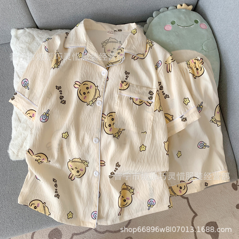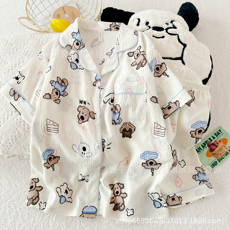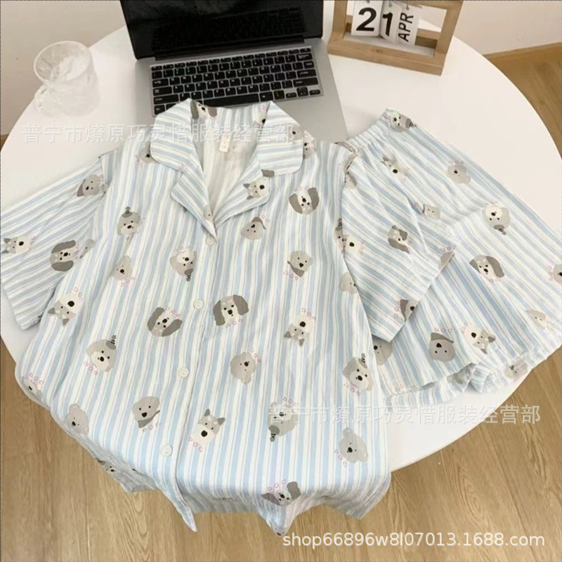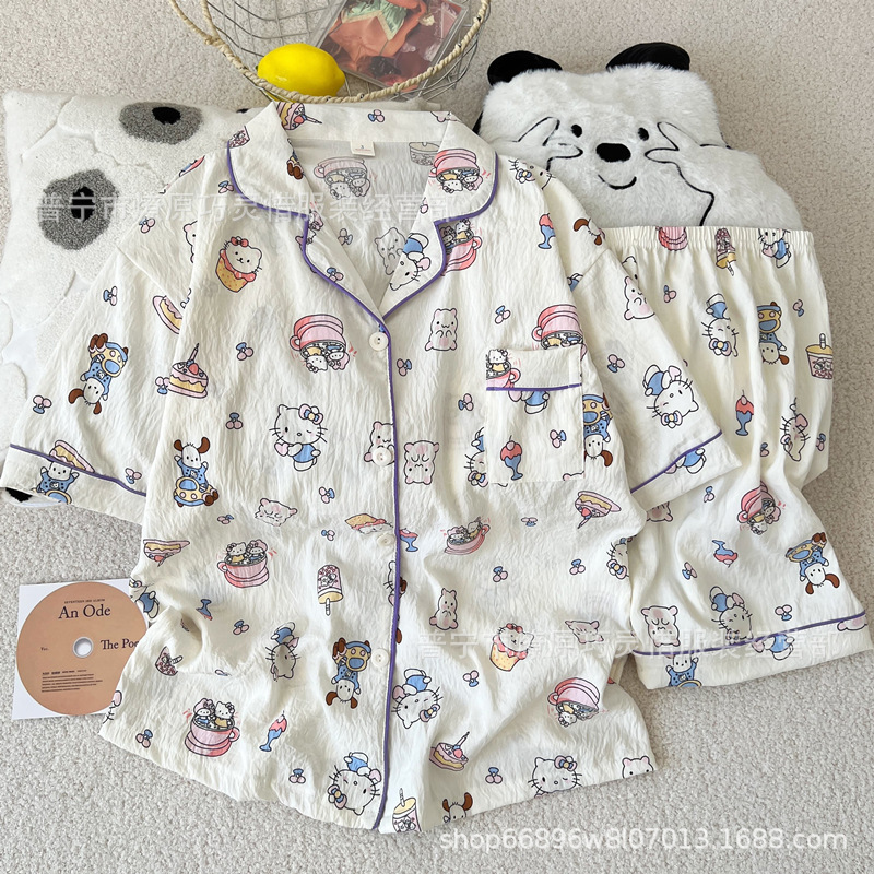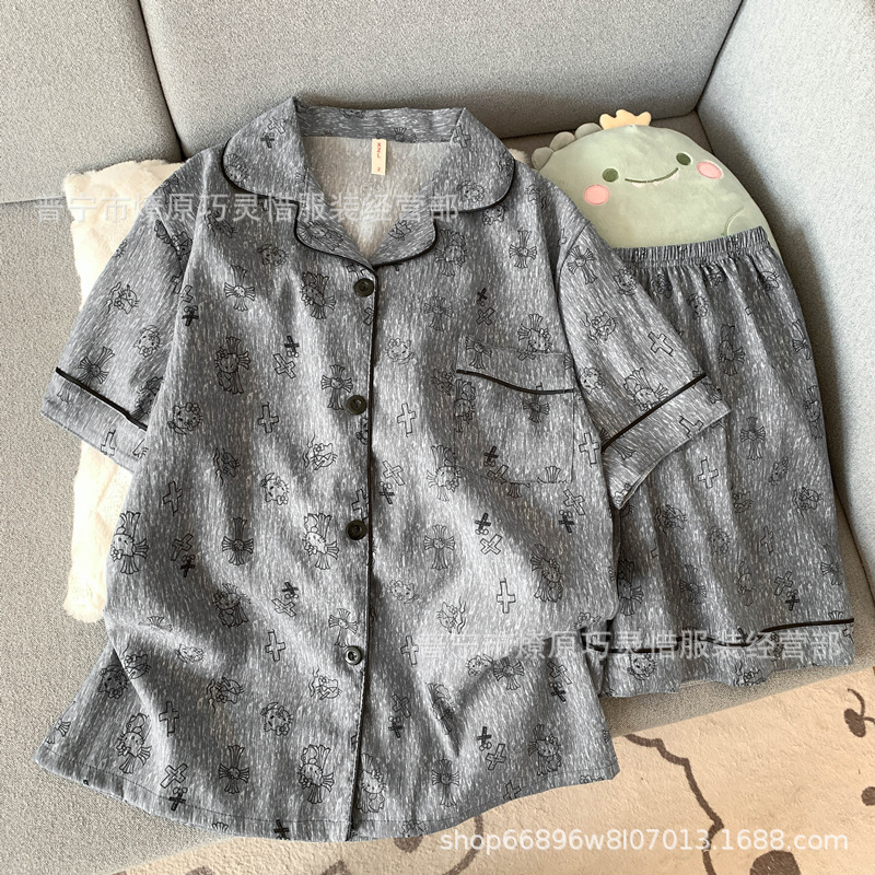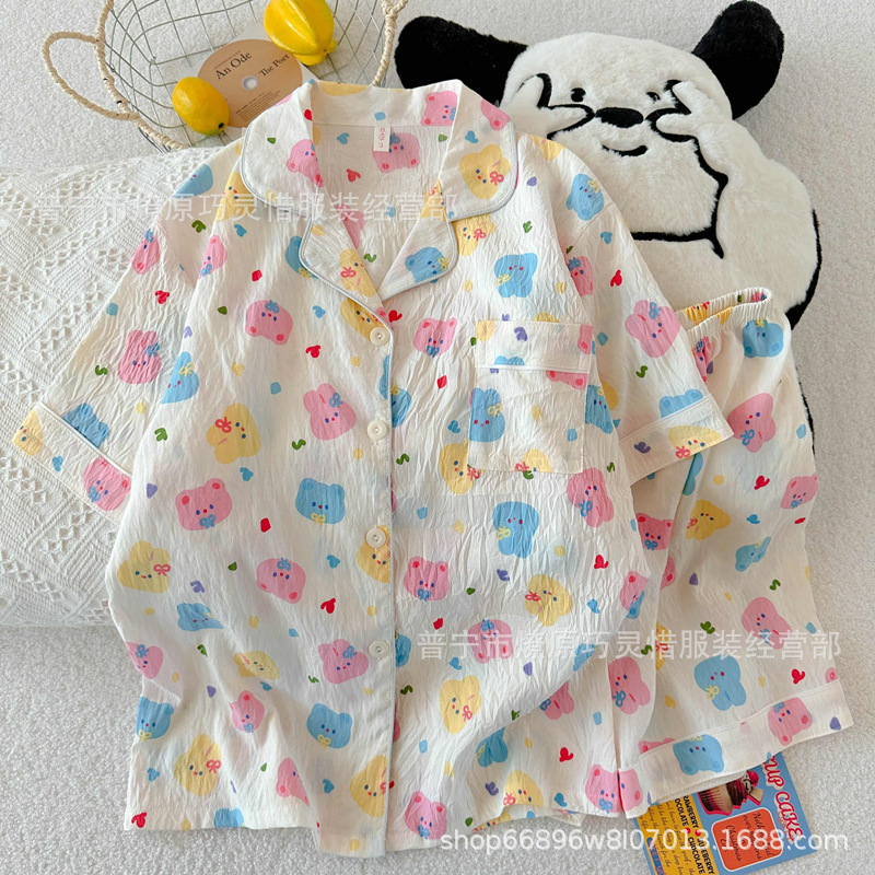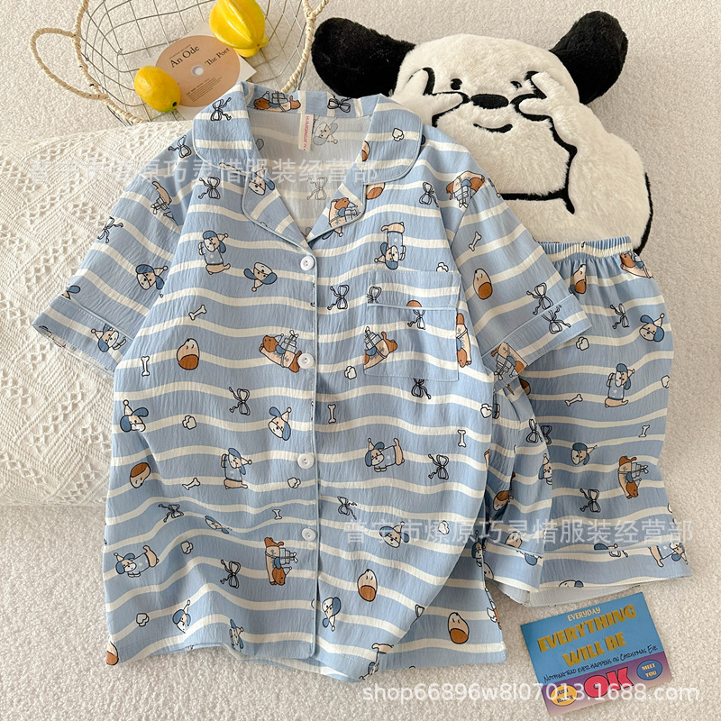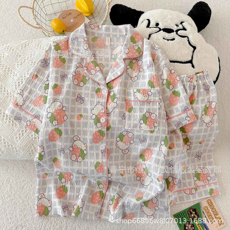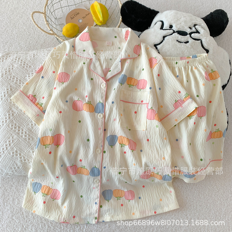 2025 여름 새로운 구름면 카디건 옷깃 달콤한 소녀 잠옷 짧은 소매 반바지 여성 홈 의류 세트