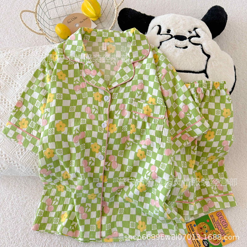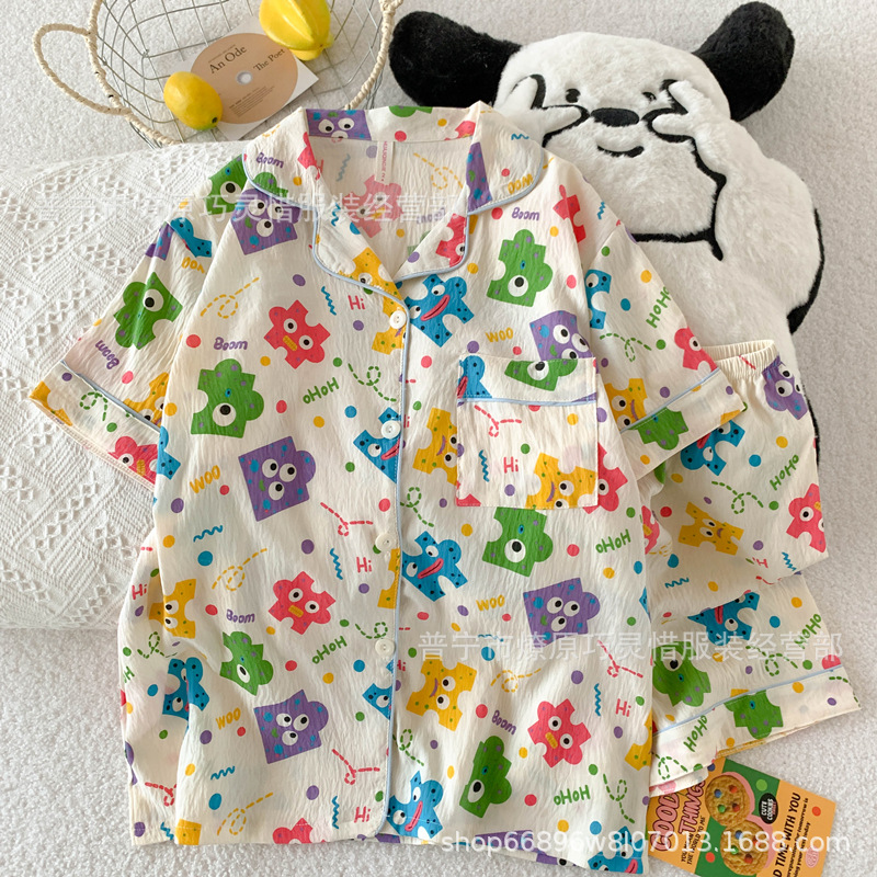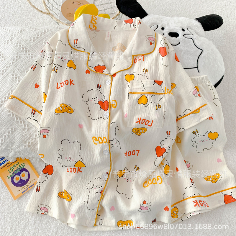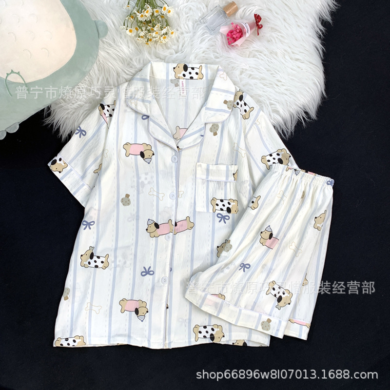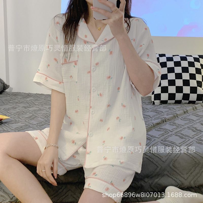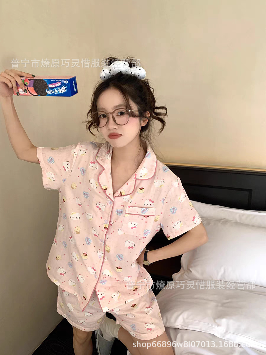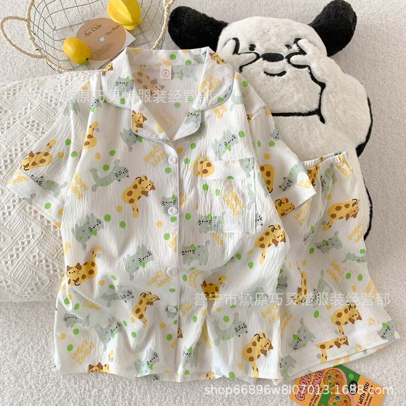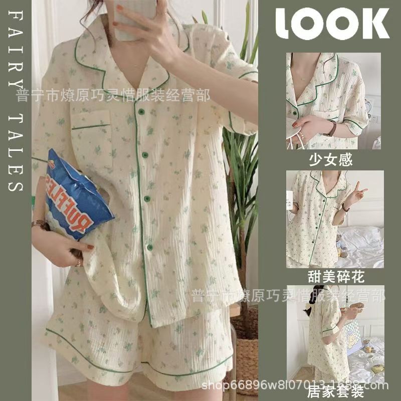 2025 여름 새로운 구름면 카디건 옷깃 달콤한 소녀 잠옷 짧은 소매 반바지 여성 홈 의류 세트