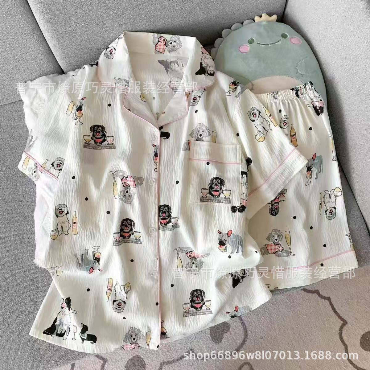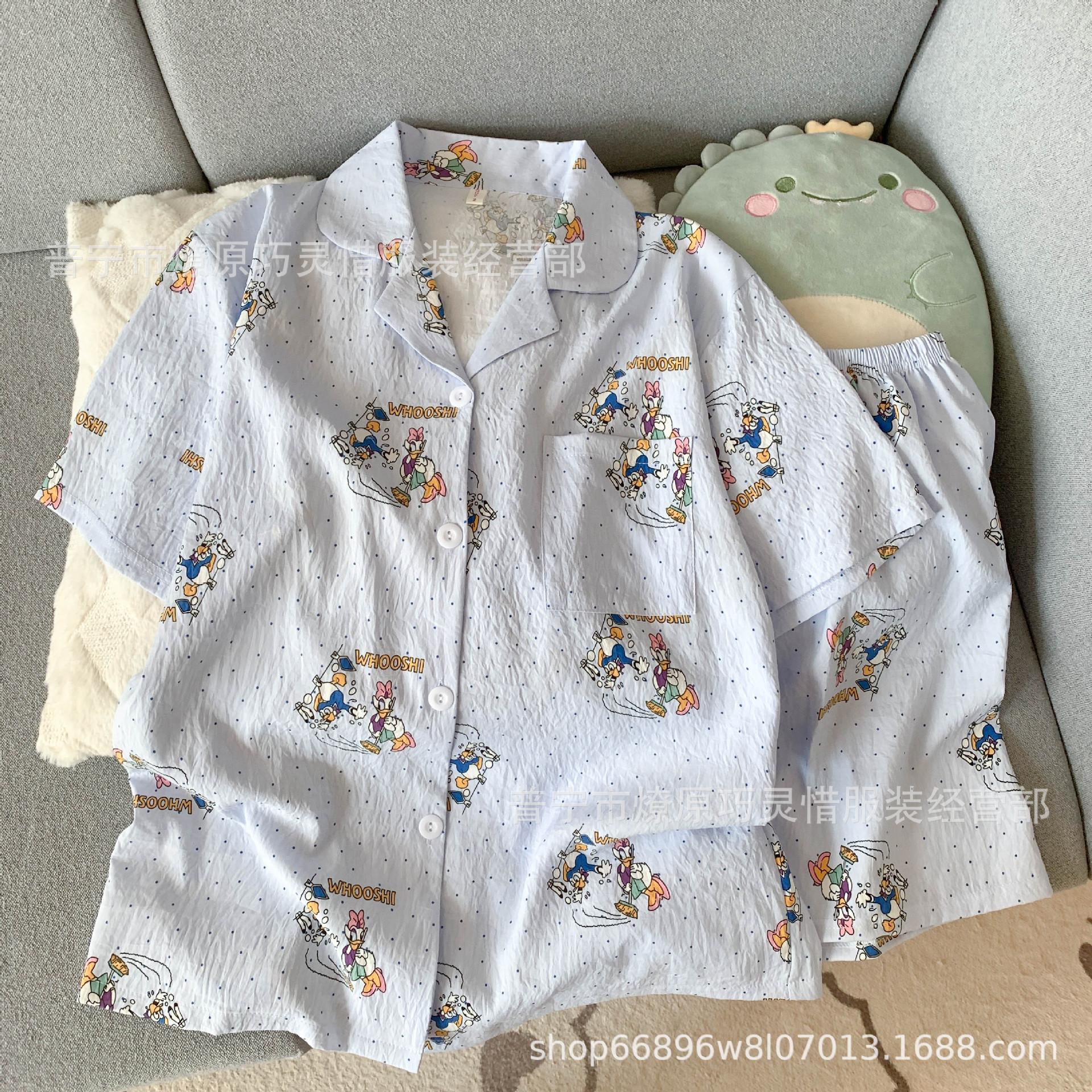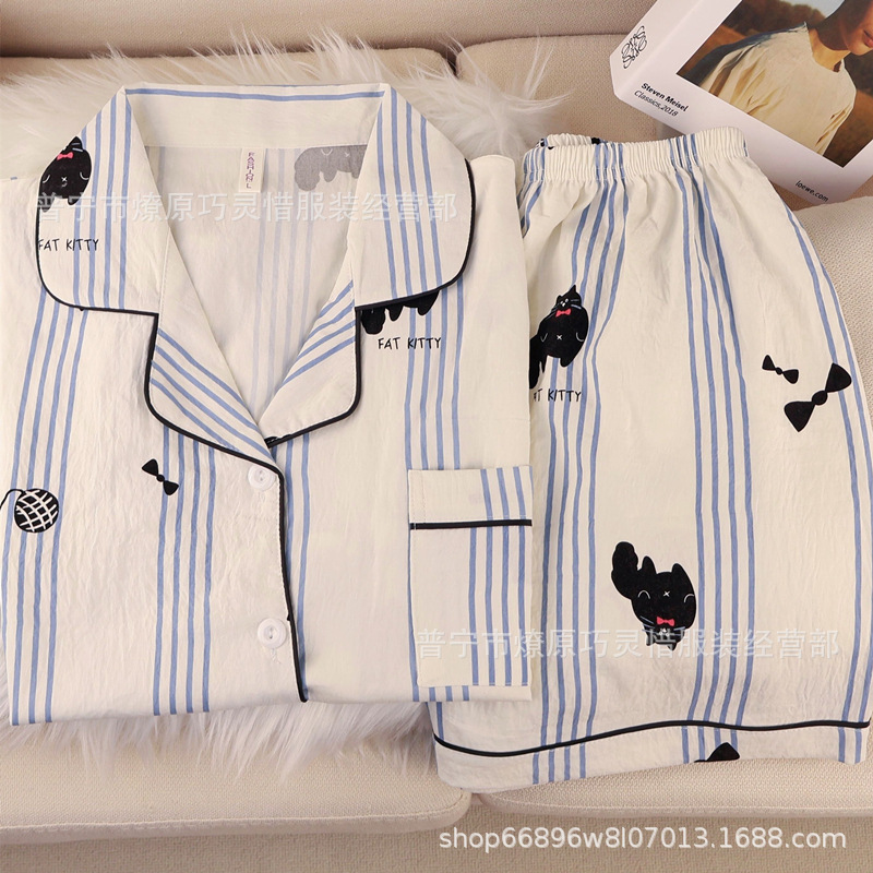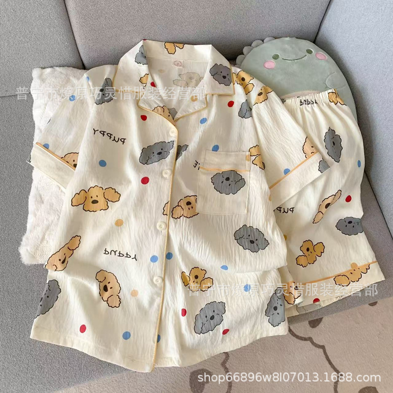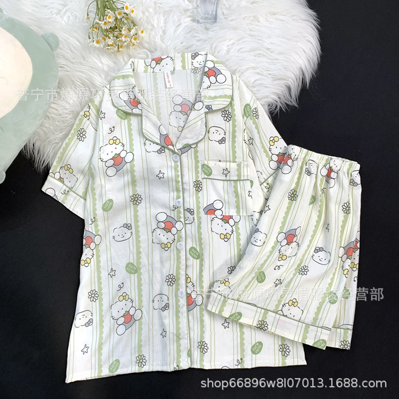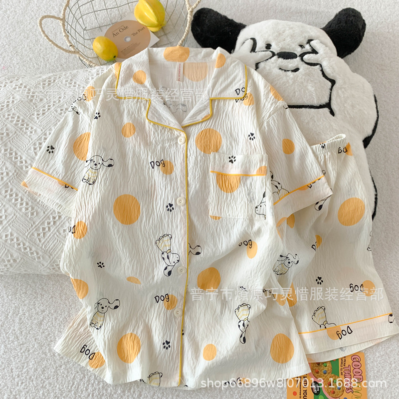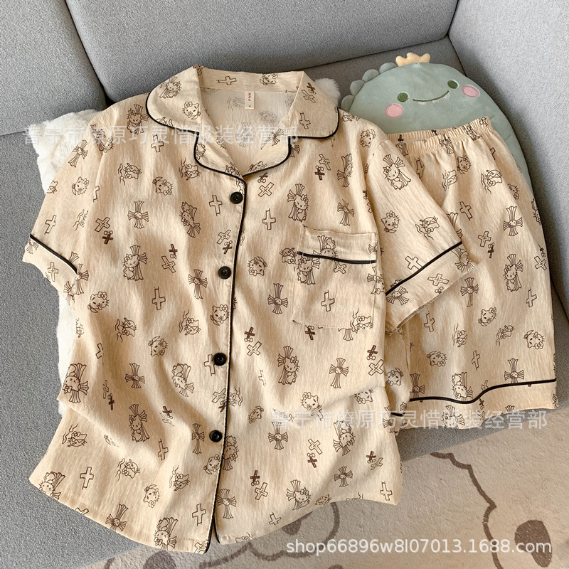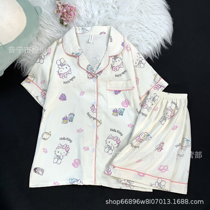 2025 여름 새로운 구름면 카디건 옷깃 달콤한 소녀 잠옷 짧은 소매 반바지 여성 홈 의류 세트