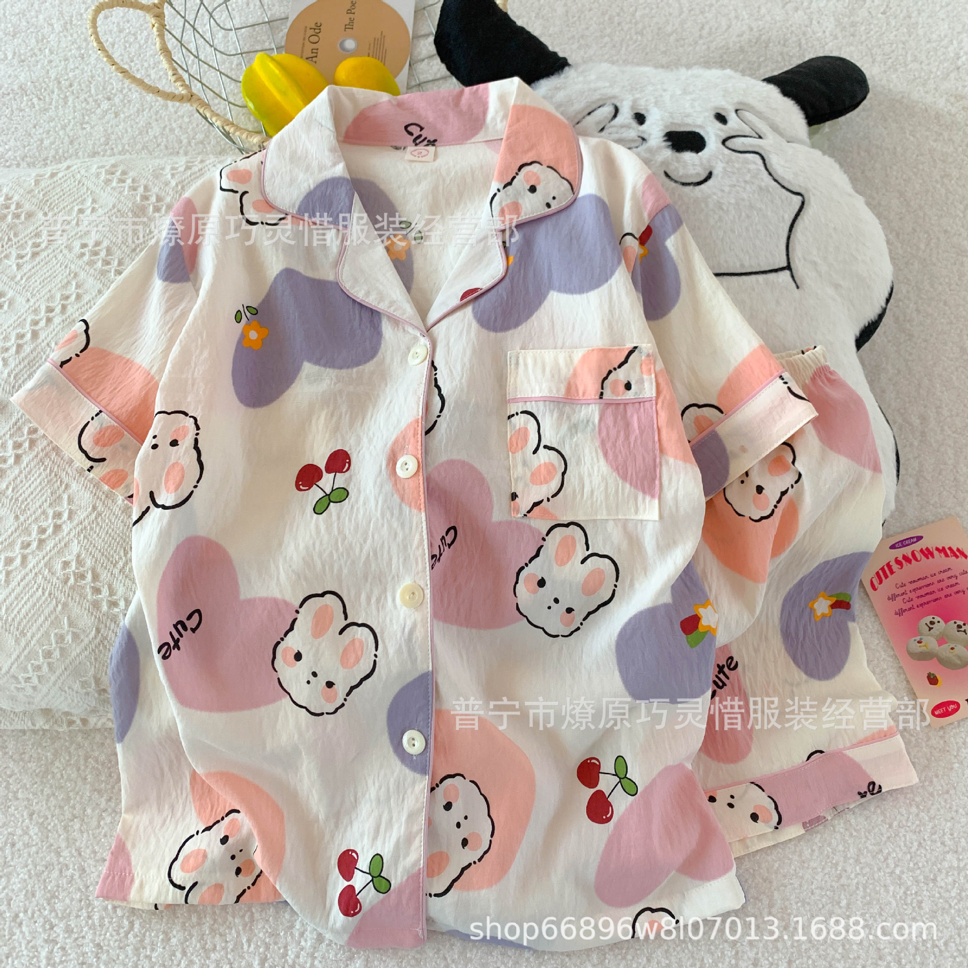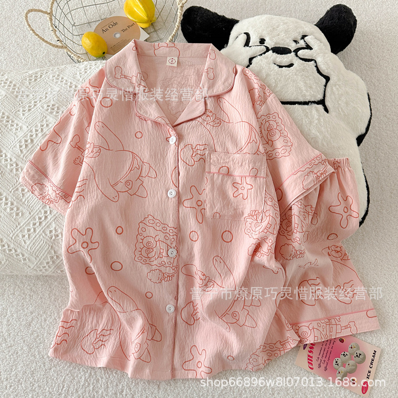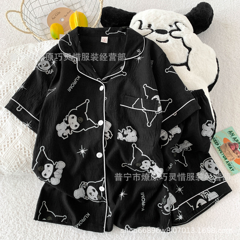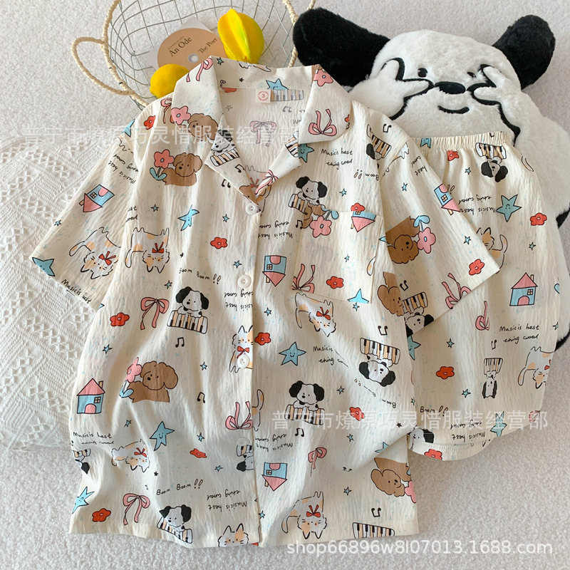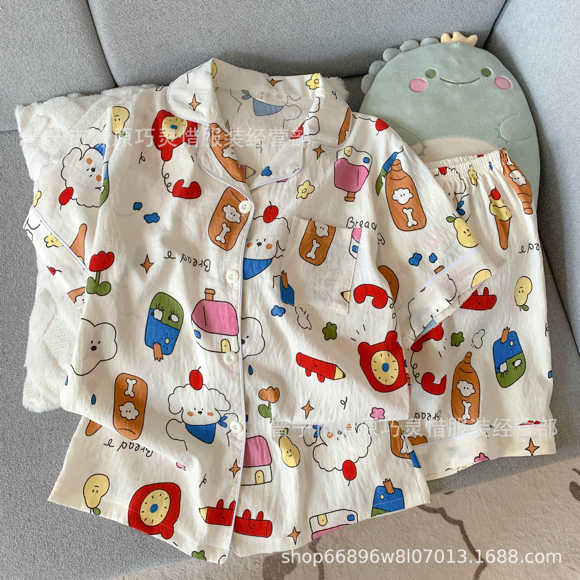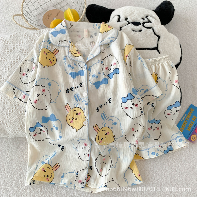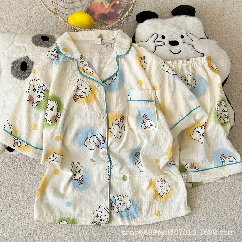 2025 여름 새로운 구름면 카디건 옷깃 달콤한 소녀 잠옷 짧은 소매 반바지 여성 홈 의류 세트