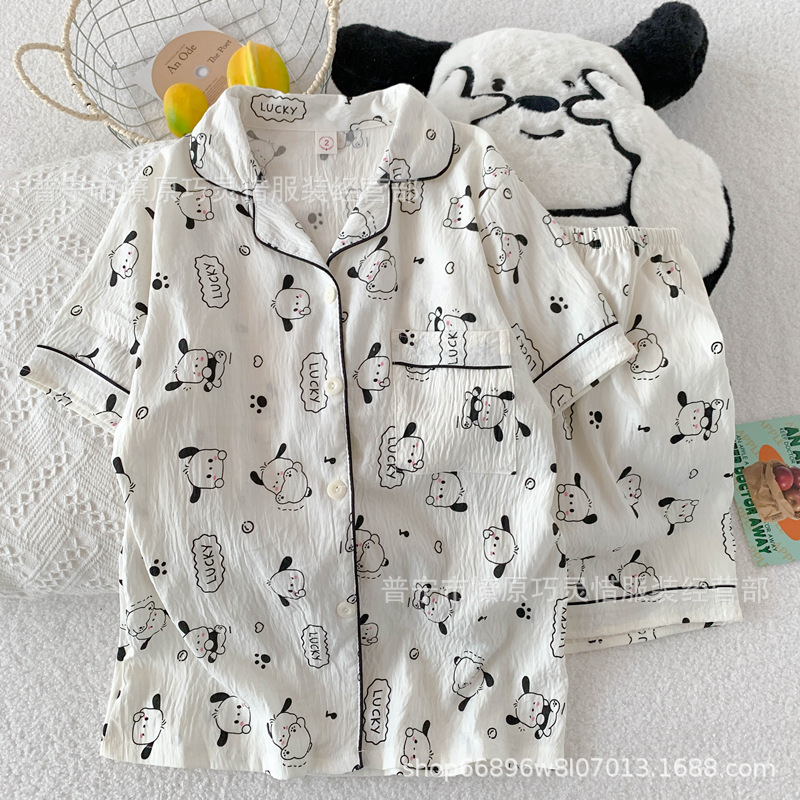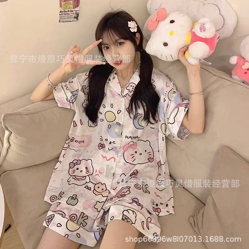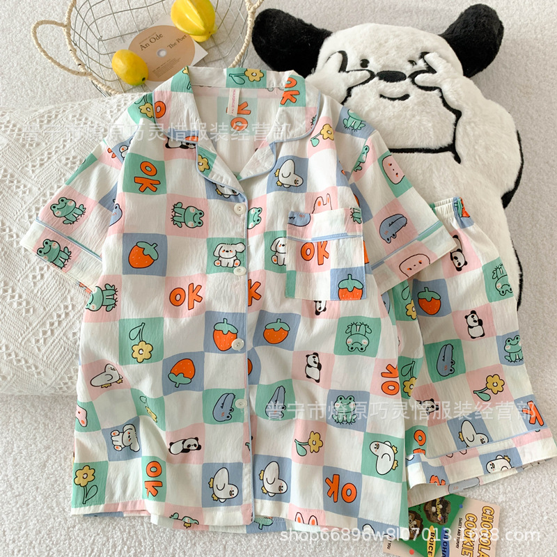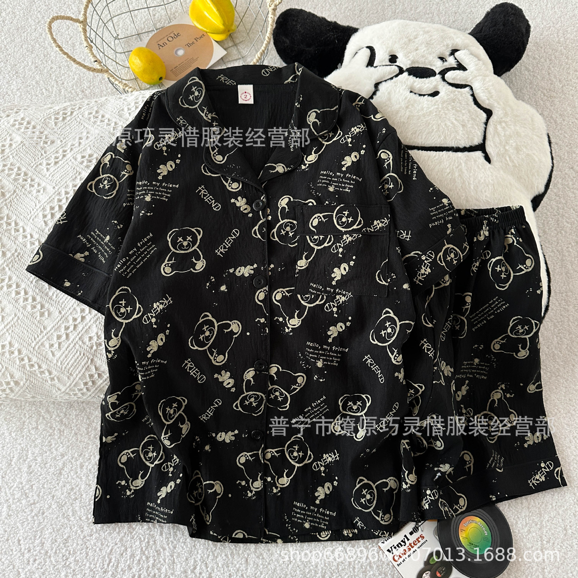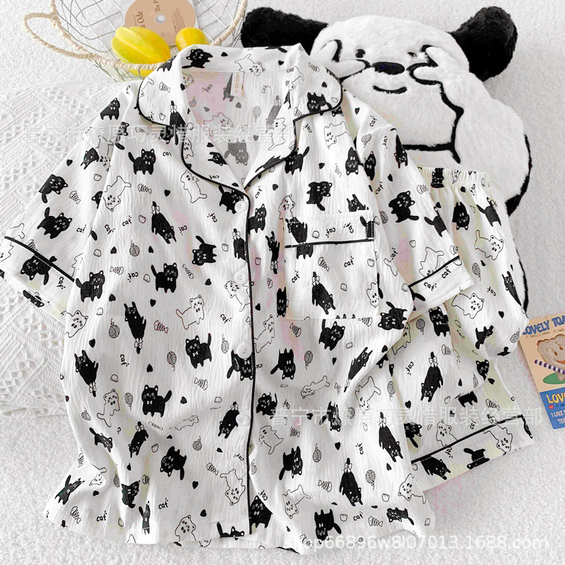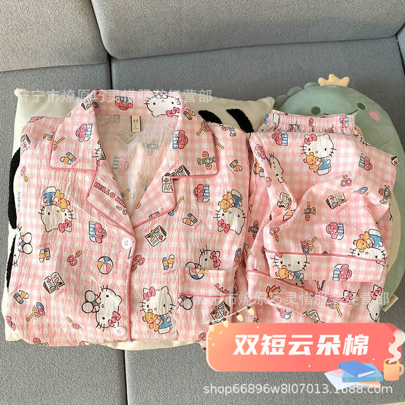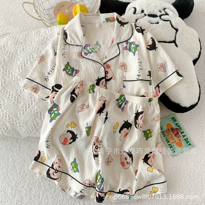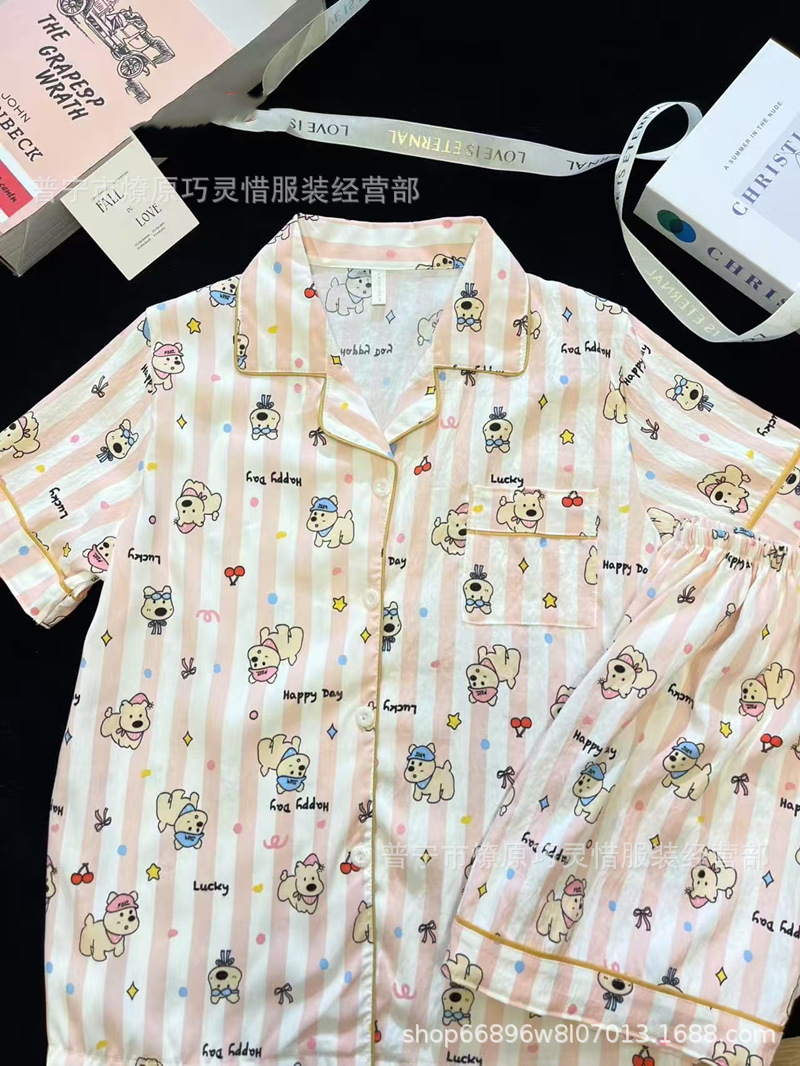 2025 여름 새로운 구름면 카디건 옷깃 달콤한 소녀 잠옷 짧은 소매 반바지 여성 홈 의류 세트