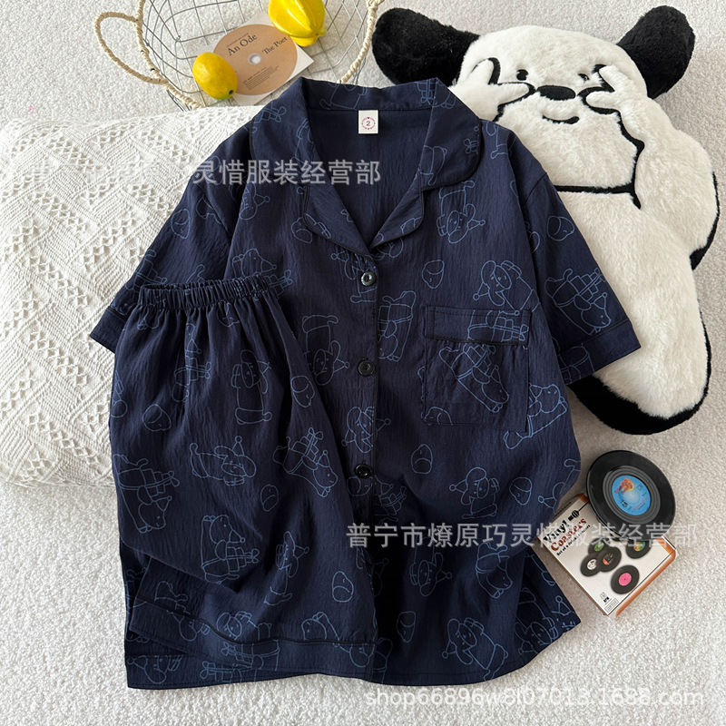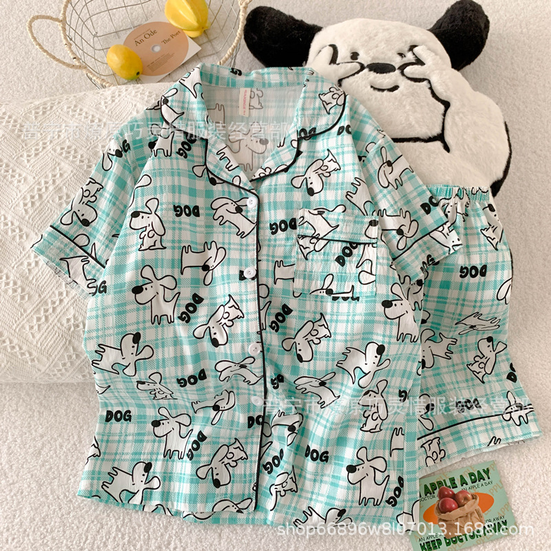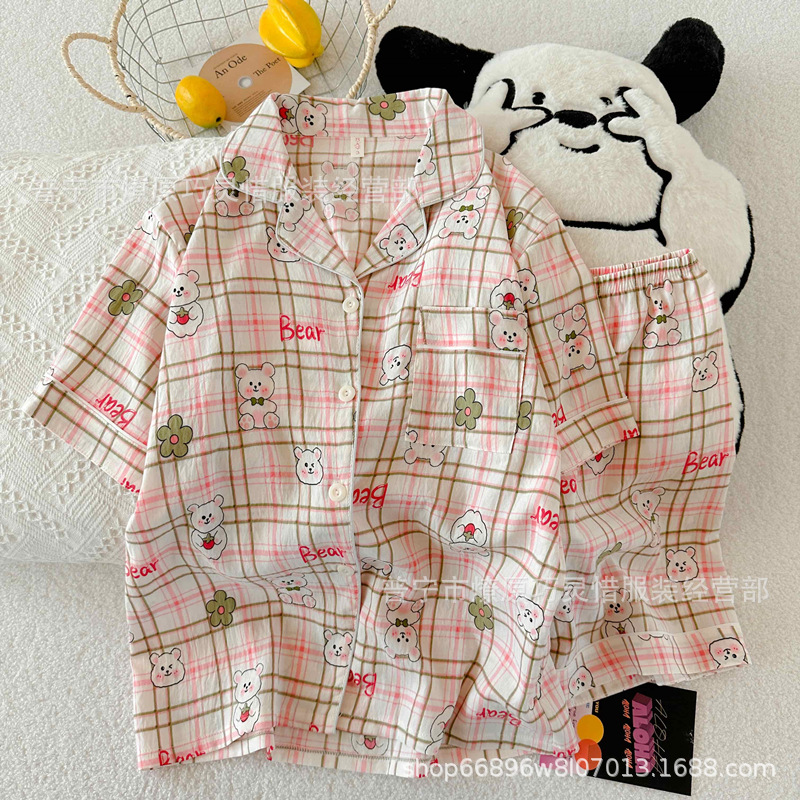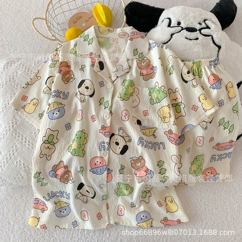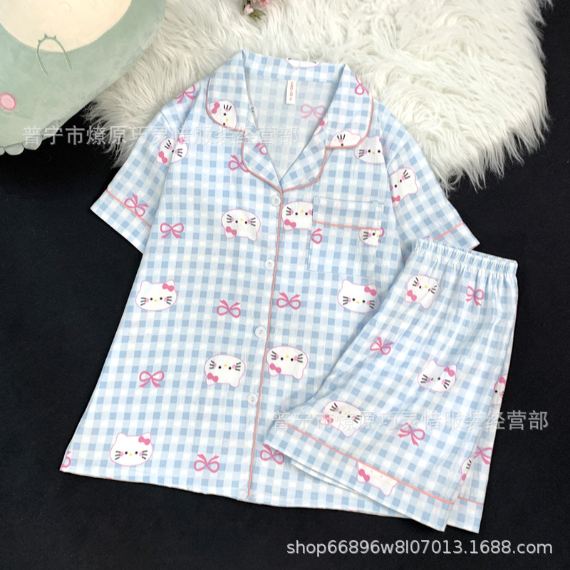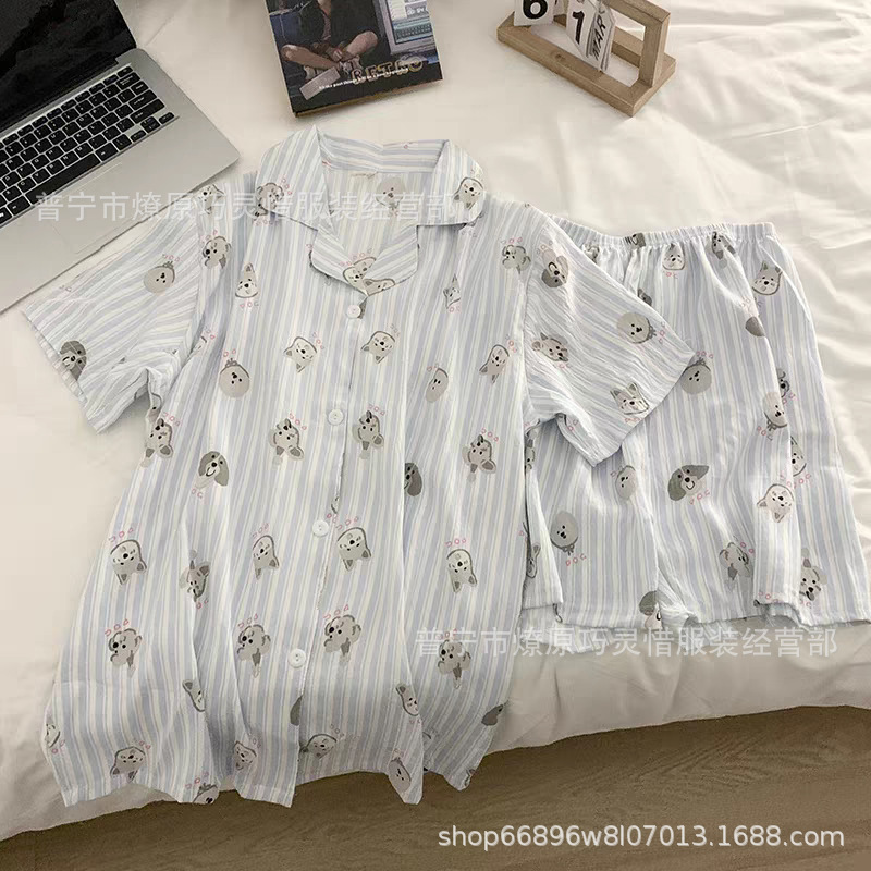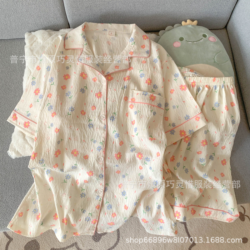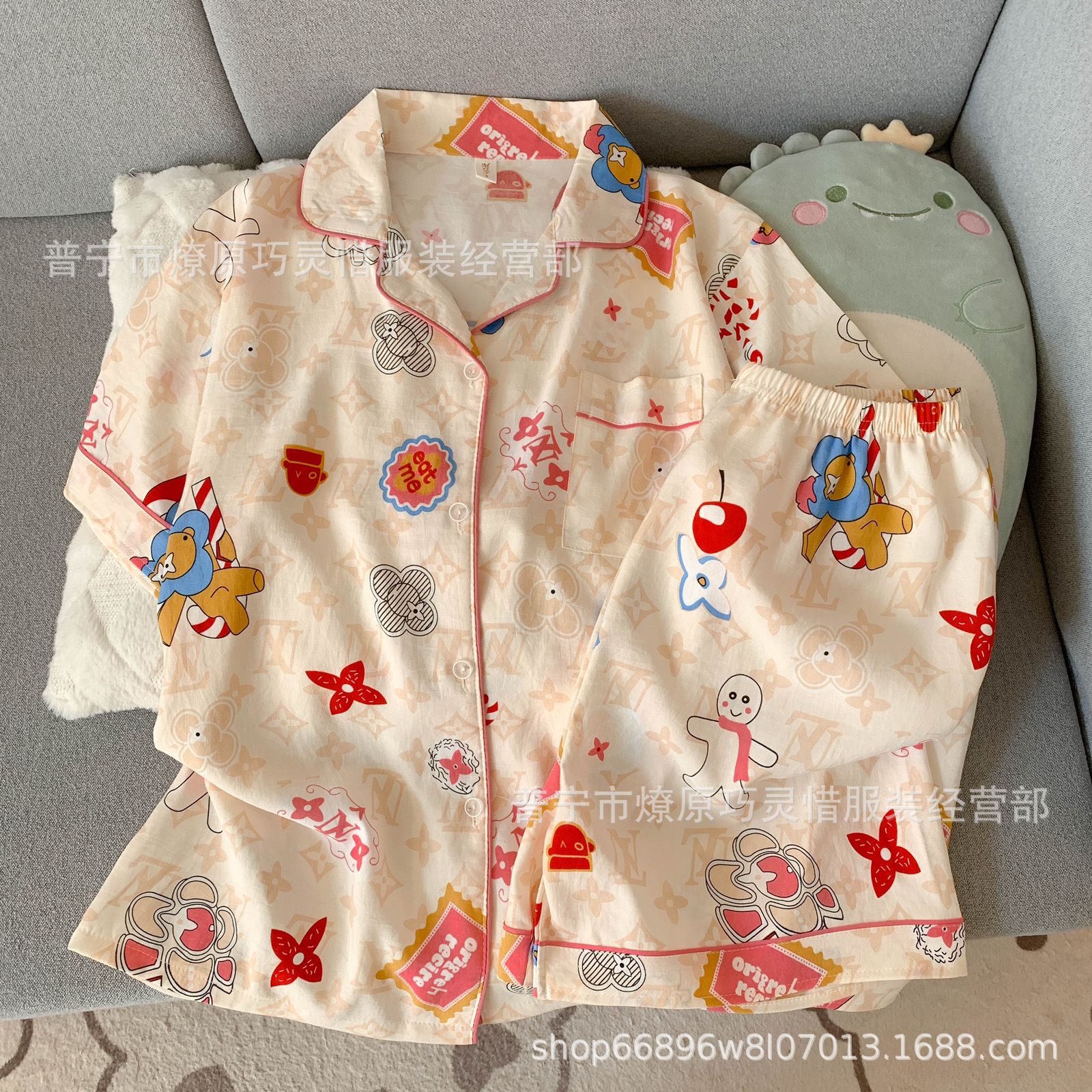 2025 여름 새로운 구름면 카디건 옷깃 달콤한 소녀 잠옷 짧은 소매 반바지 여성 홈 의류 세트