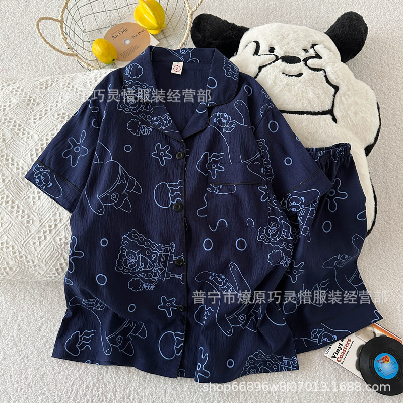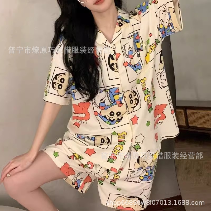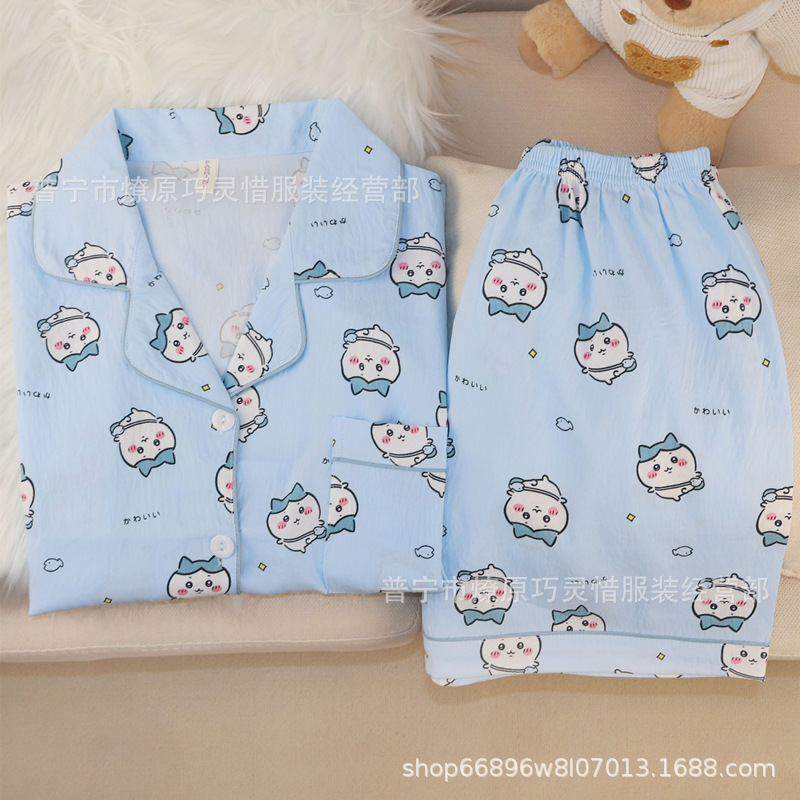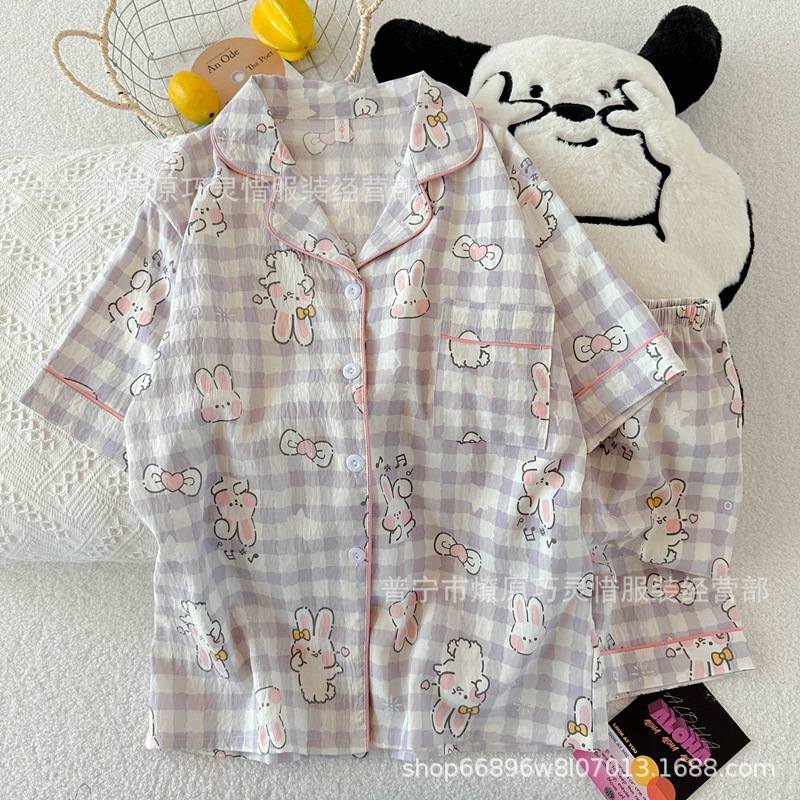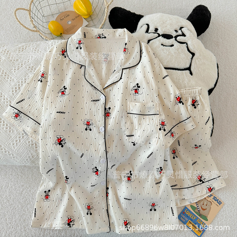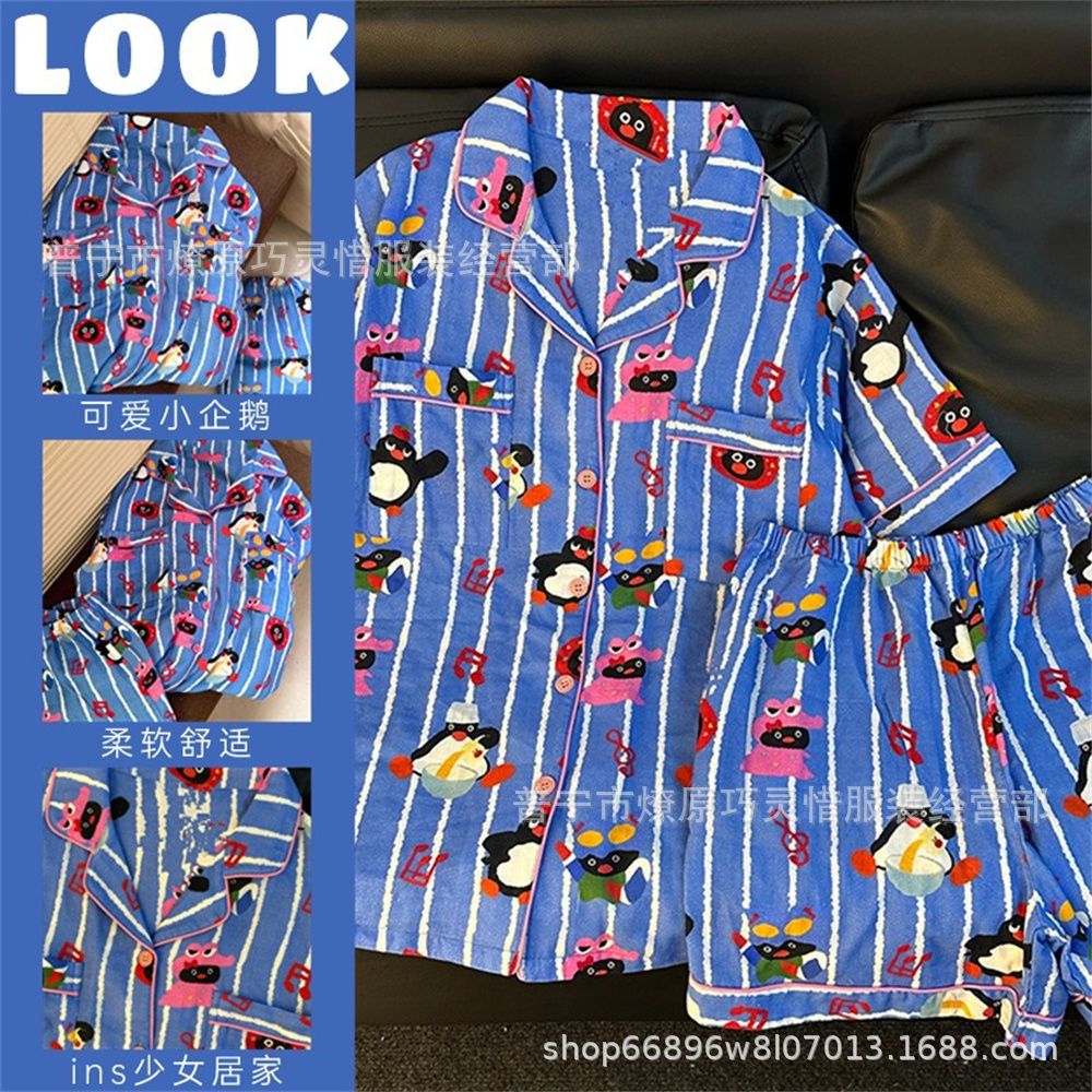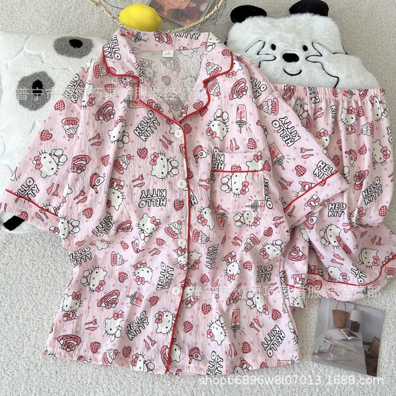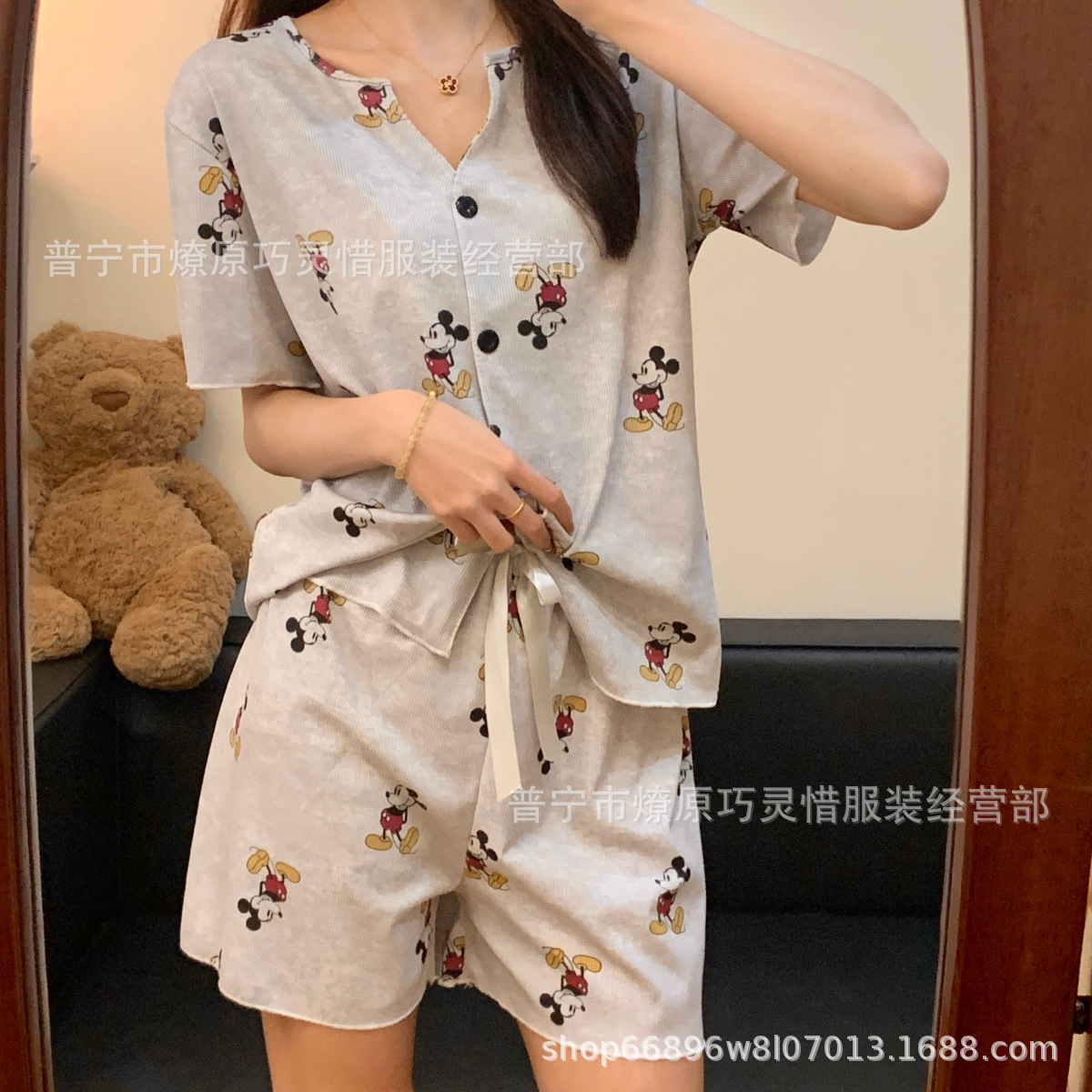 2025 여름 새로운 구름면 카디건 옷깃 달콤한 소녀 잠옷 짧은 소매 반바지 여성 홈 의류 세트