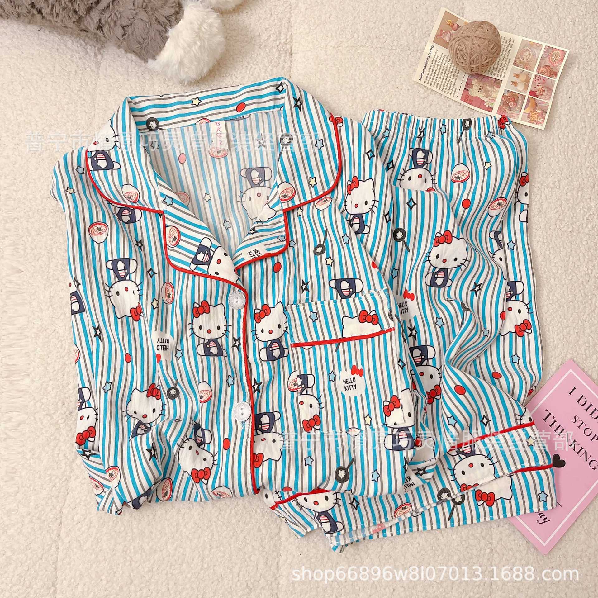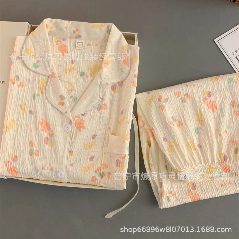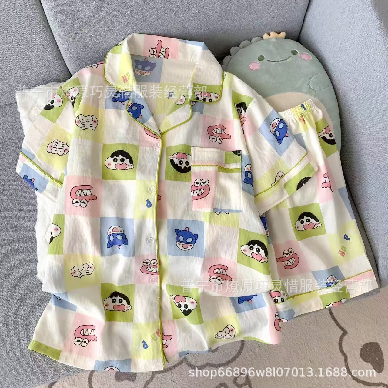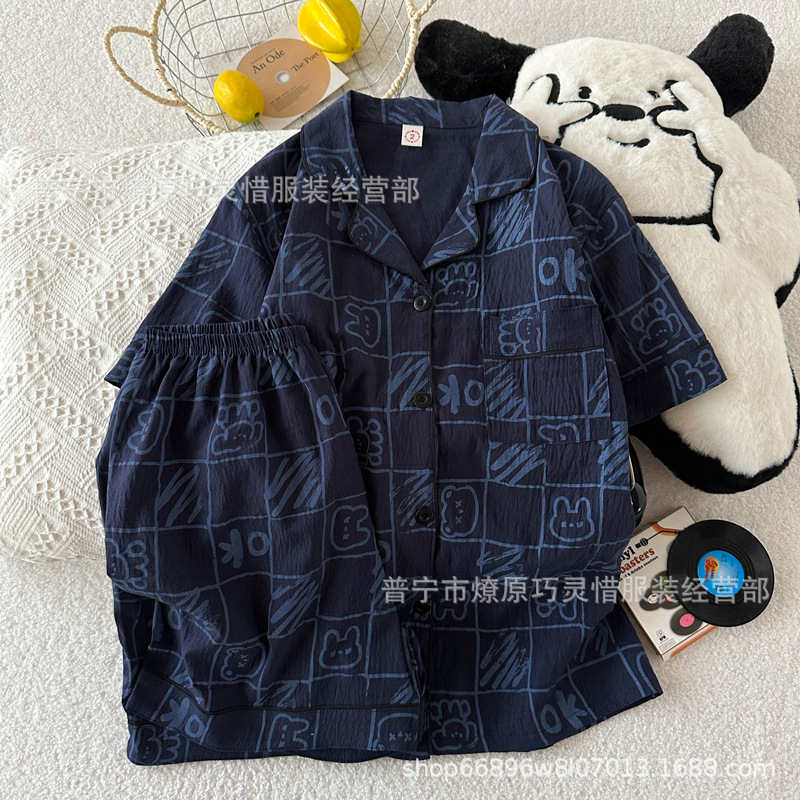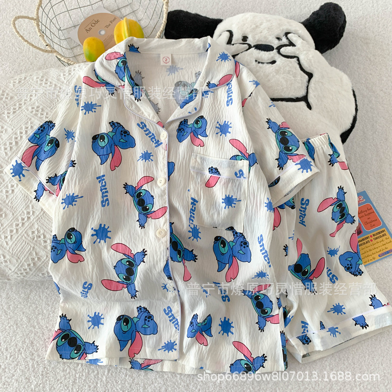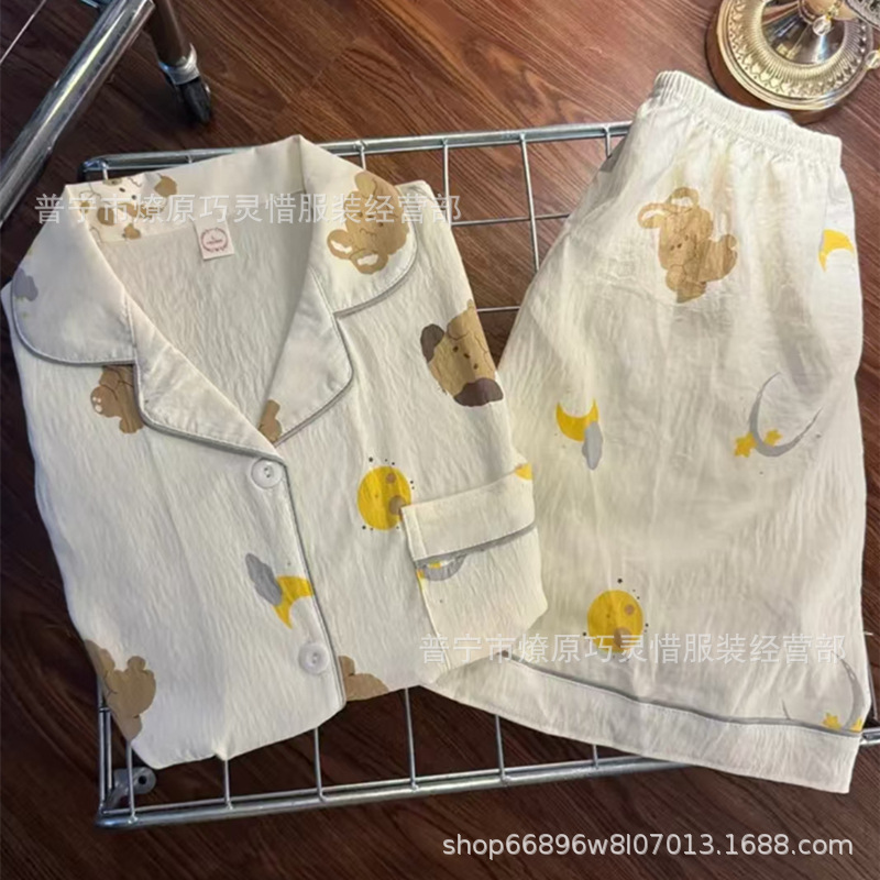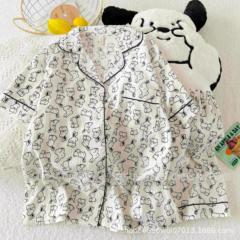 2025 여름 새로운 구름면 카디건 옷깃 달콤한 소녀 잠옷 짧은 소매 반바지 여성 홈 의류 세트