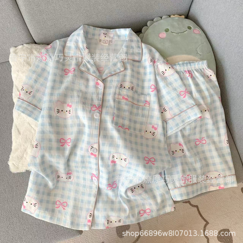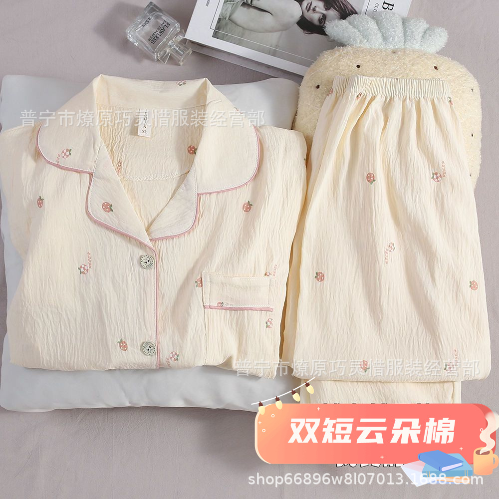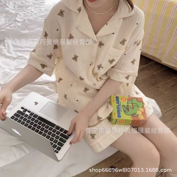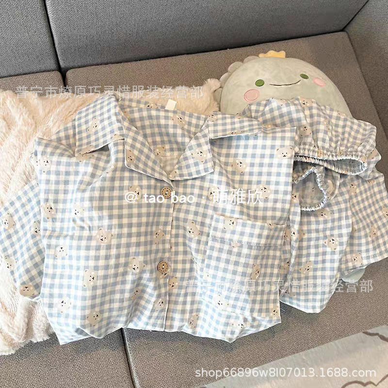 2025 여름 새로운 구름면 카디건 옷깃 달콤한 소녀 잠옷 짧은 소매 반바지 여성 홈 의류 세트스토어 가기