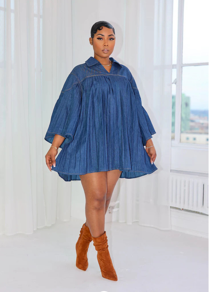 대외 무역 플랫폼 아마존 새로운 유럽과 미국의 국경 패션 우아한 느슨한 데님 장식 여성 원피스스토어 가기