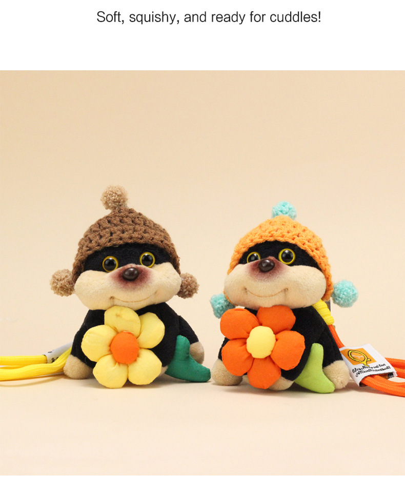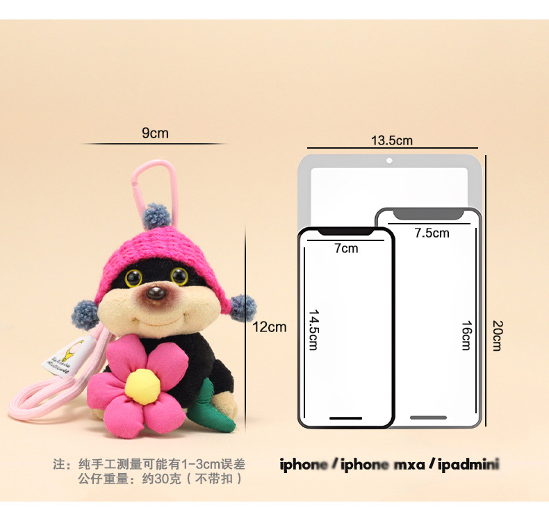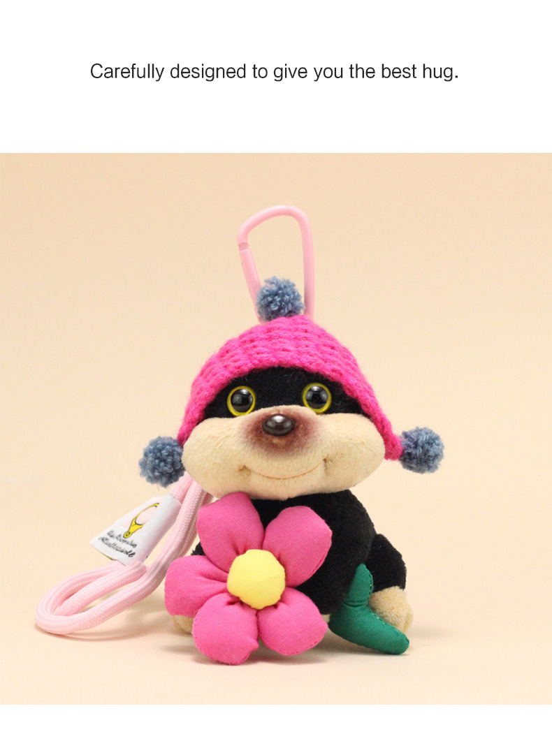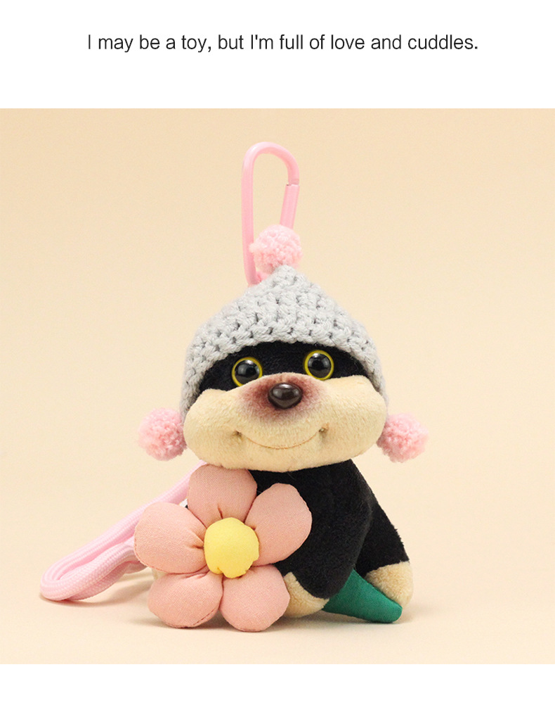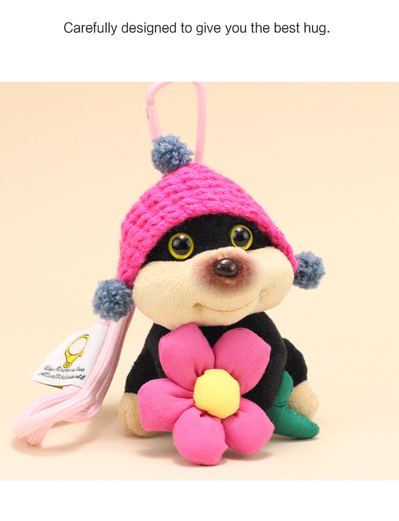 公仔背面是用别针固定的,毛绒公仔有线头是正常的,可以自己修剪下