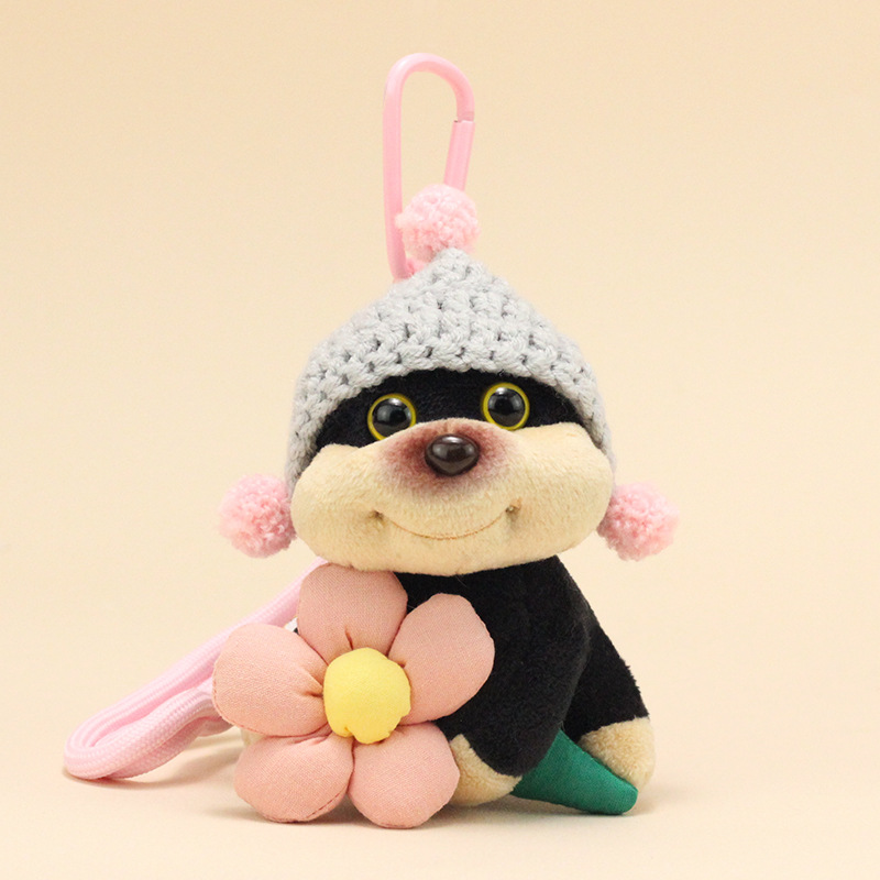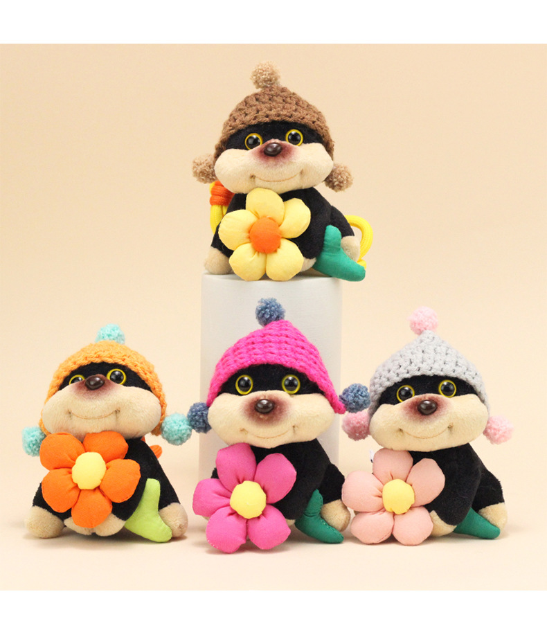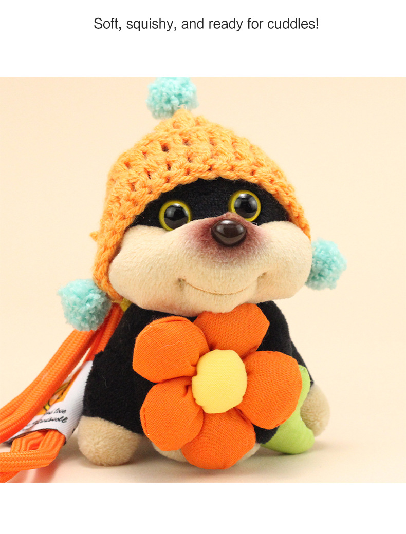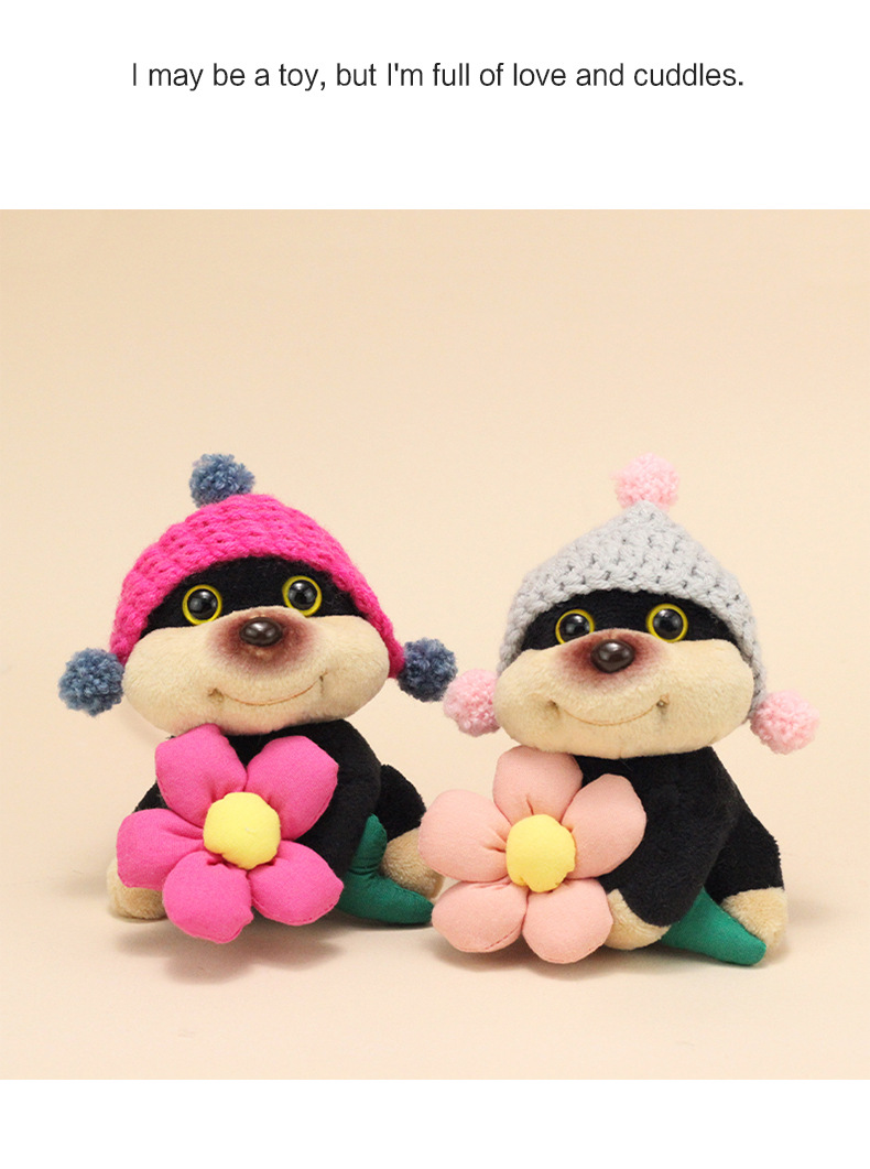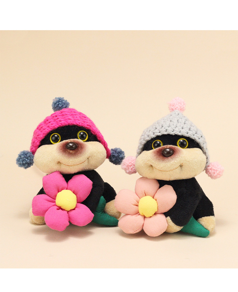 公仔背面是用别针固定的,毛绒公仔有线头是正常的,可以自己修剪下