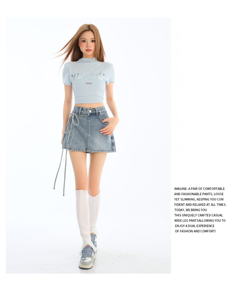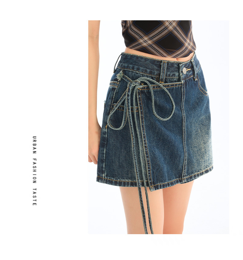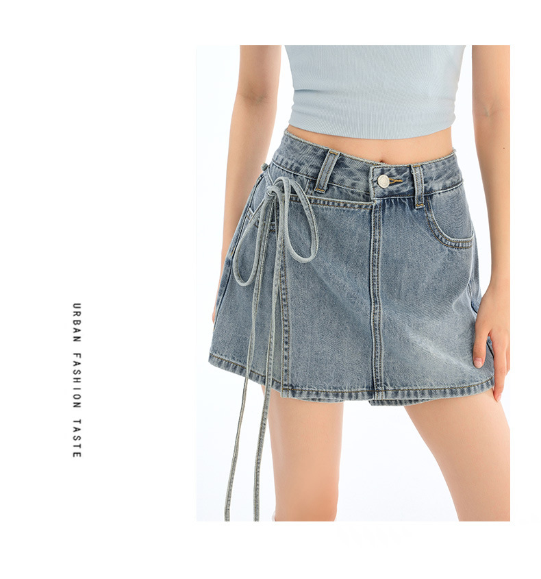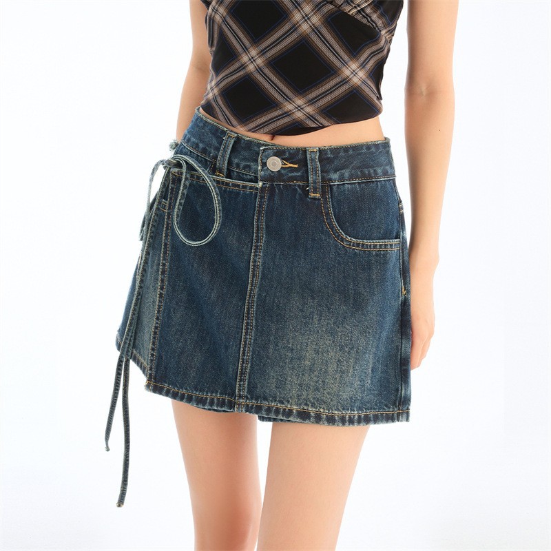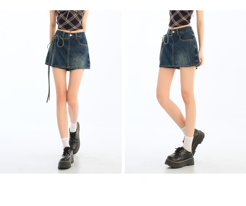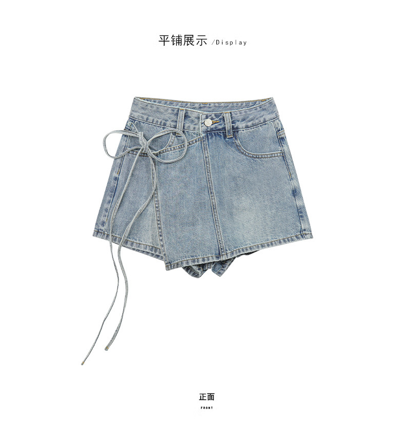 미국식 가짜 투피스 A 라인 데님 바지 스커트 여성용 불규칙한 웨스턴 스타일 스트랩 작은 핫 걸 슬림 룩 올 매치 쇼트 스커트스토어 가기