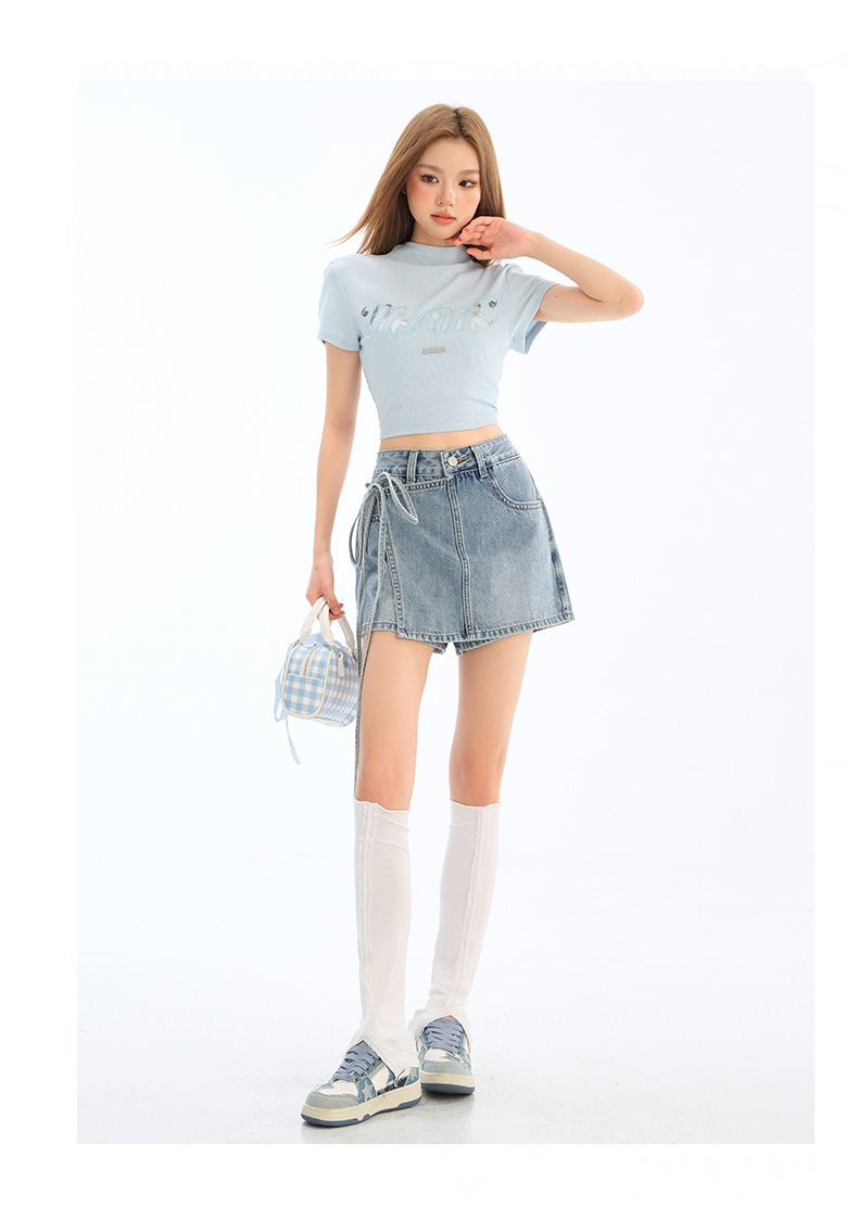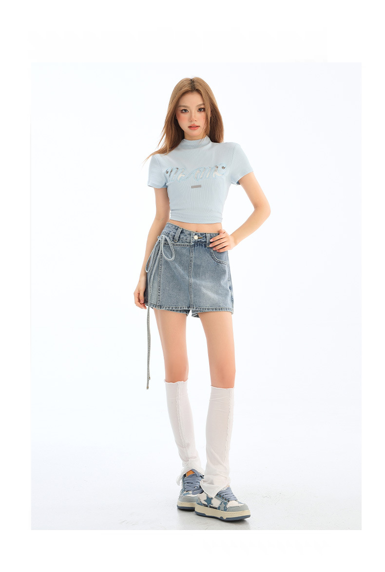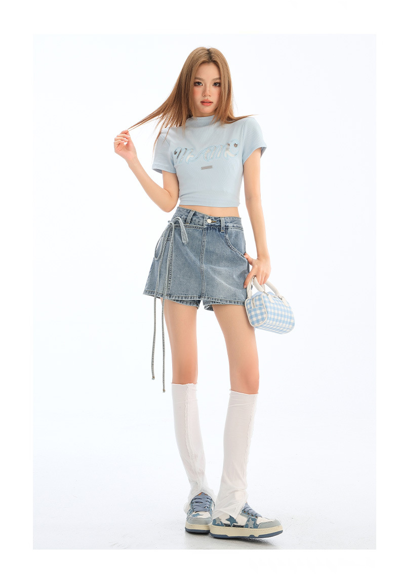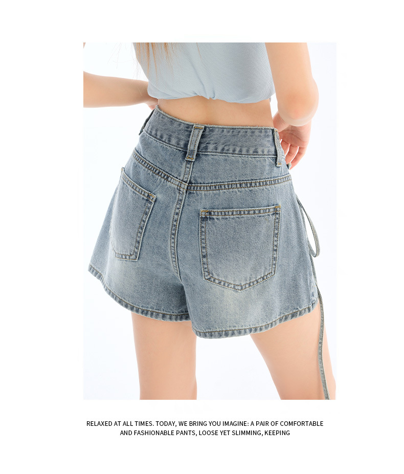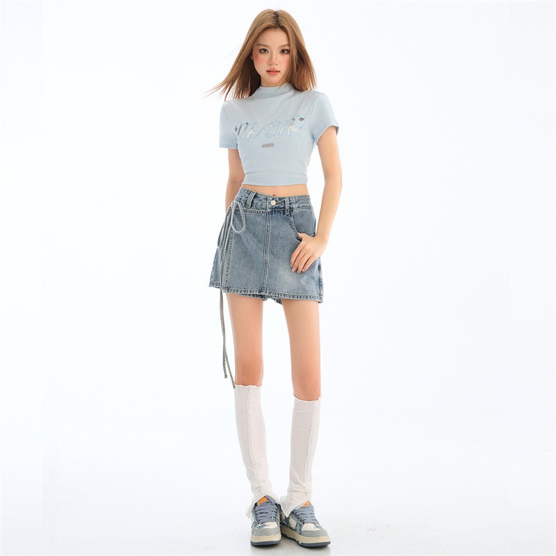 미국식 가짜 투피스 A 라인 데님 바지 스커트 여성용 불규칙한 웨스턴 스타일 스트랩 작은 핫 걸 슬림 룩 올 매치 쇼트 스커트스토어 가기