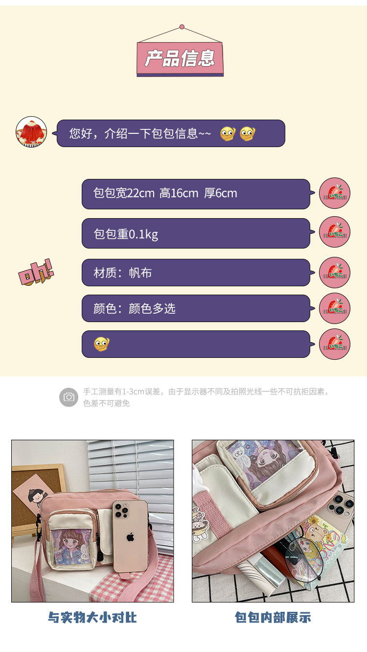 캔버스 가방 여성 크로스 바디 여름 캐주얼 귀여운 작은 가방 2025 인터넷 축하 패션 올 매치 작은 광장 가방 어깨 가방스토어 가기