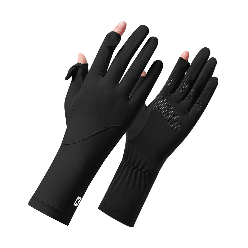 선 스크린 장갑 여성의 여름 새로운 아이스 실크 통기성 미끄럼 방지 손목 긴 노출 플립 안티-UV 운전