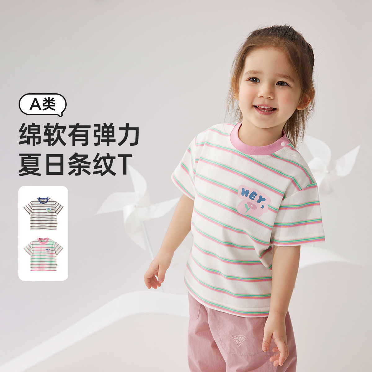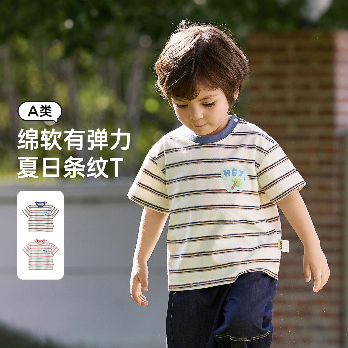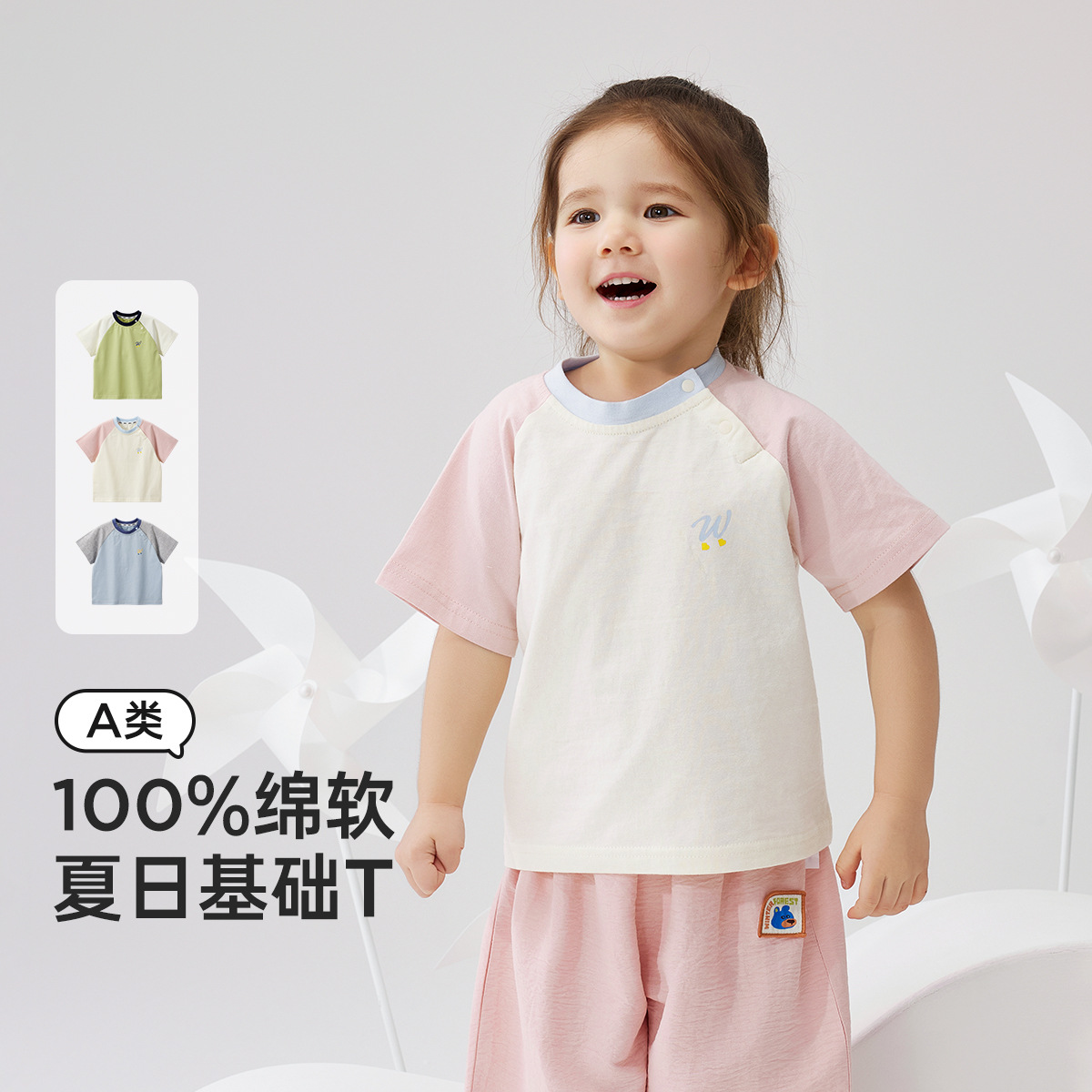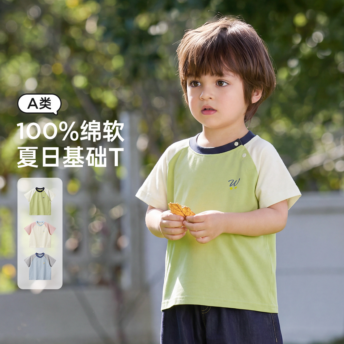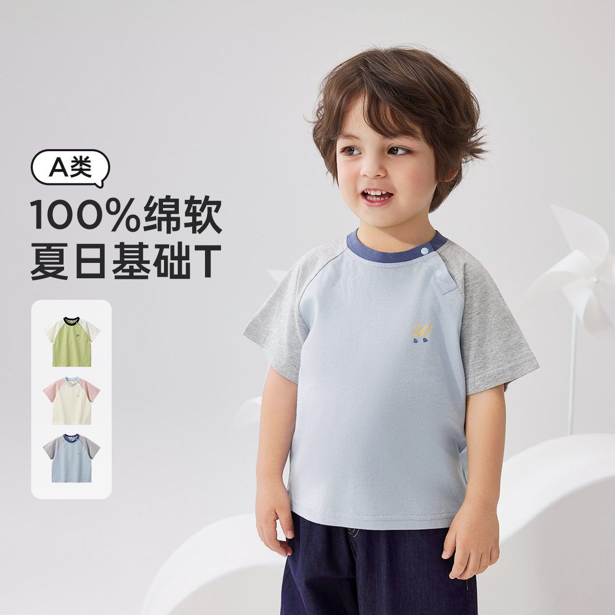 Wilberu 어린이 여름 얇은 만화 탑 유형 A 반팔 티셔츠 아기 외출 대비 색 반팔 탑