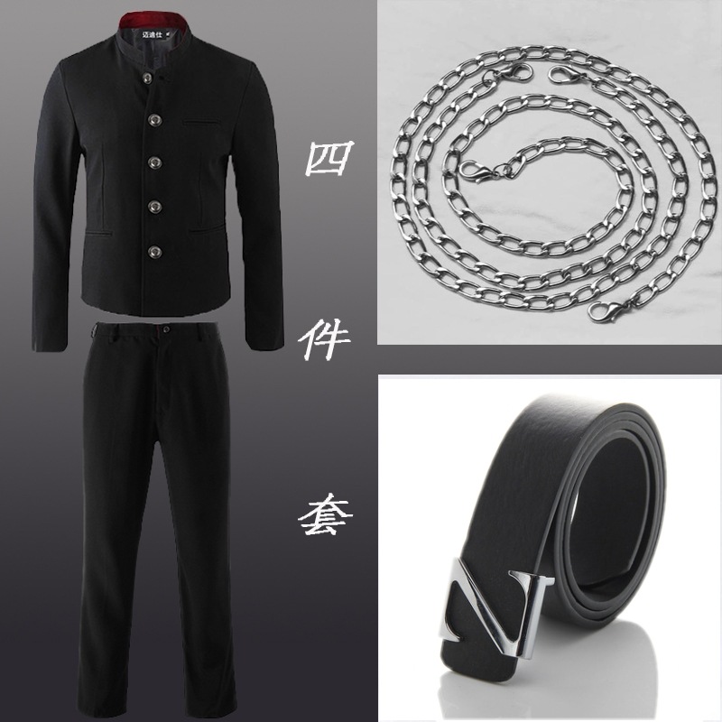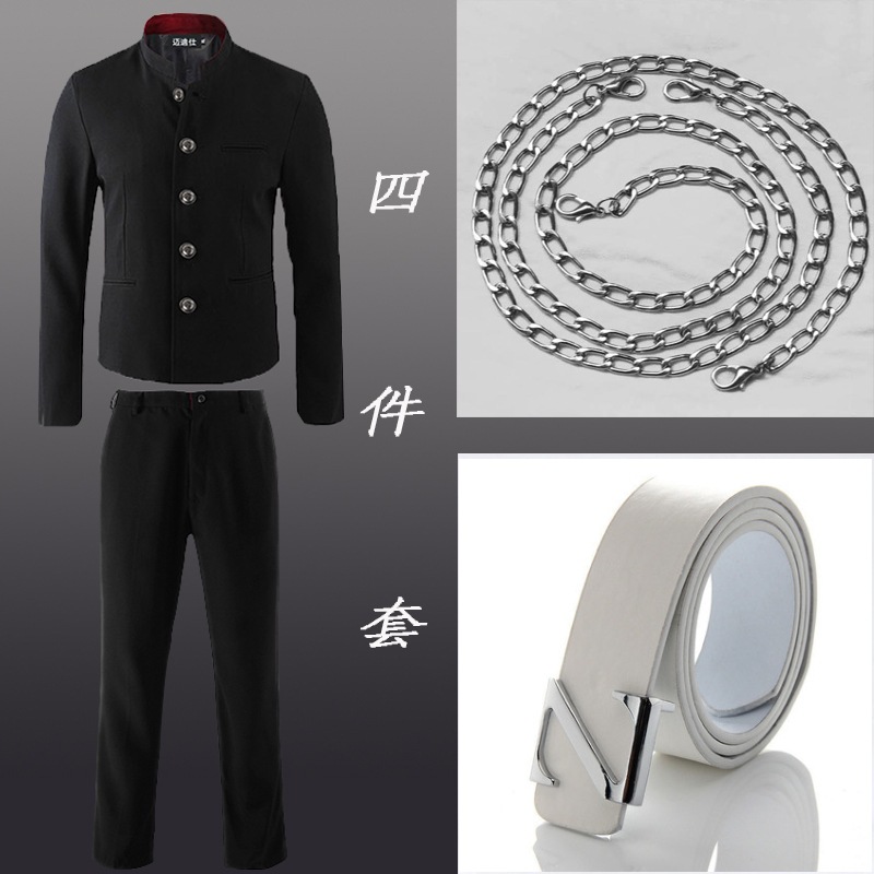 • ZS02. (재킷 + 스트레이트 팬츠 + 랜덤 바지 체인 + 긴팔 흰색 티셔츠) + 검은색 벨트