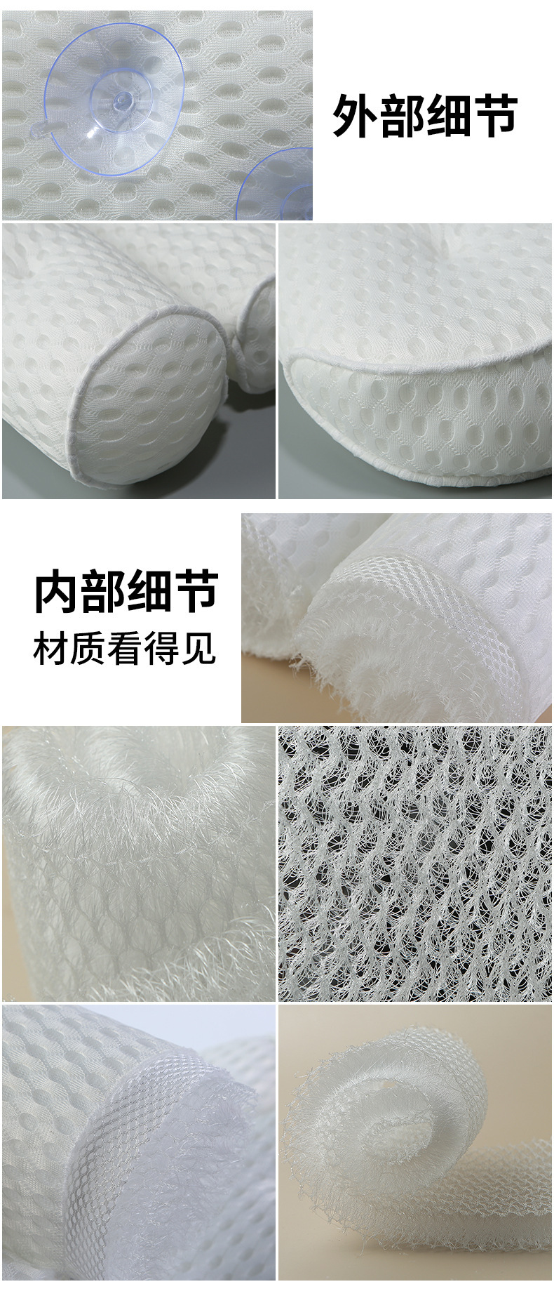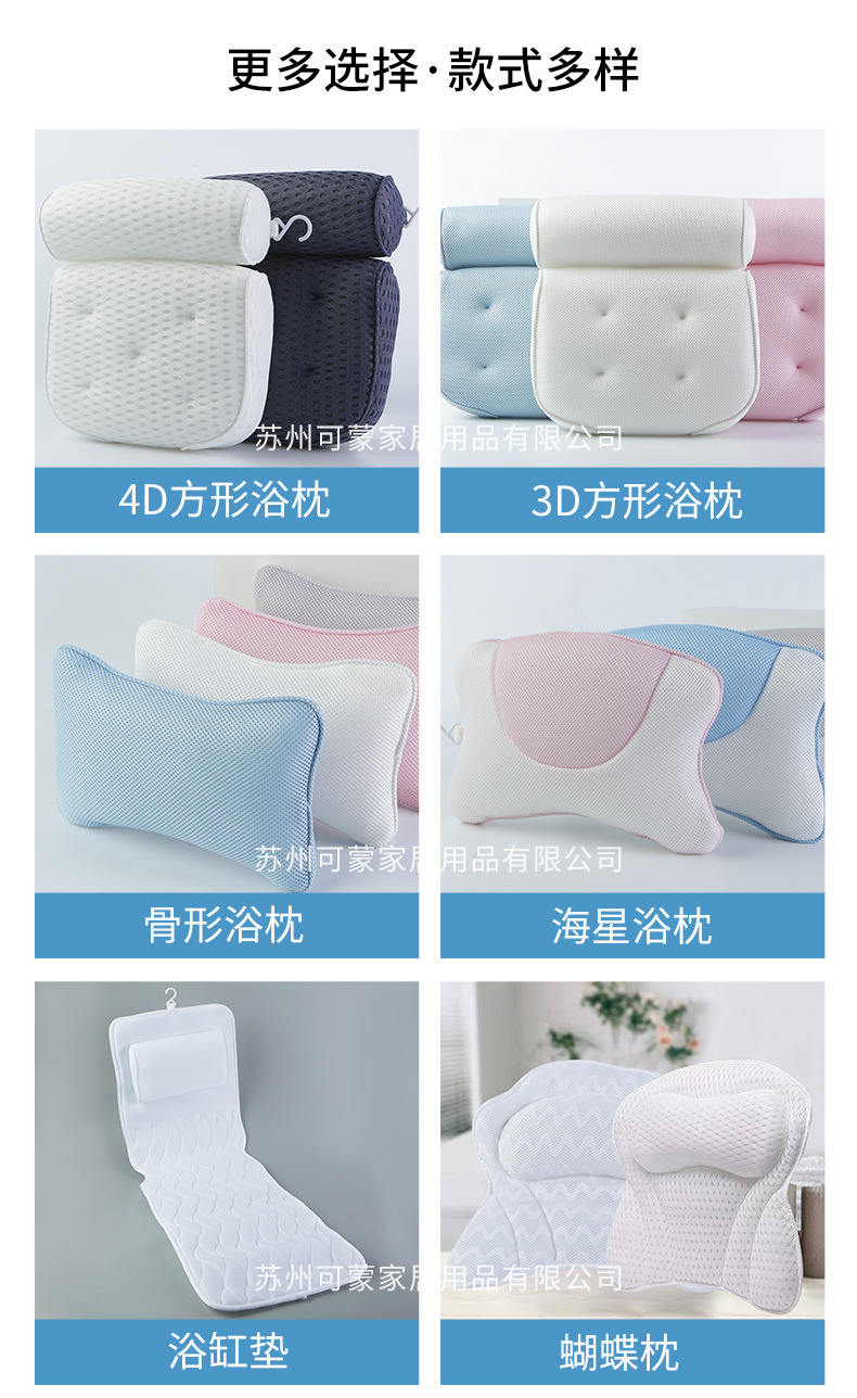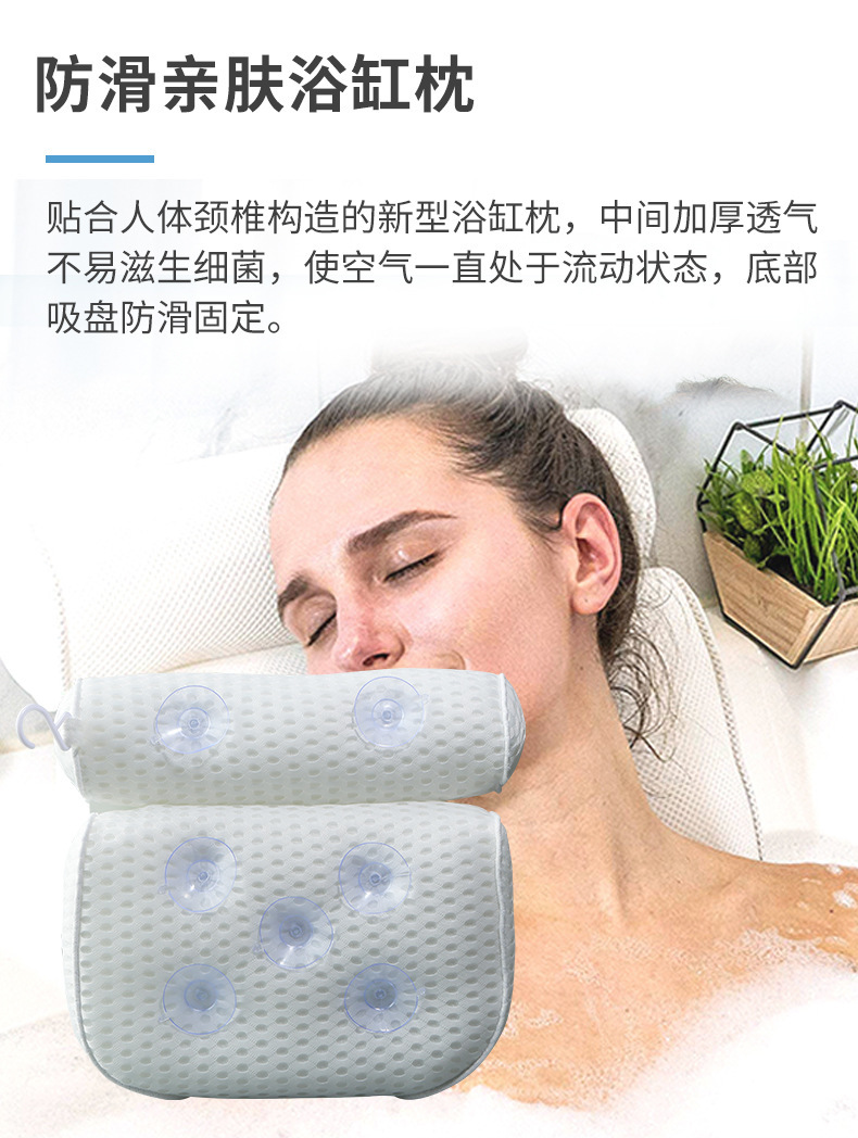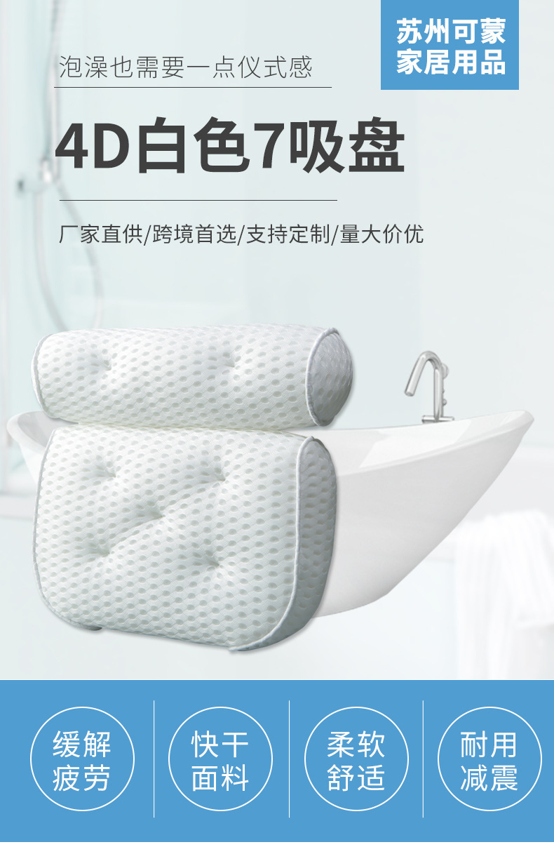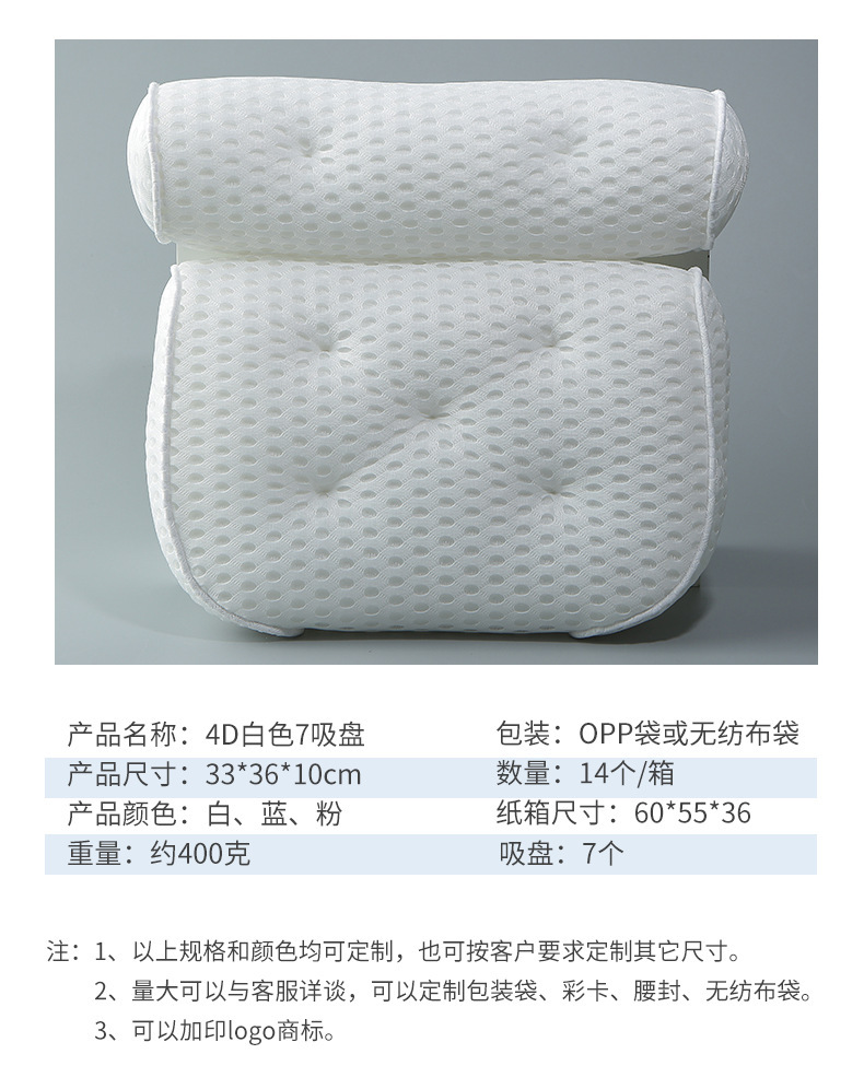 3D 메쉬 흰색 욕조 베개 7개의 흡입 컵 베개가 있는 욕실을 위한 국경 간 공급 SPA 목욕 베개 사각형 욕조스토어 가기