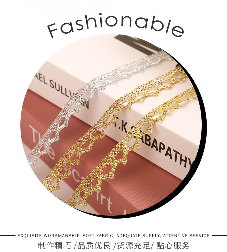 1cm 금은 와이어 레이스 액세서리 중공 자수 웨딩 드레스 스커트 레이스 장식 디자인 TNM001