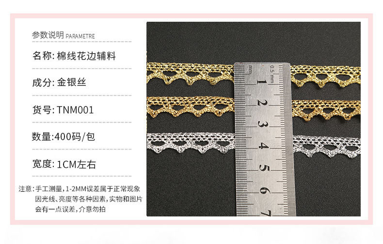 1cm 금은 와이어 레이스 액세서리 중공 자수 웨딩 드레스 스커트 레이스 장식 디자인 TNM001스토어 가기
