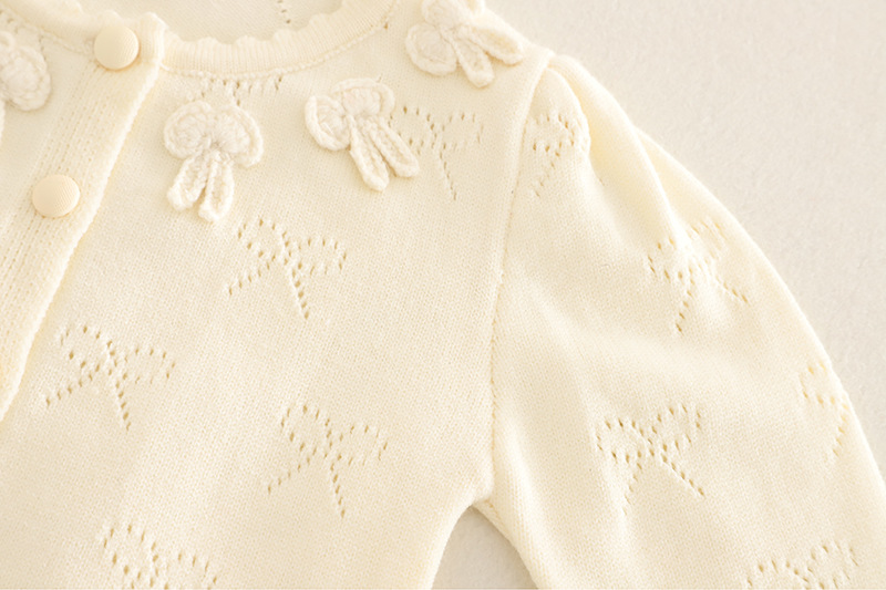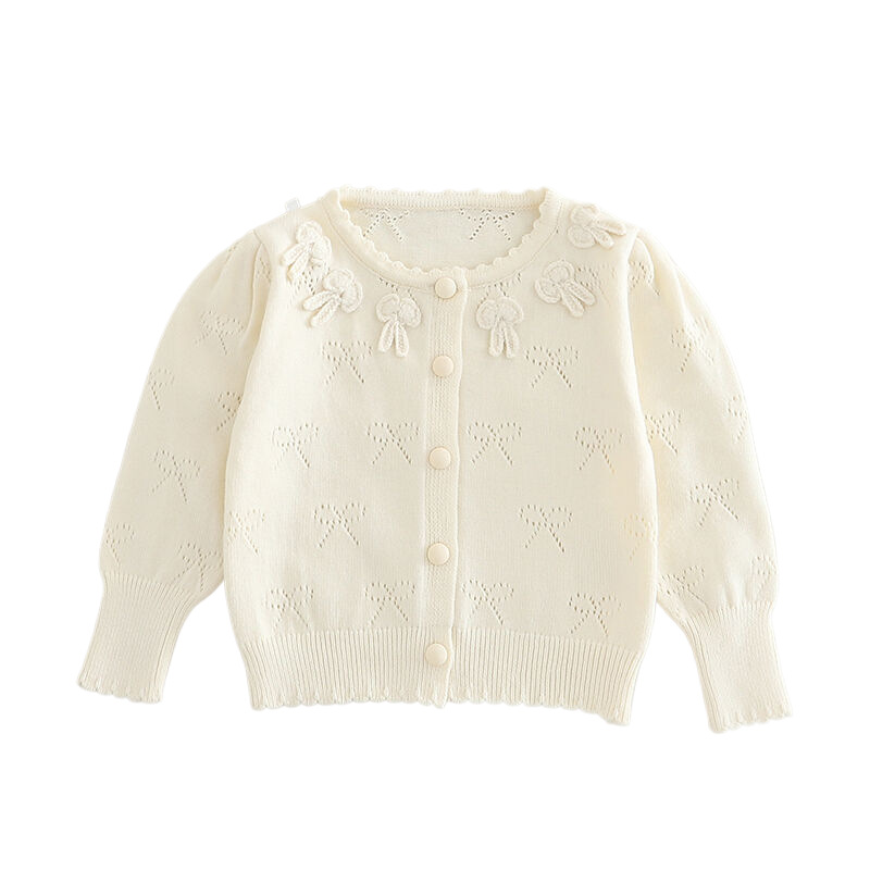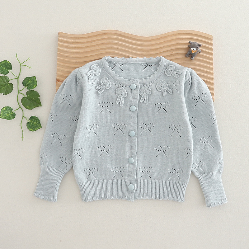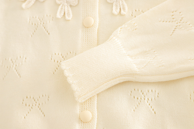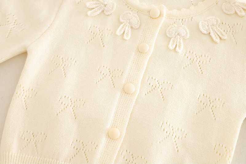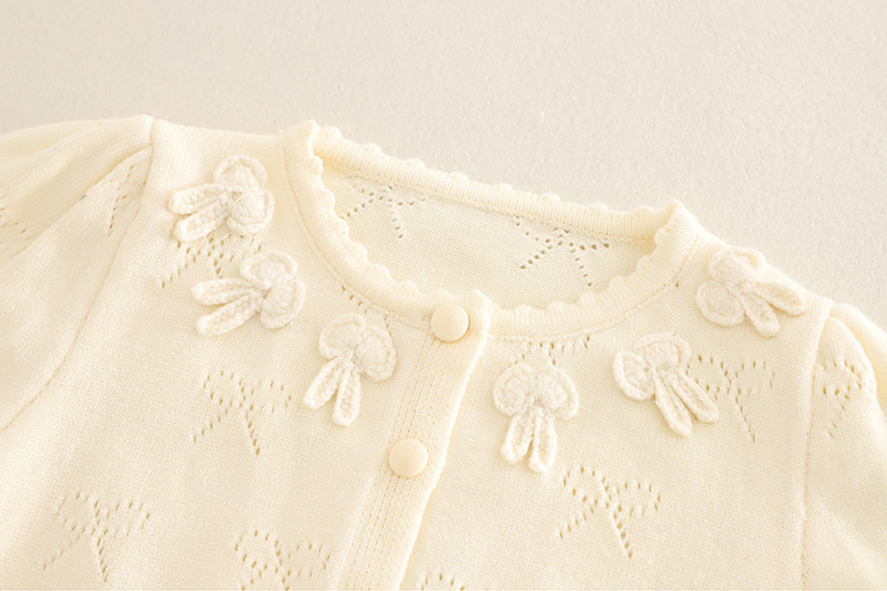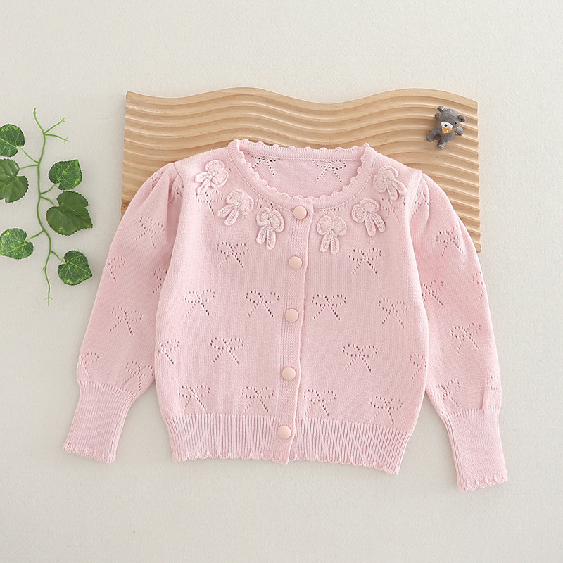 여자 속이 빈 수제 크로 셰 뜨개질 활 2025 새로운 한국 스타일 어린이 카디건 봄, 가을 여자를위한 에어컨 겉옷