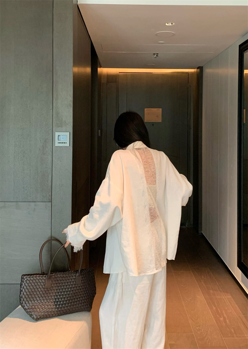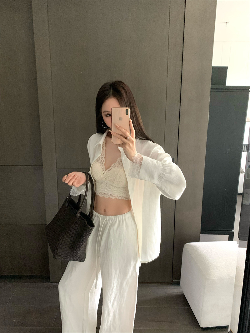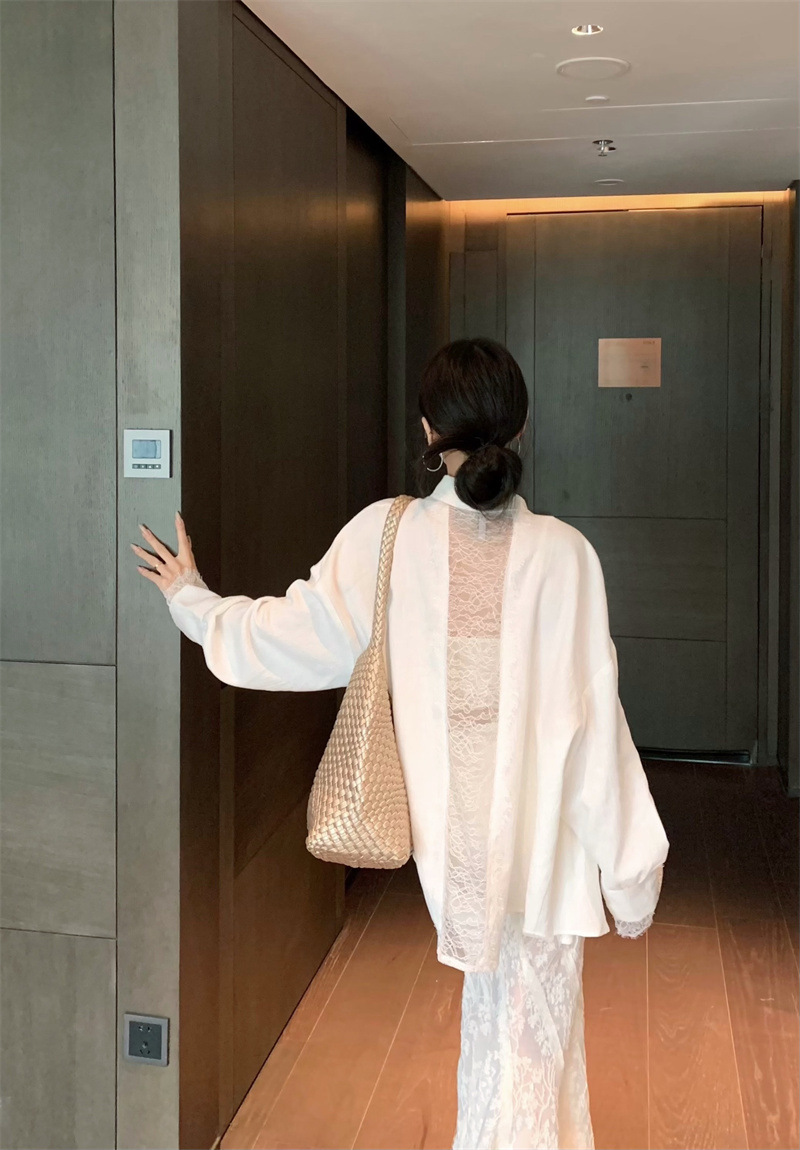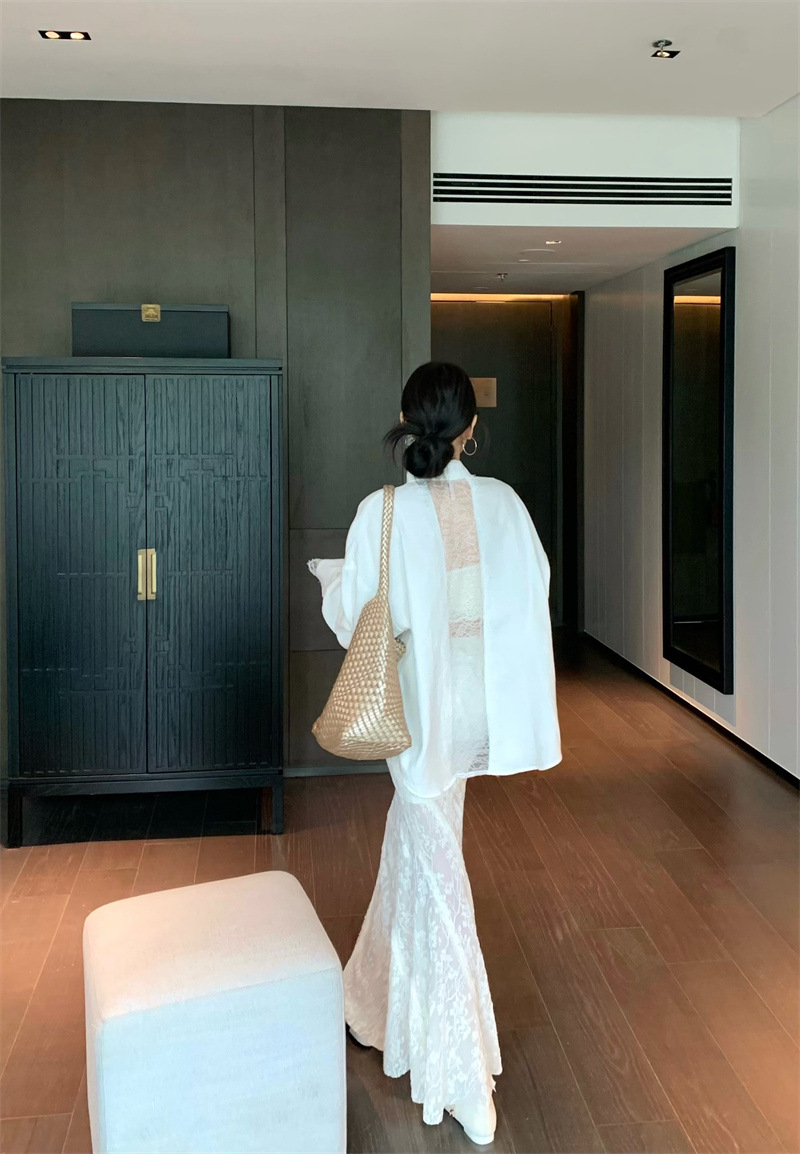 의류 세트 여성용 우아한 프렌치 레이스 바느질 긴팔 카디건 화이트 셔츠 탑 높은 허리 스커트 롱 스커트스토어 가기