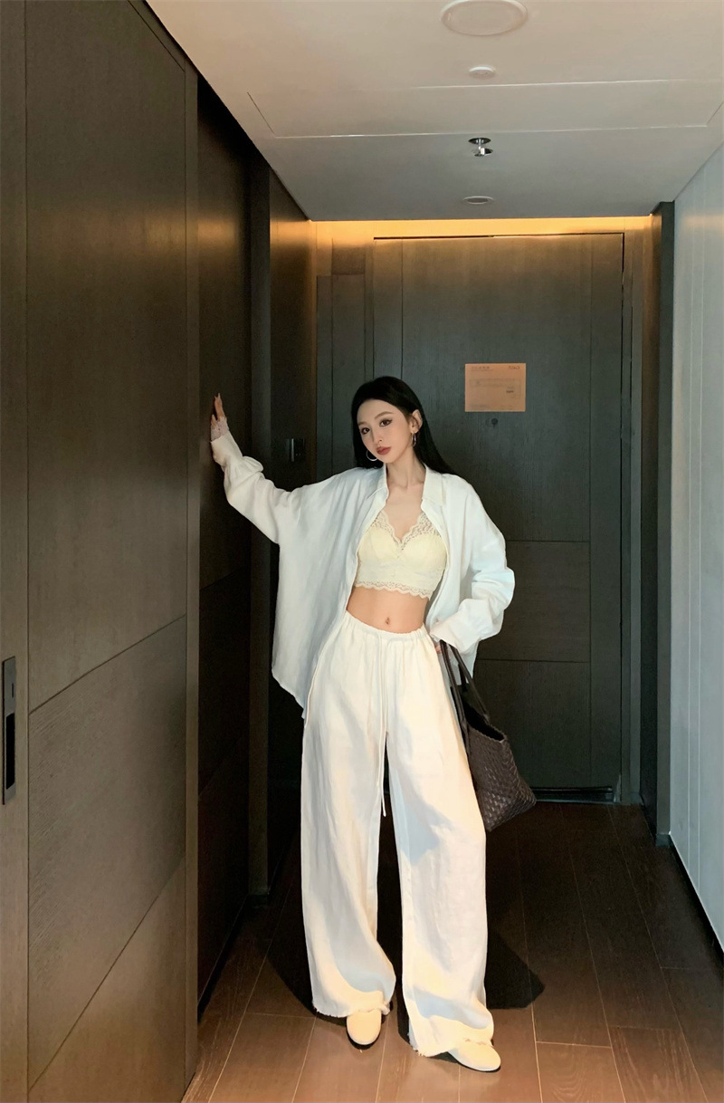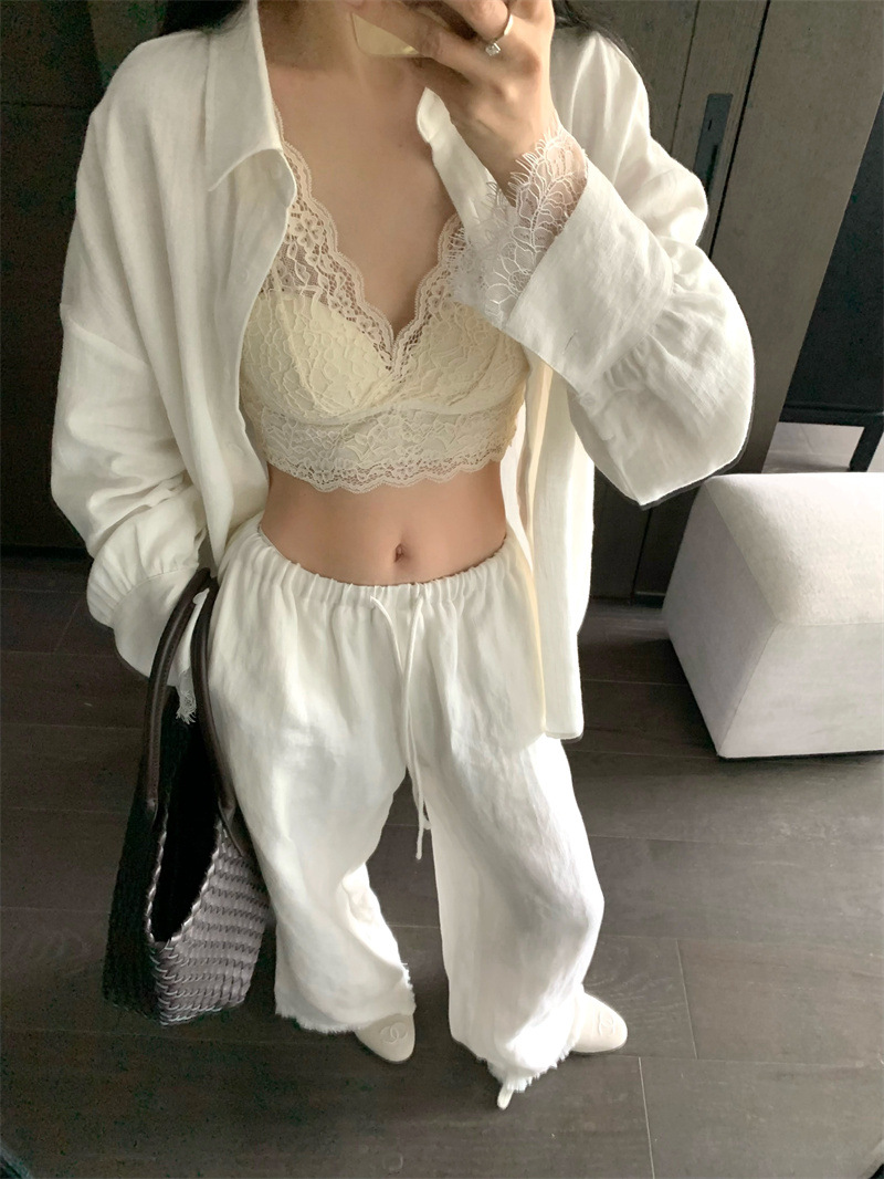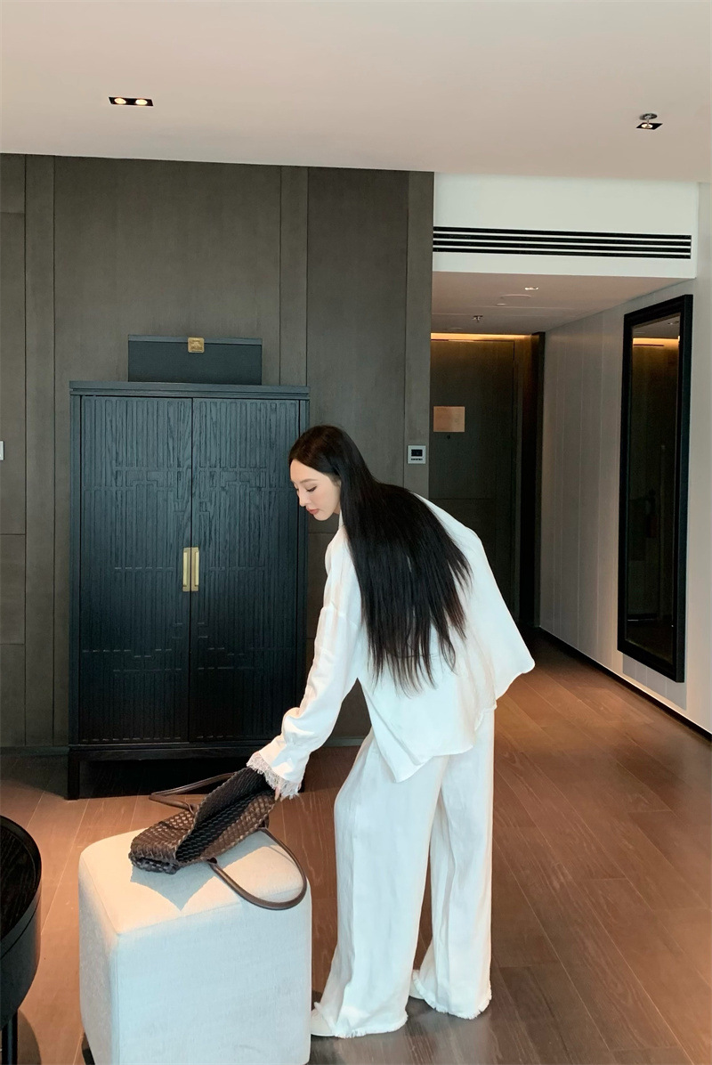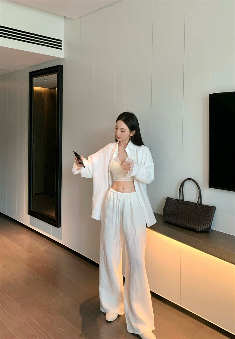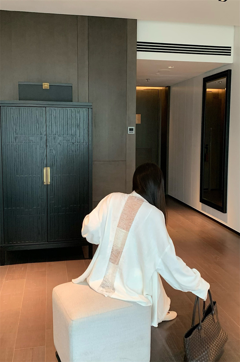 의류 세트 여성용 우아한 프렌치 레이스 바느질 긴팔 카디건 화이트 셔츠 탑 높은 허리 스커트 롱 스커트스토어 가기