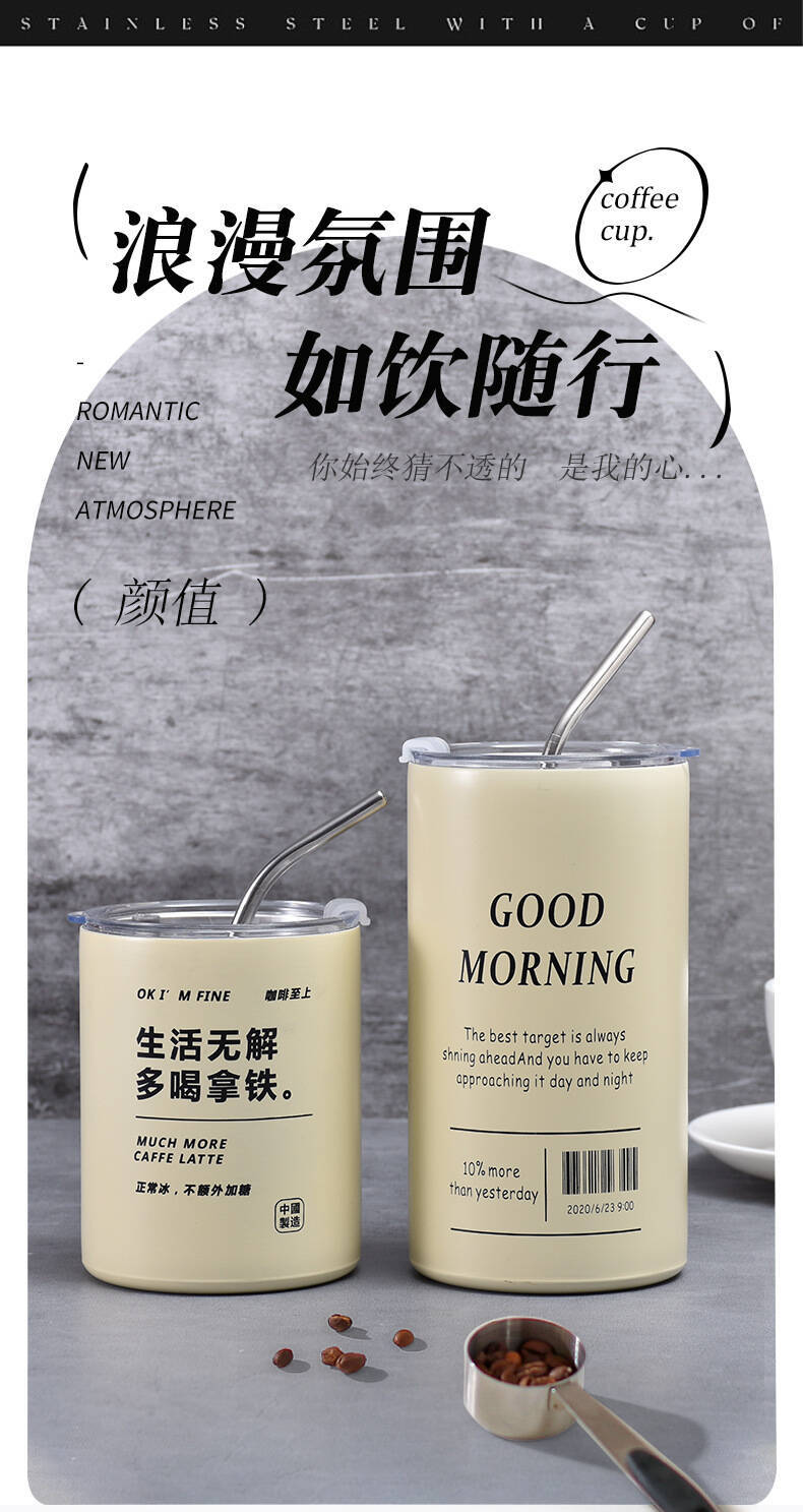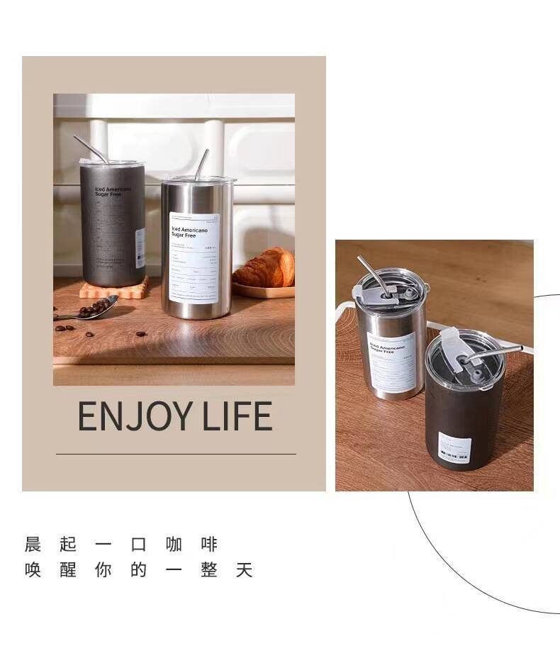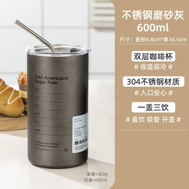 대외 무역 보온 및 냉동 아이스 컵 간단한 사무실 자동차 밀짚 컵 304 스테인레스 스틸 아이스 아메리칸 커피 컵스토어 가기