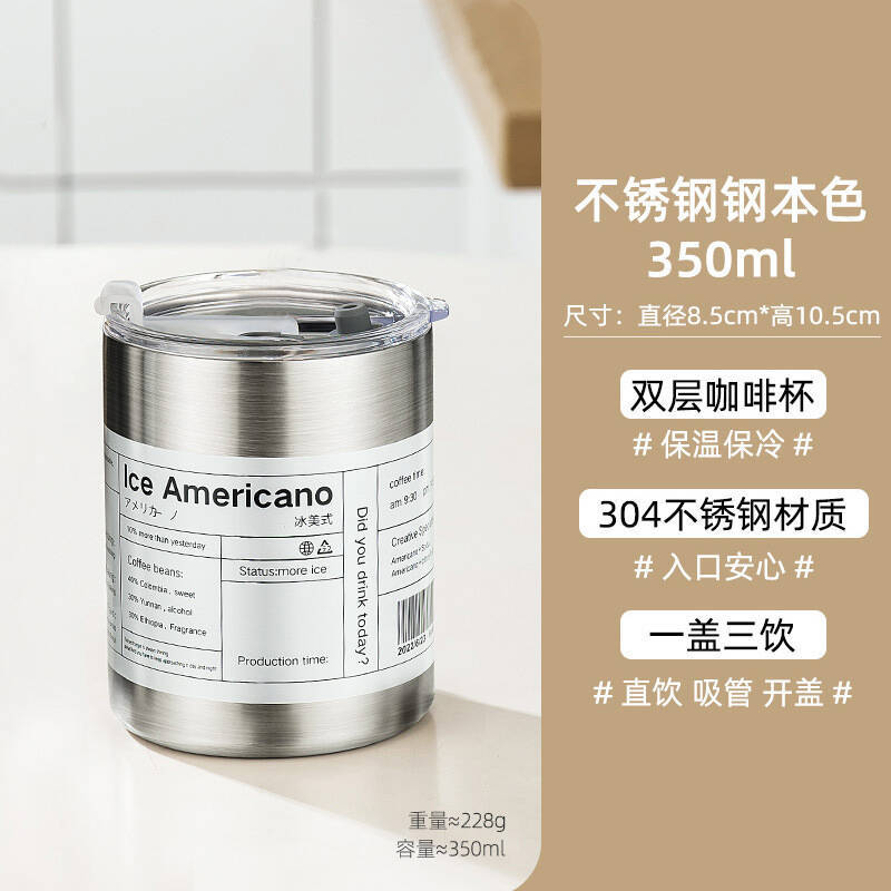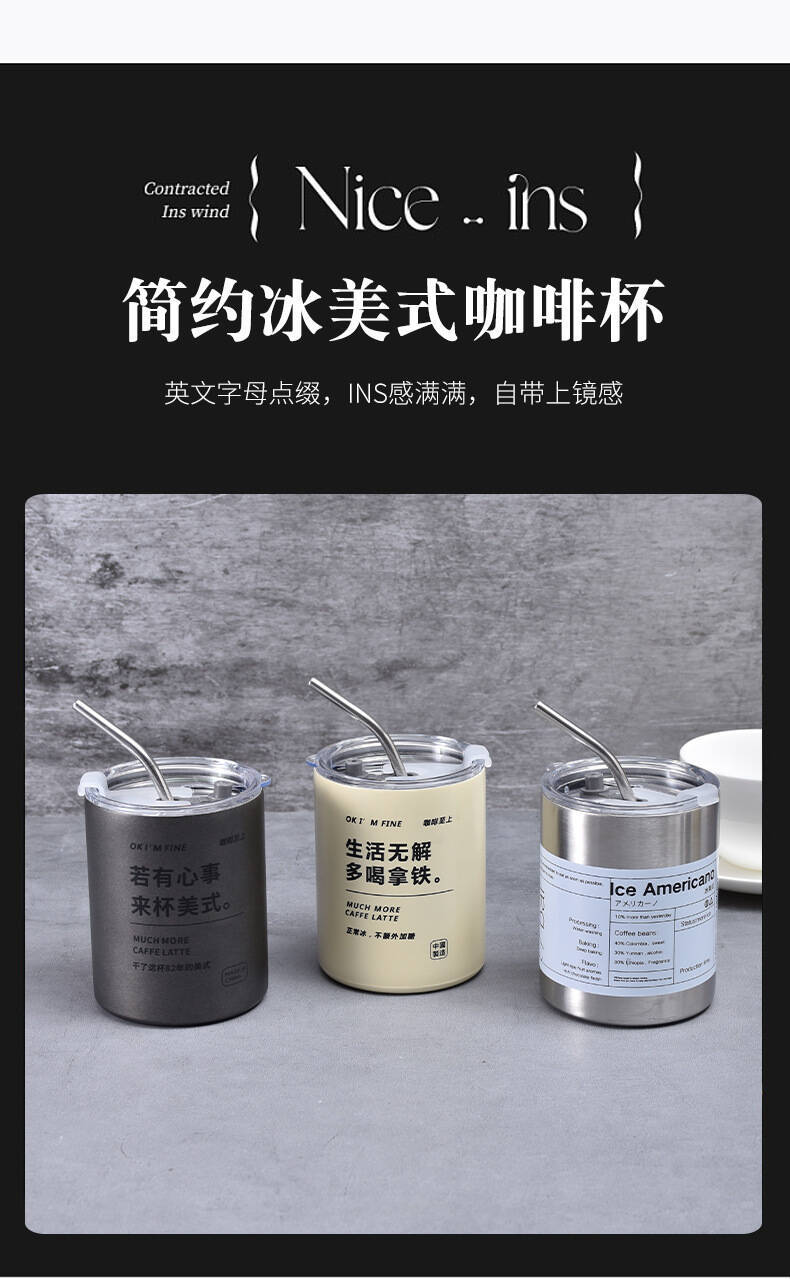 대외 무역 보온 및 냉동 아이스 컵 간단한 사무실 자동차 밀짚 컵 304 스테인레스 스틸 아이스 아메리칸 커피 컵