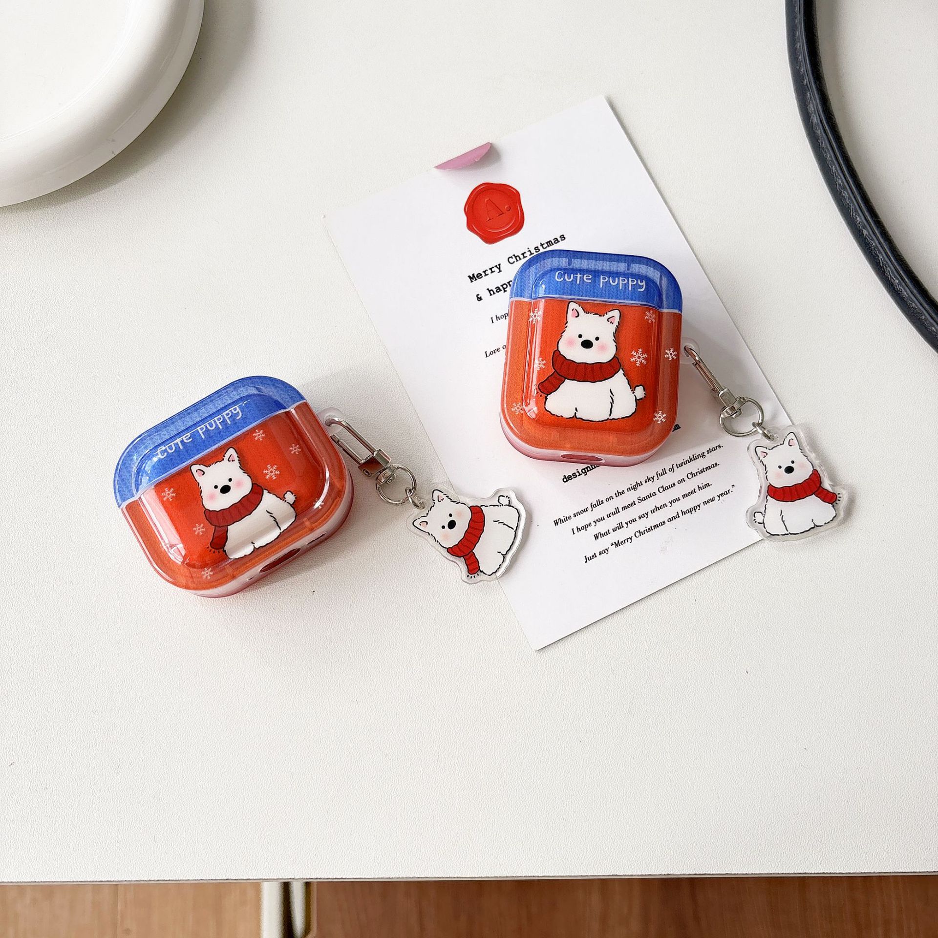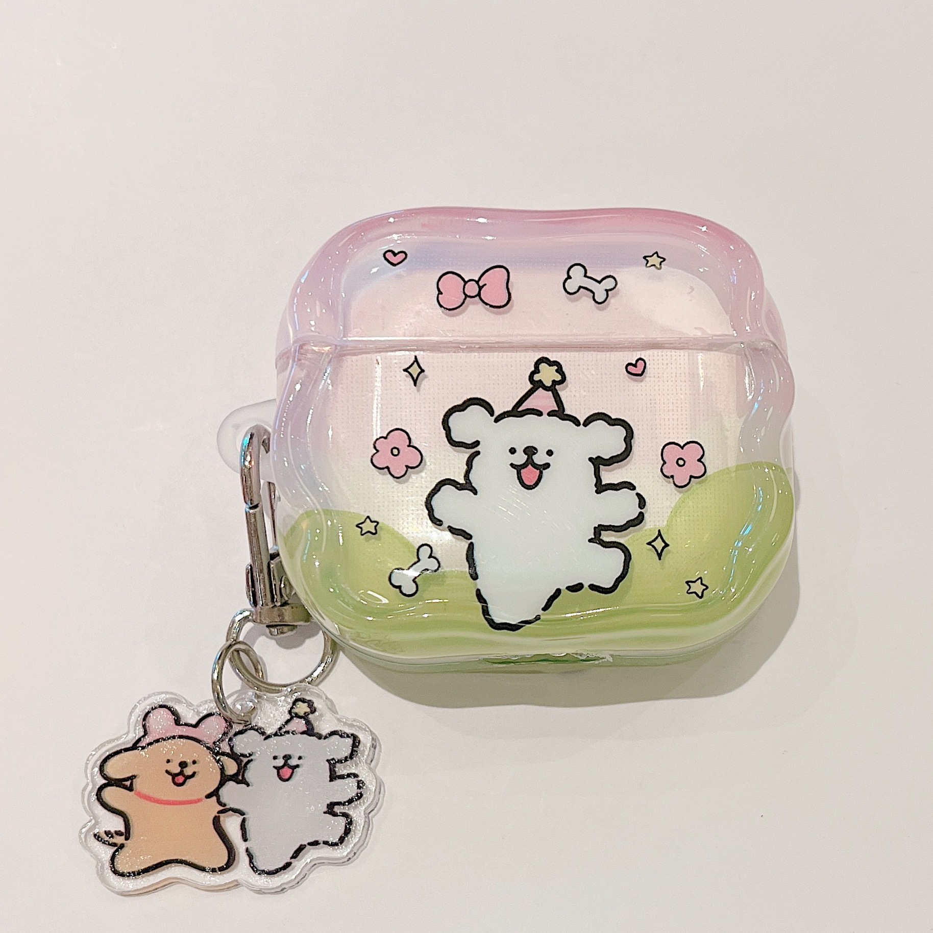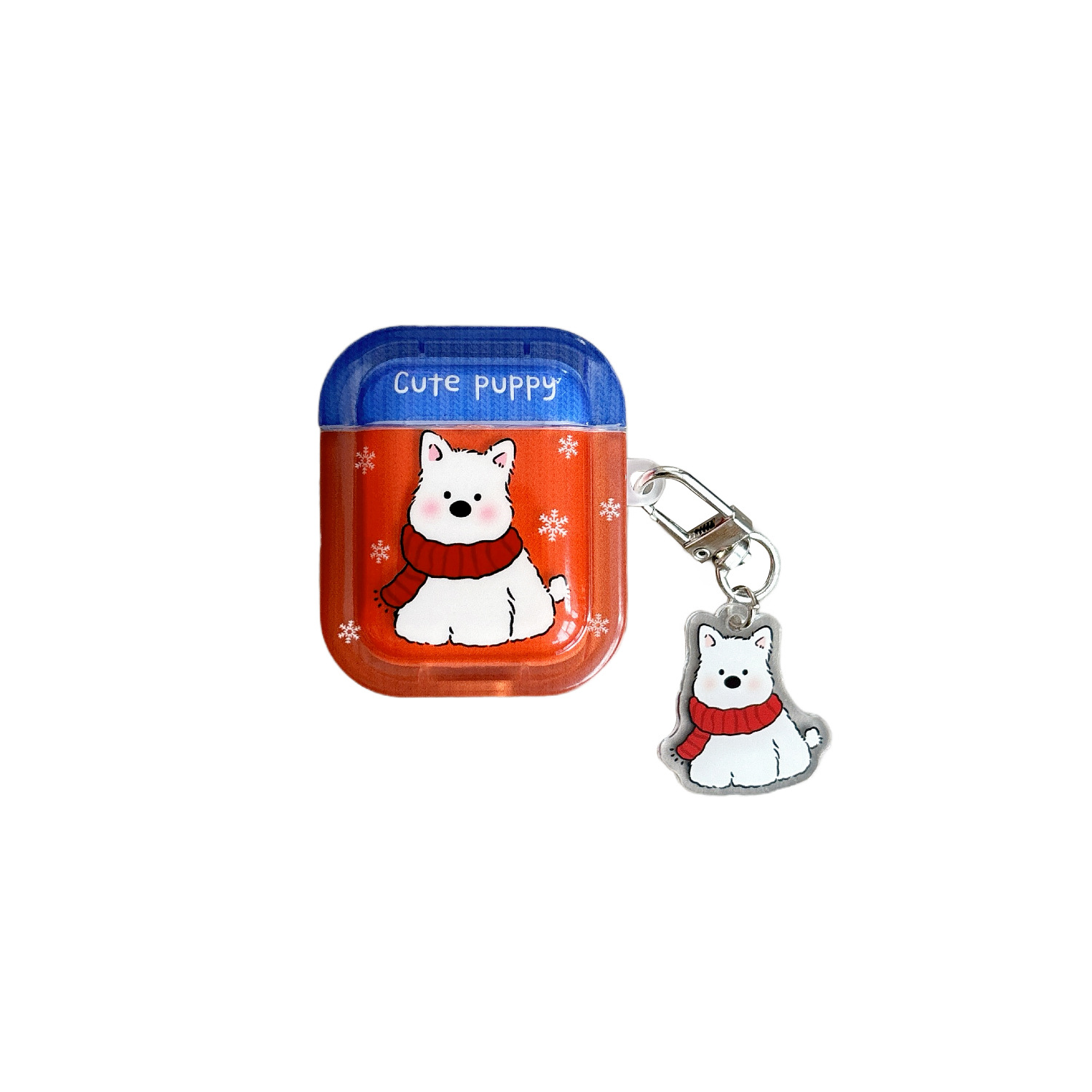 • 정사각 소프트 케이스 + 키링 - 화이트 강아지
