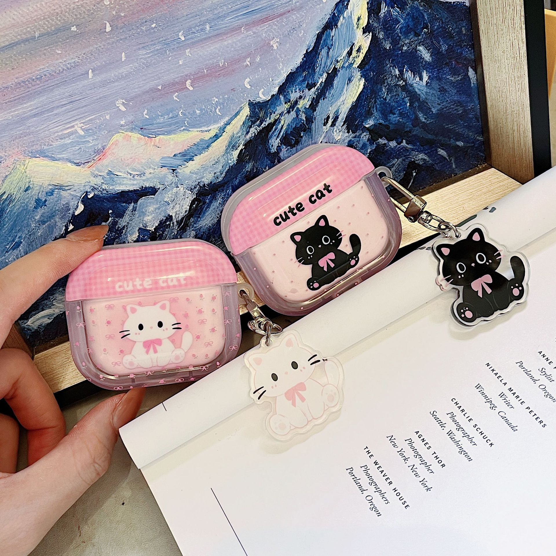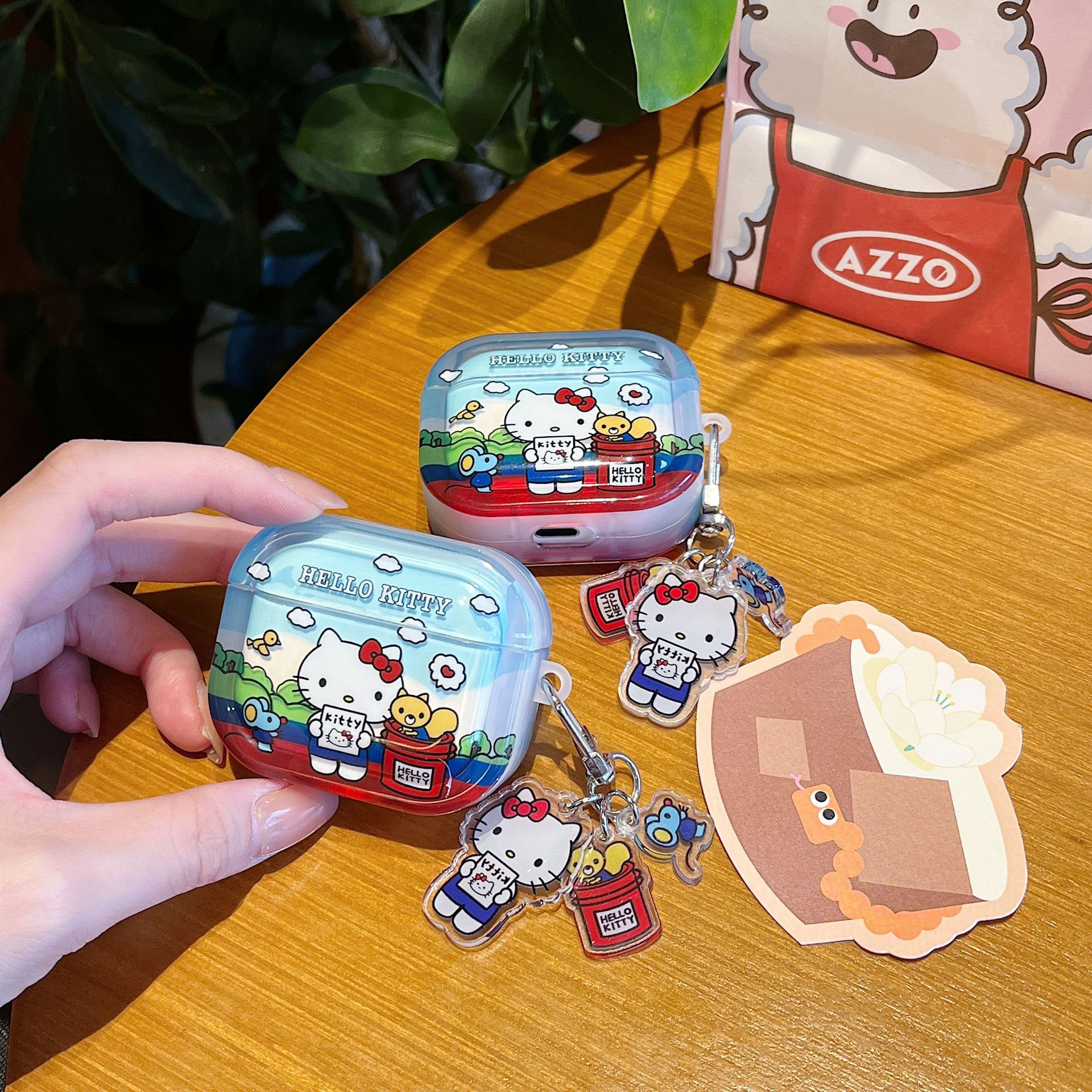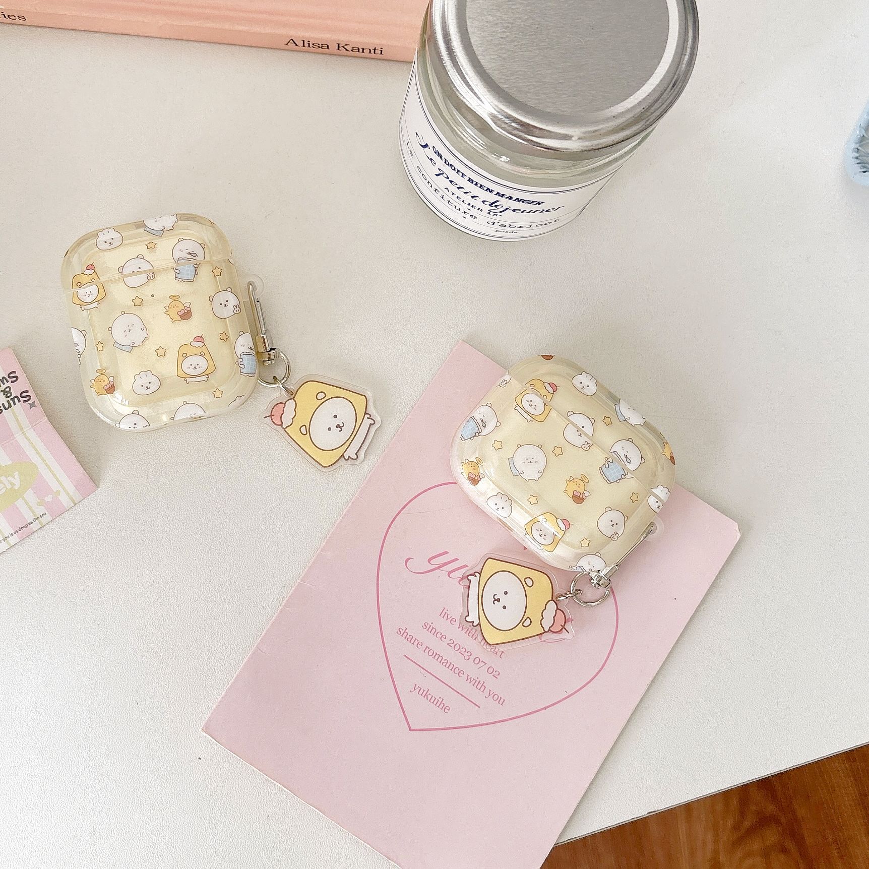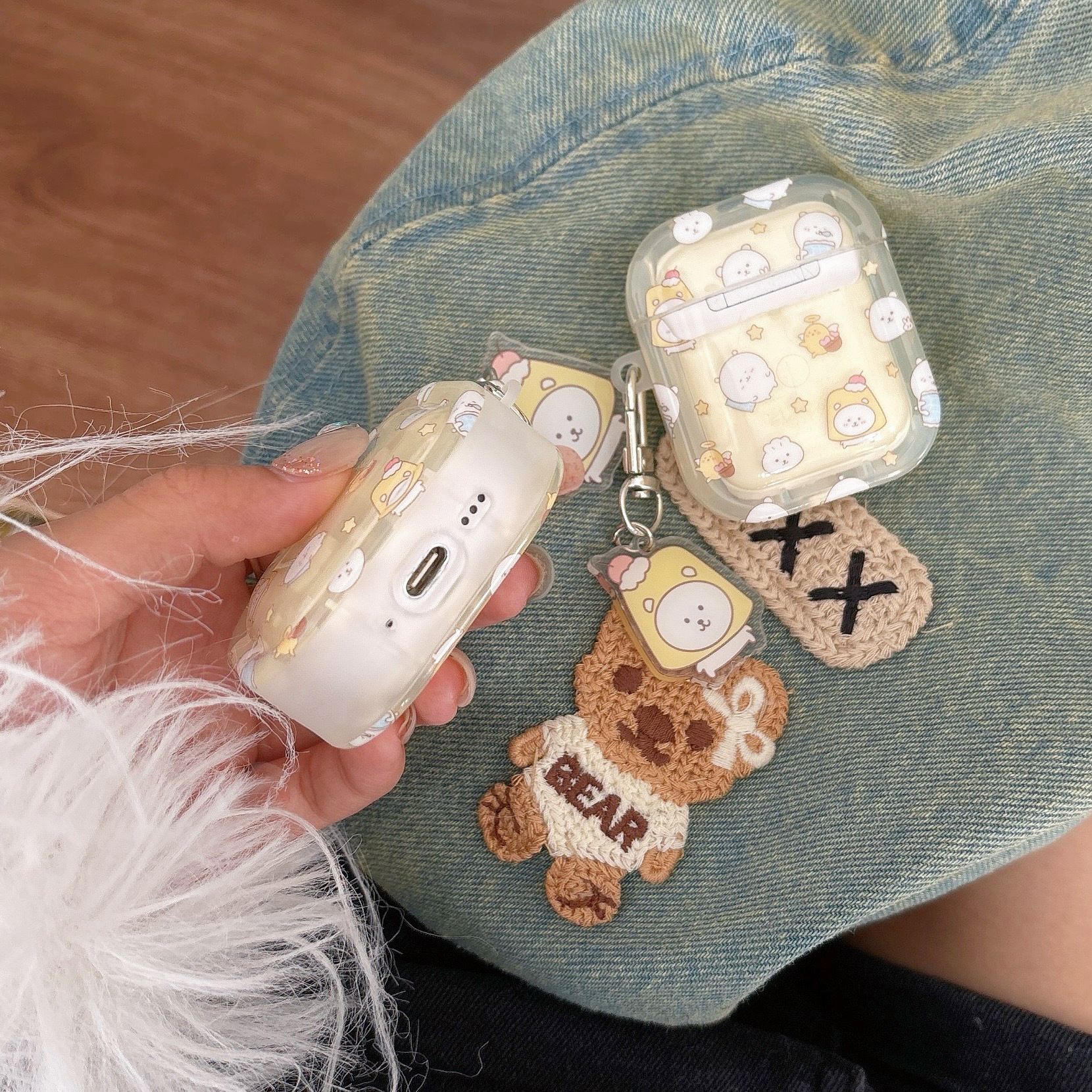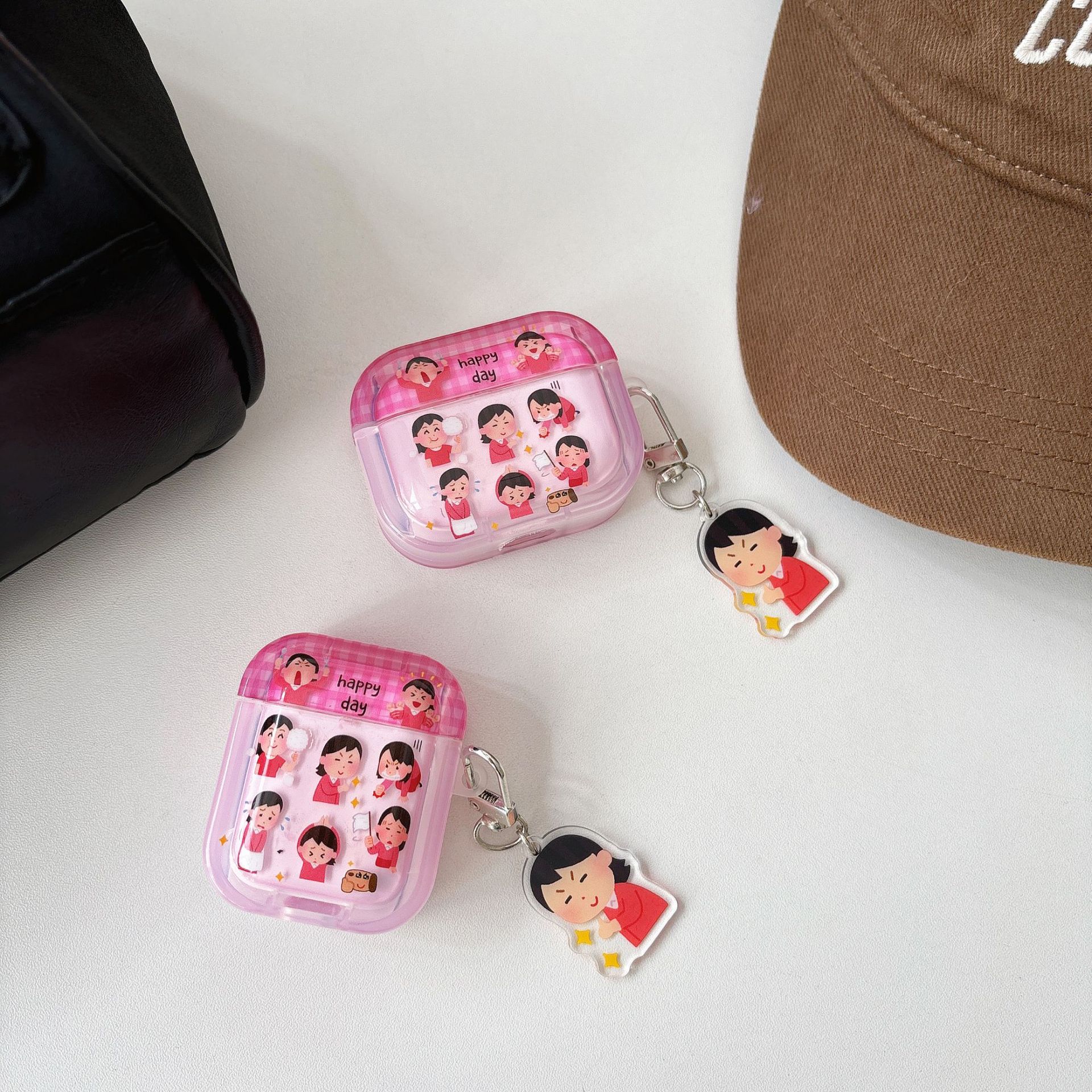에어팟 4 이어폰 케이스 만화 사각형 케이스 애플 1/2세대 프로3 무선 블루투스 보호 케이스 펜던트