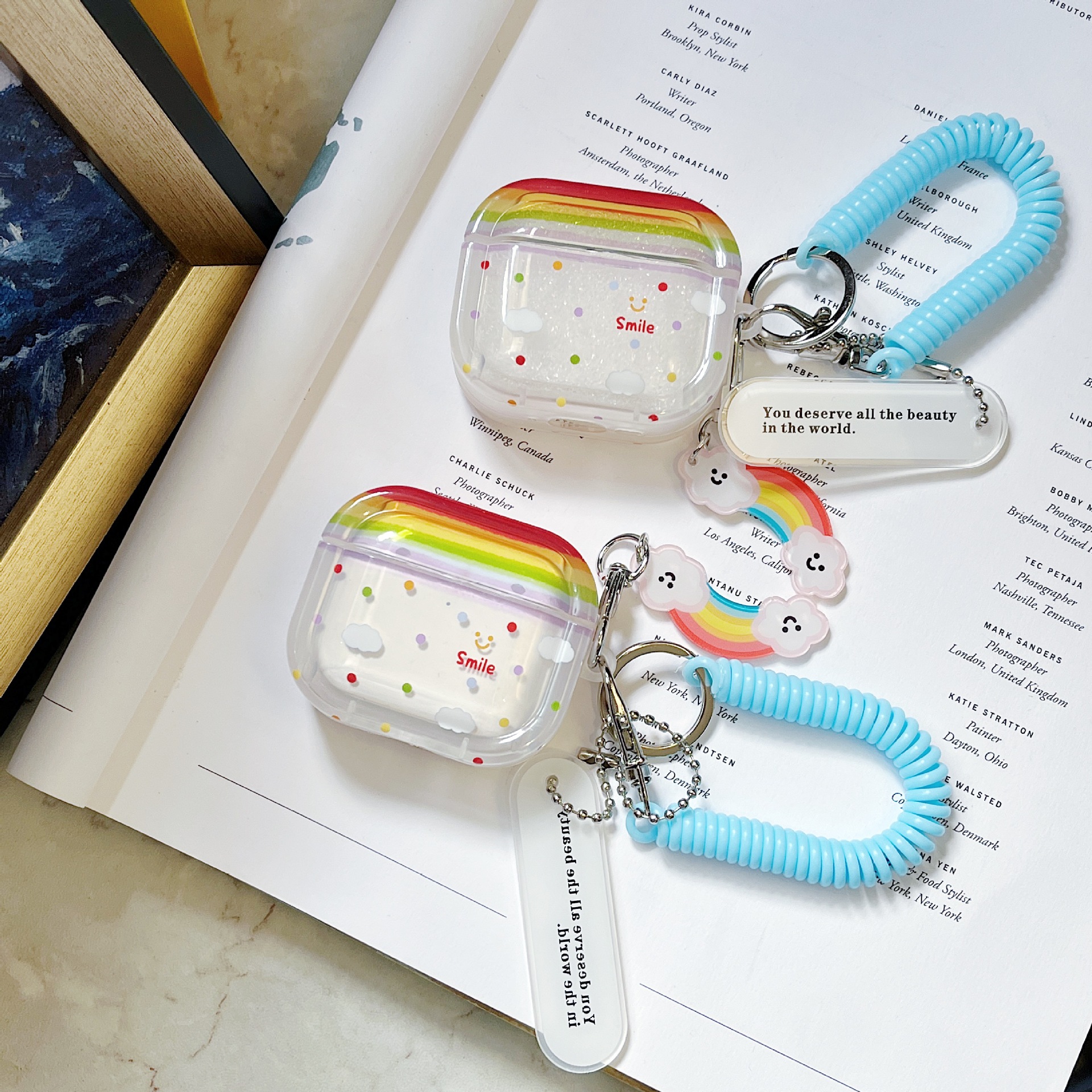 • 사각 소프트쉘 + 펜던트 - 무지개 물방울 웃는 얼굴