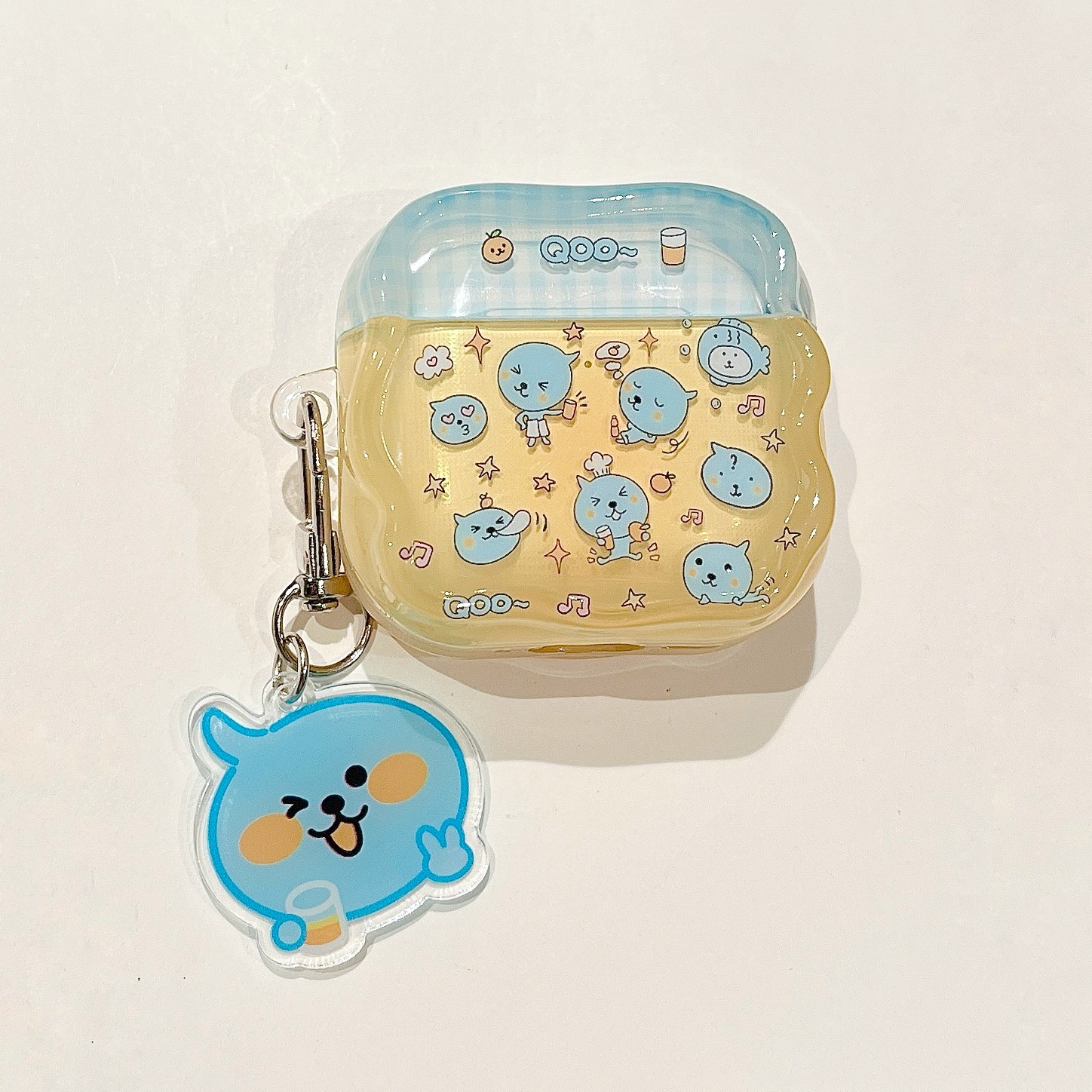 • 정사각형 소프트 케이스 + 키링 - 노란색 바탕 파란색 동물