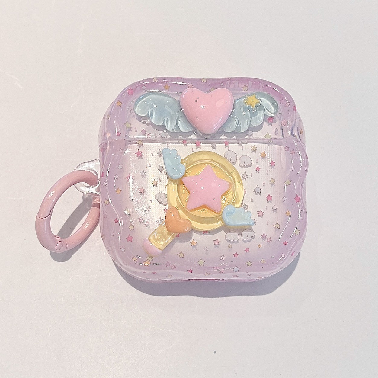 • 정사각 소프트 케이스 + 키링 - 추상적인 핑크 별
