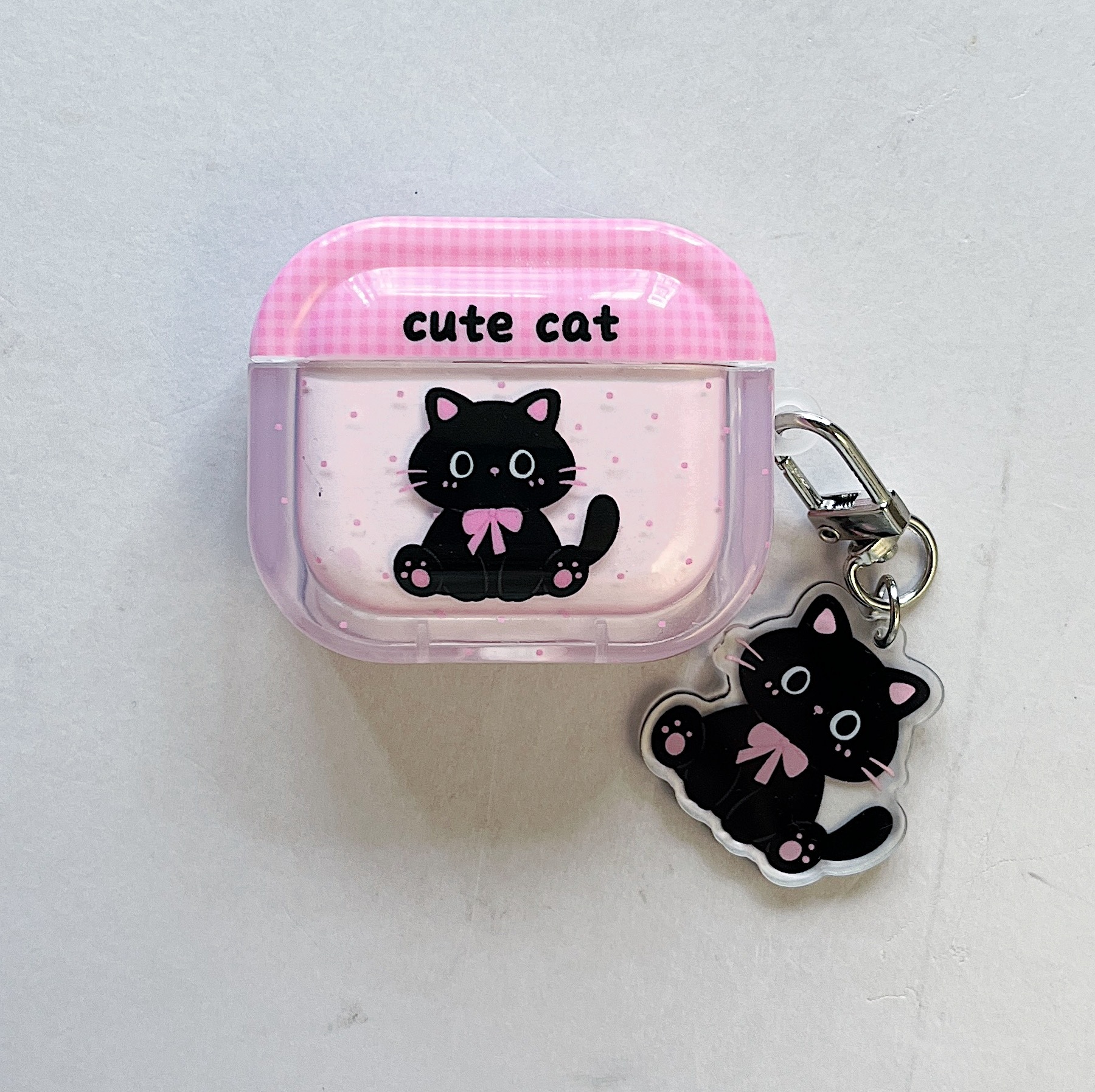 • 사각소프트쉘+펜던트-핑크 체크무늬 검은고양이