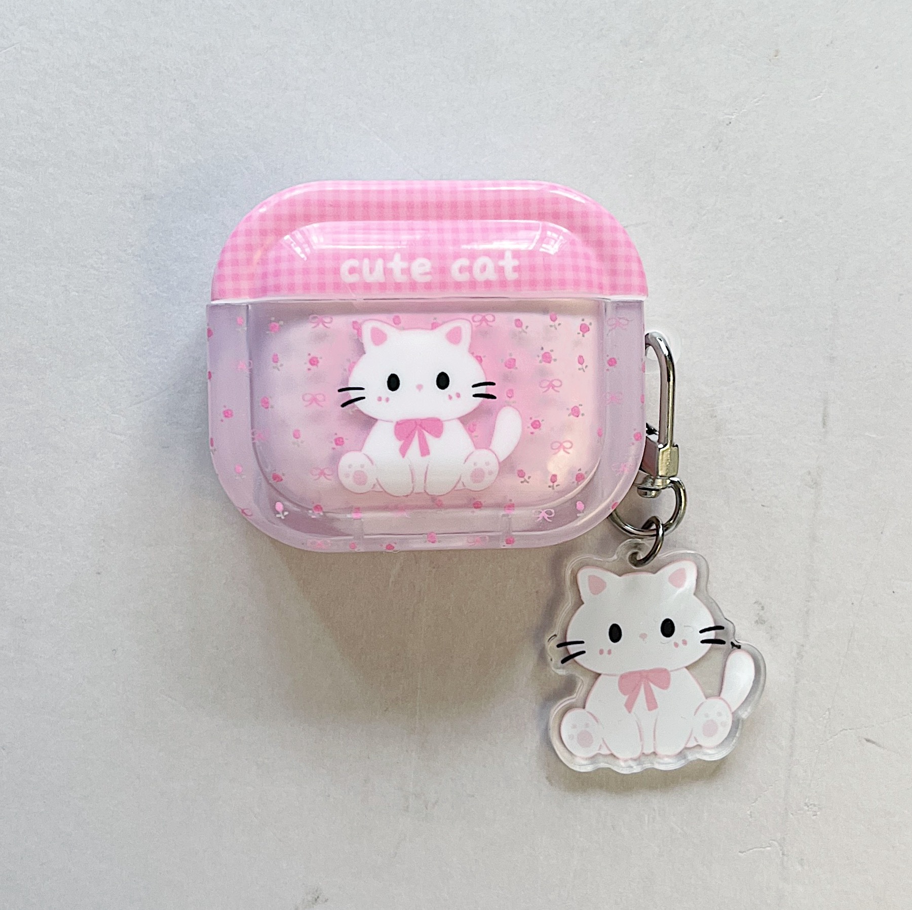 • 사각소프트쉘+펜던트-핑크 체크무늬 화이트캣