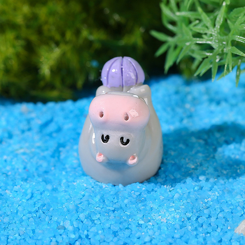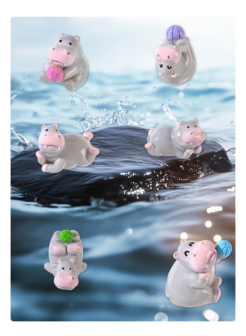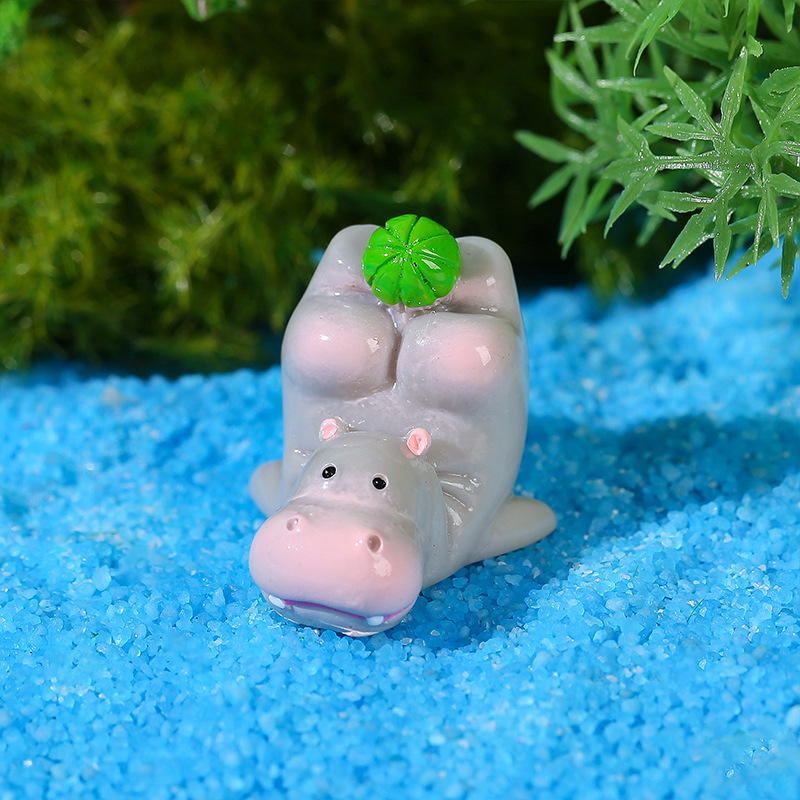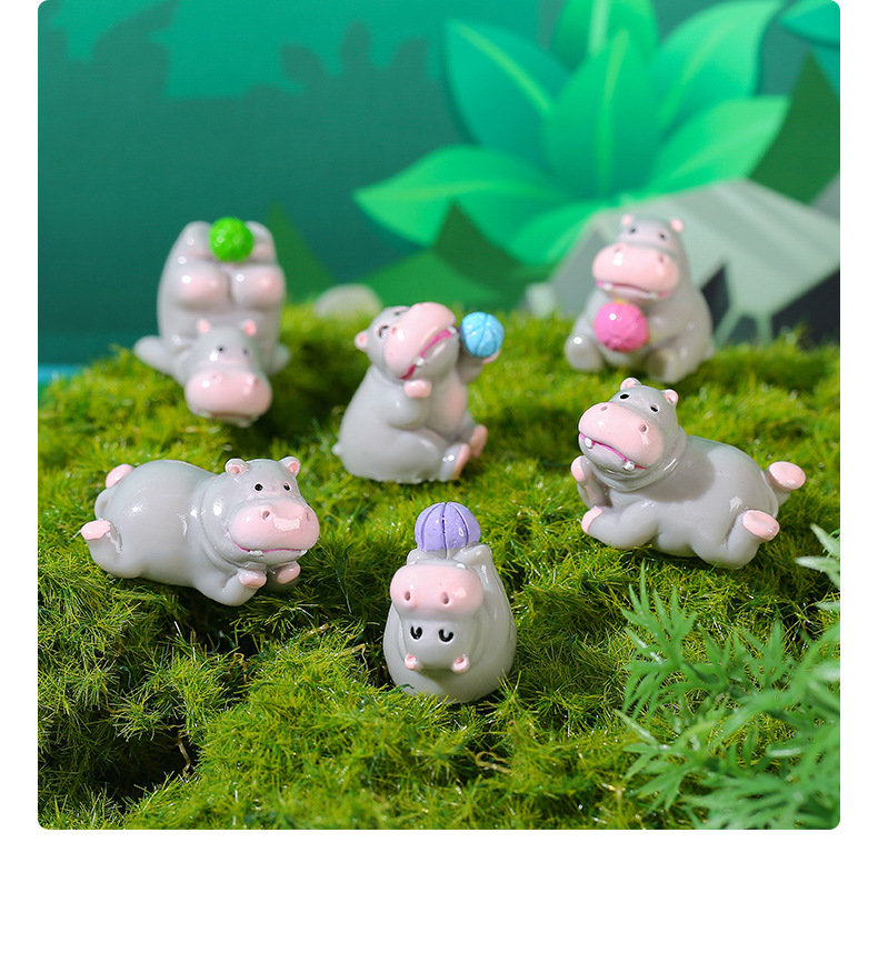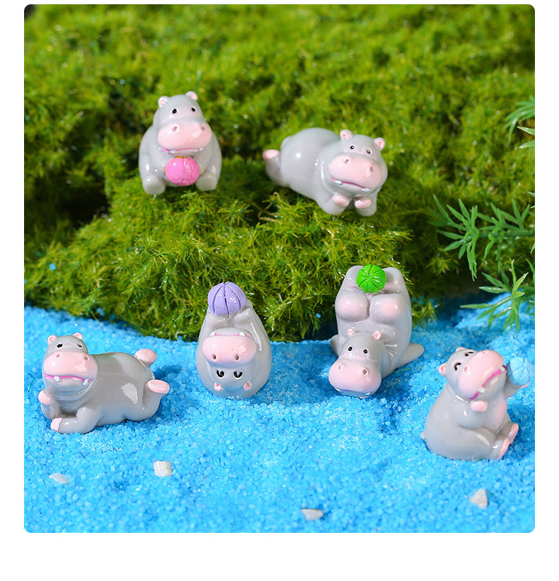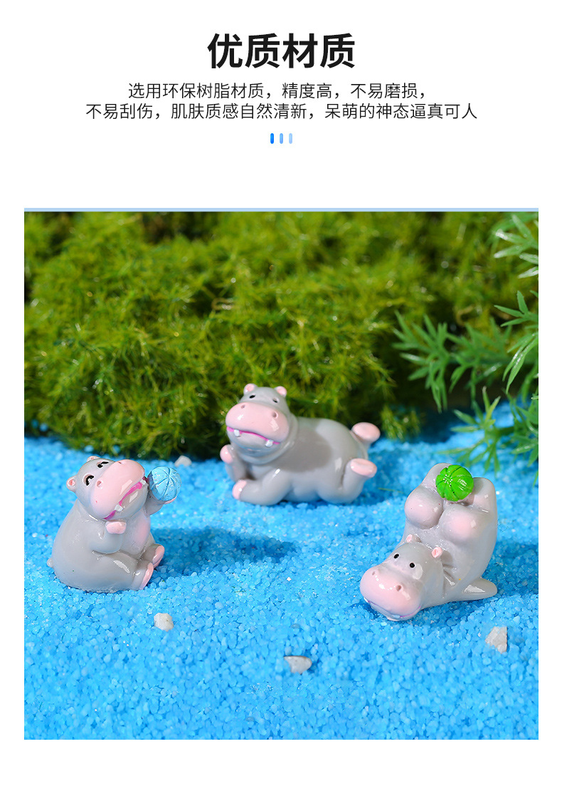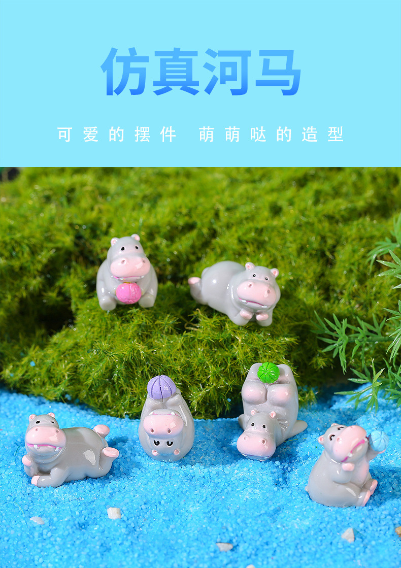 마이크로 풍경 장식품 만화 귀여운 쾌활한 수지 작은 장식품 하마 인형 DIY 장식 액세서리