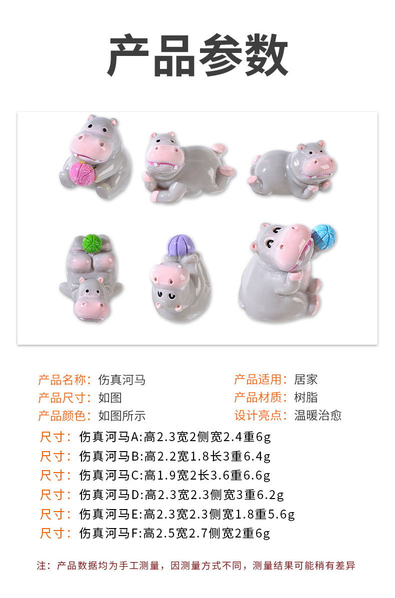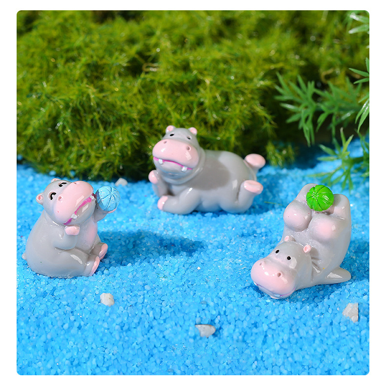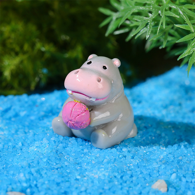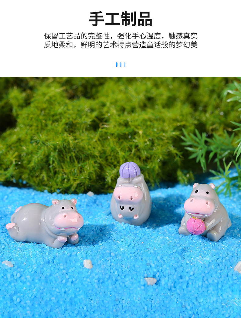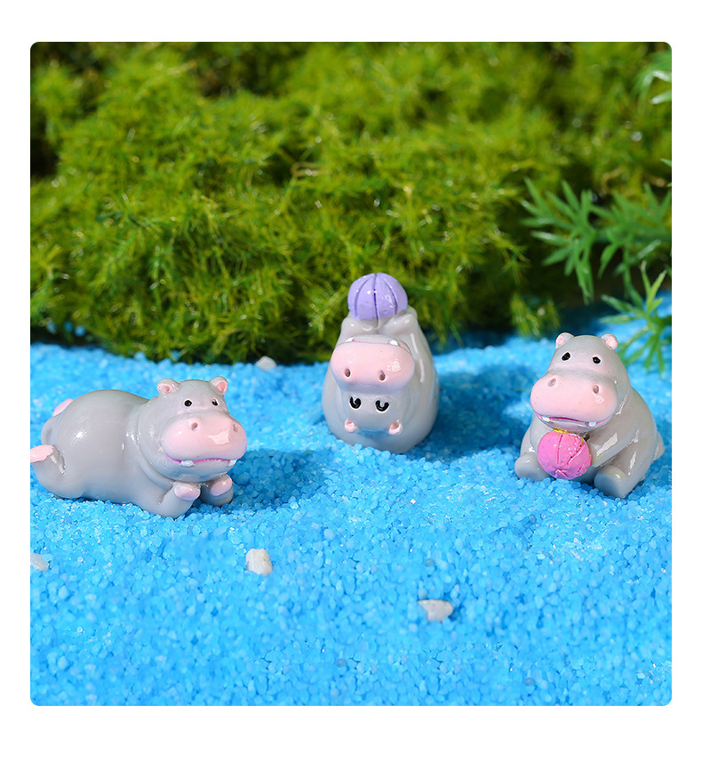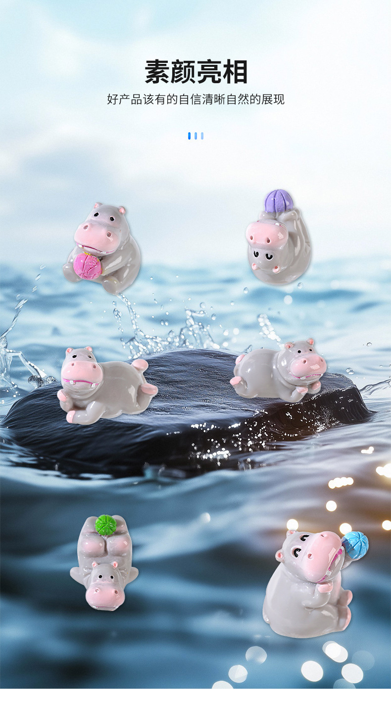 마이크로 풍경 장식품 만화 귀여운 쾌활한 수지 작은 장식품 하마 인형 DIY 장식 액세서리