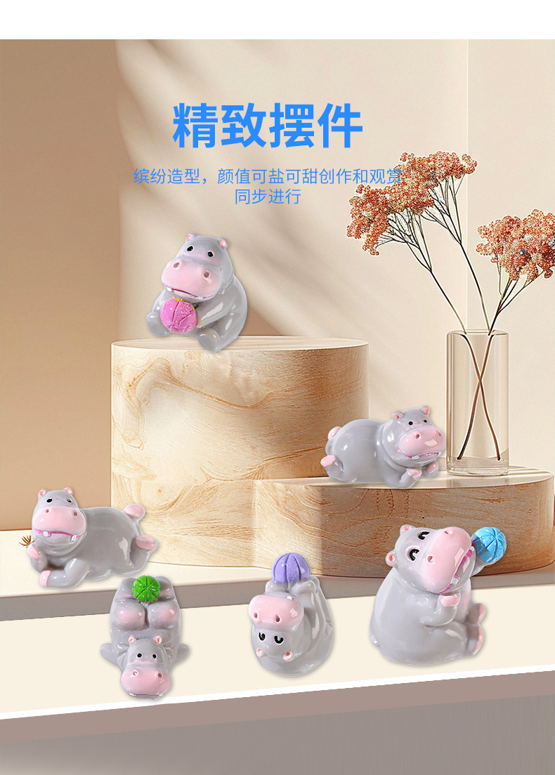 마이크로 풍경 장식품 만화 귀여운 쾌활한 수지 작은 장식품 하마 인형 DIY 장식 액세서리스토어 가기