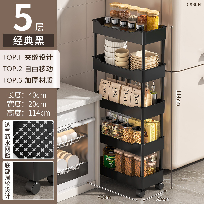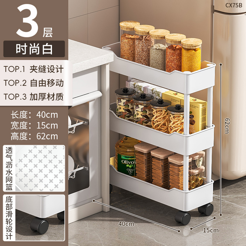 좁은 틈새 수납 선반, 다층 주방/욕실/화장실용 이동식 수납 트롤리, 테이블탑 수납, 좁은 공간용