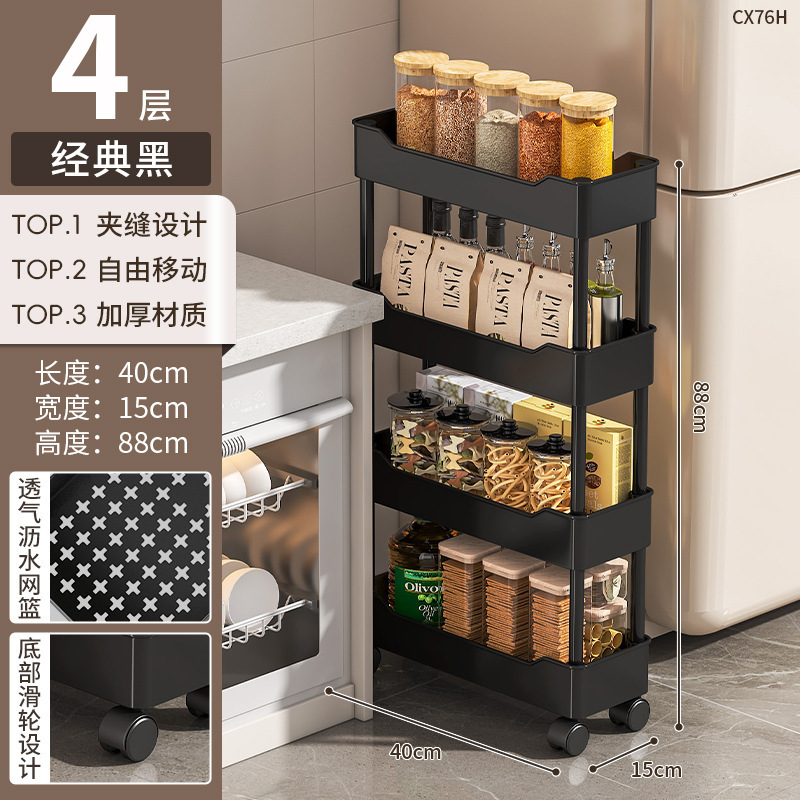 좁은 틈새 수납 선반, 다층 주방/욕실/화장실용 이동식 수납 트롤리, 테이블탑 수납, 좁은 공간용스토어 가기