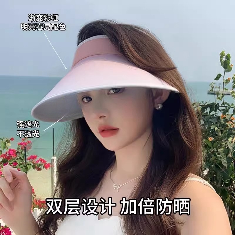 그라디언트 빈 탑 차양 모자 여성의 여름 태양 보호 UV 보호 큰 Cornered 얼굴을 가리는 태양 모자 올 매치스토어 가기