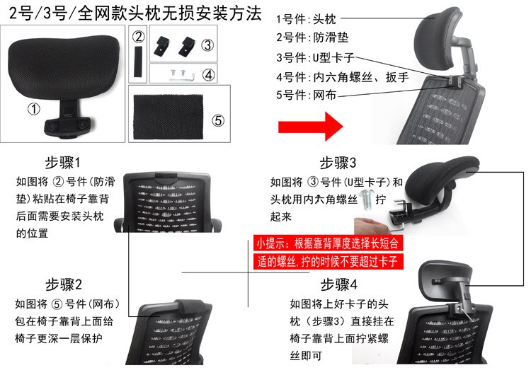 사무실 컴퓨터 의자, 헤드레스트, 헤드필, 베개, 펀칭 없음, 높이 조절 가능한 등받이, 허리 지지대 등받이를 간편하게 설치할 수 있습니다.