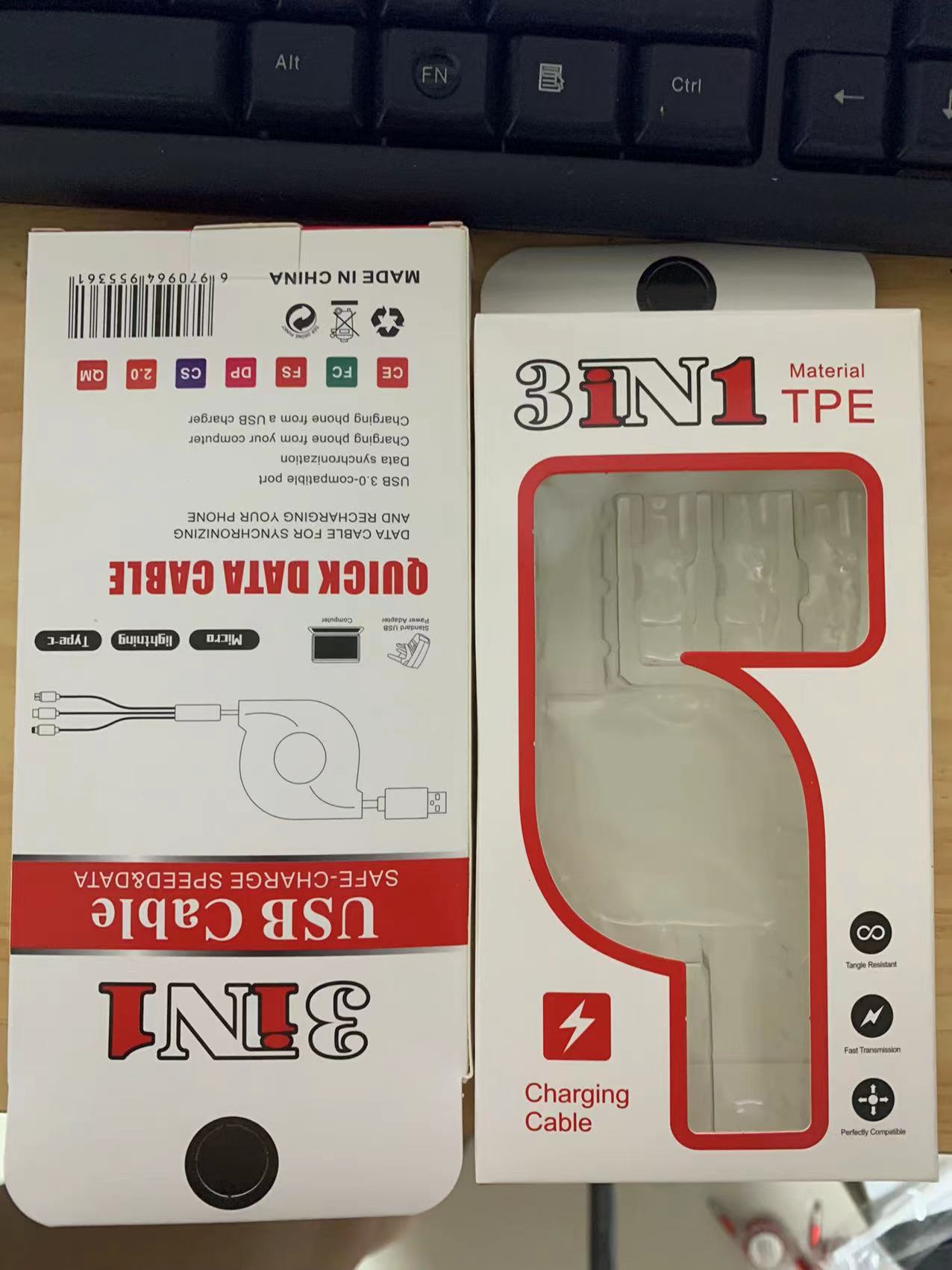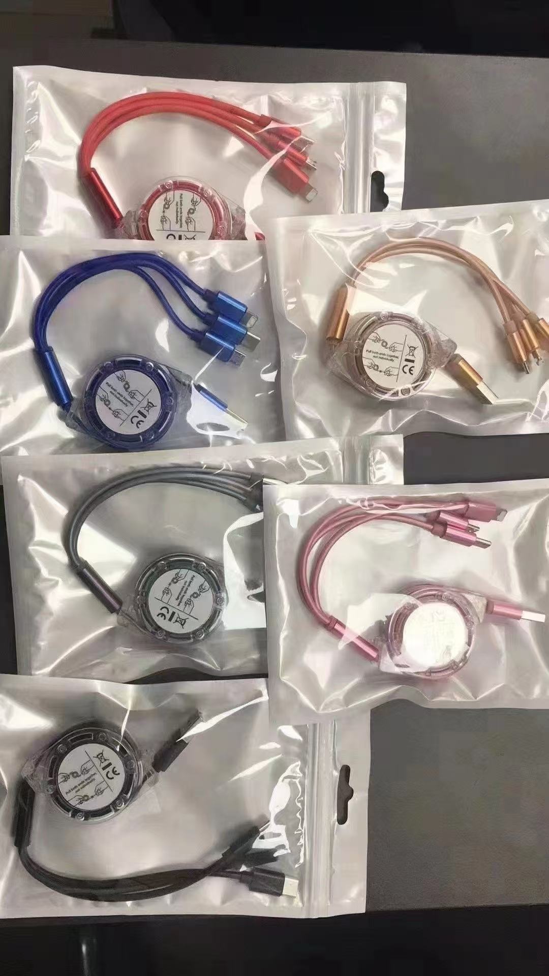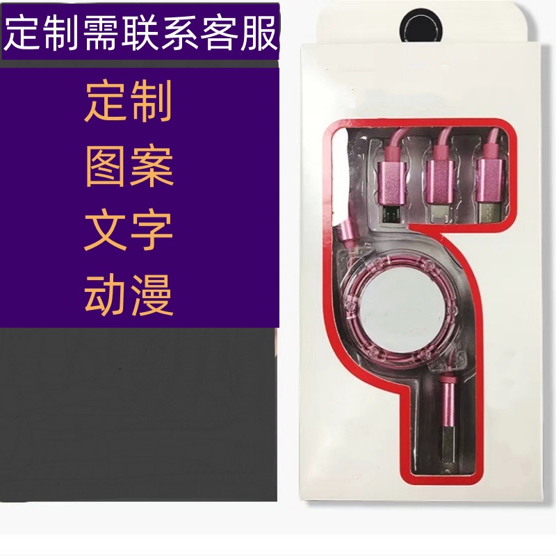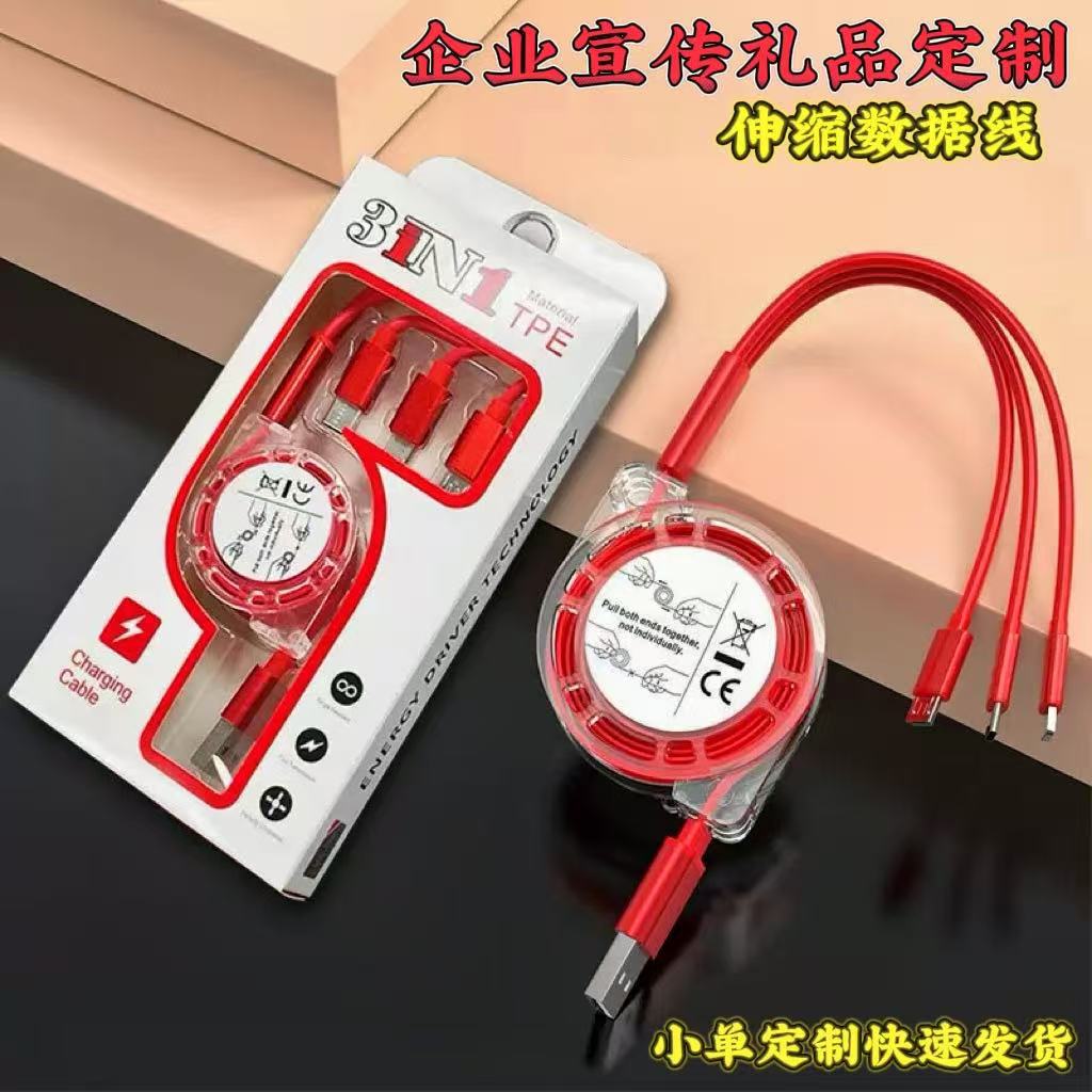 접이식 1-3 고속 충전 투명 쉘 데이터 케이블 유형-c 3-in-1 충전 케이블 회사 이벤트 선물 인쇄