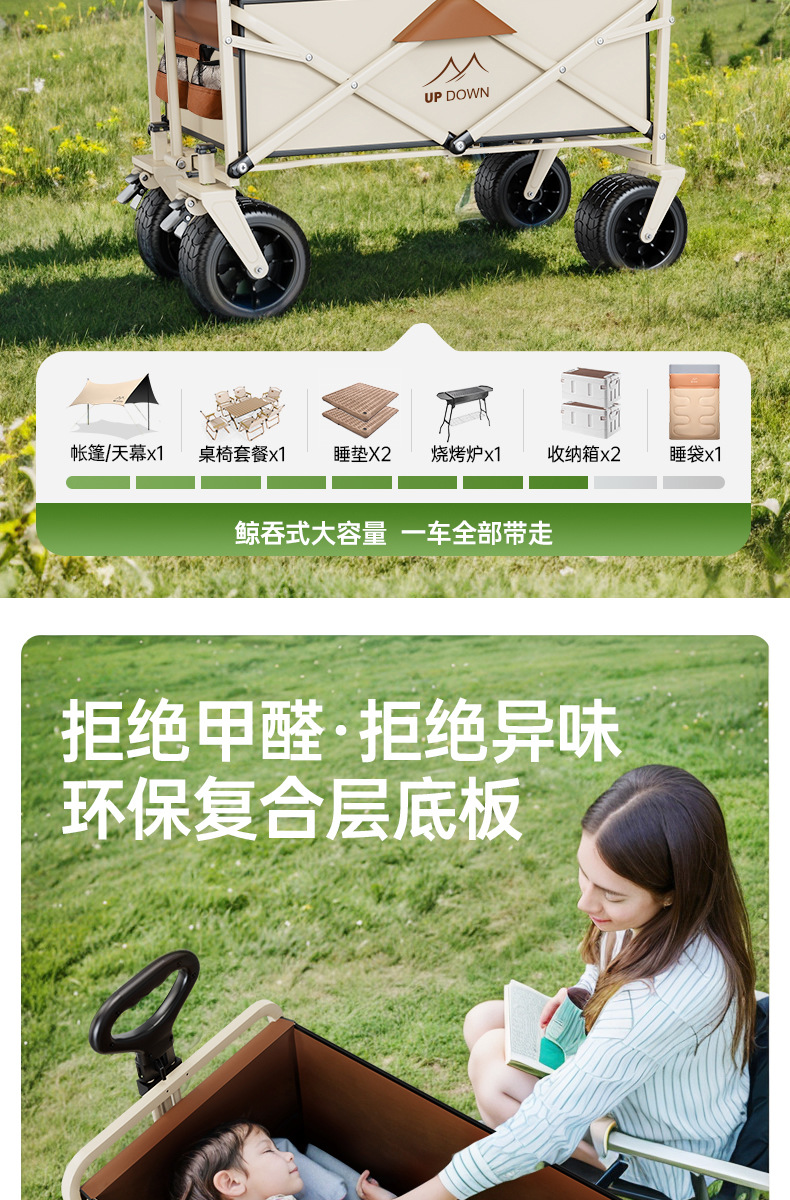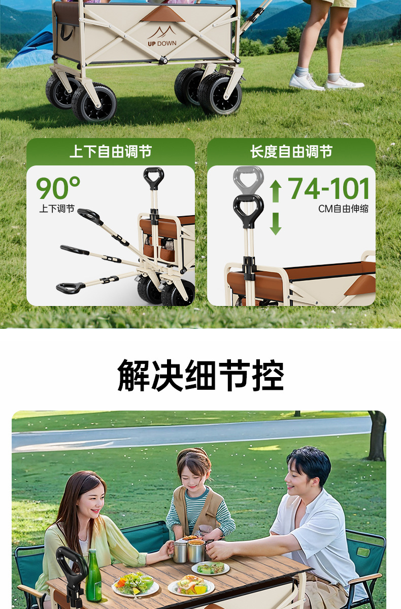 Updown 캠핑카 트롤리 야외 접이식 손으로 밀어서는 익스프레스 트롤리 캠핑 어린이 리클라이닝 소형 트레일러 피크닉 트롤리