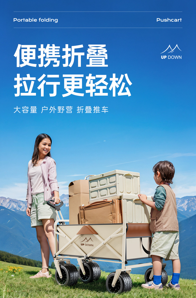 Updown 캠핑카 트롤리 야외 접이식 손으로 밀어서는 익스프레스 트롤리 캠핑 어린이 리클라이닝 소형 트레일러 피크닉 트롤리스토어 가기
