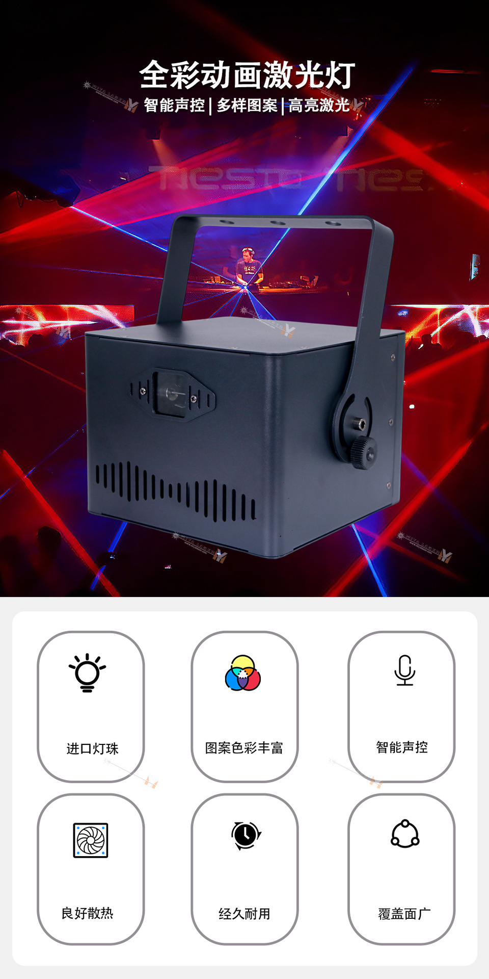 새로운 풀 컬러 애니메이션 레이저 빛 사운드 제어 레이저 프로젝션 무대 빛 KTV 디스코 바 웨딩 빔 빛