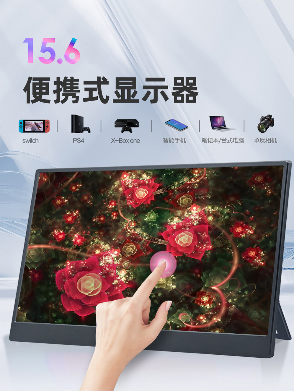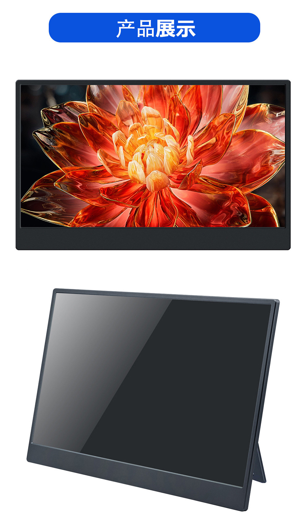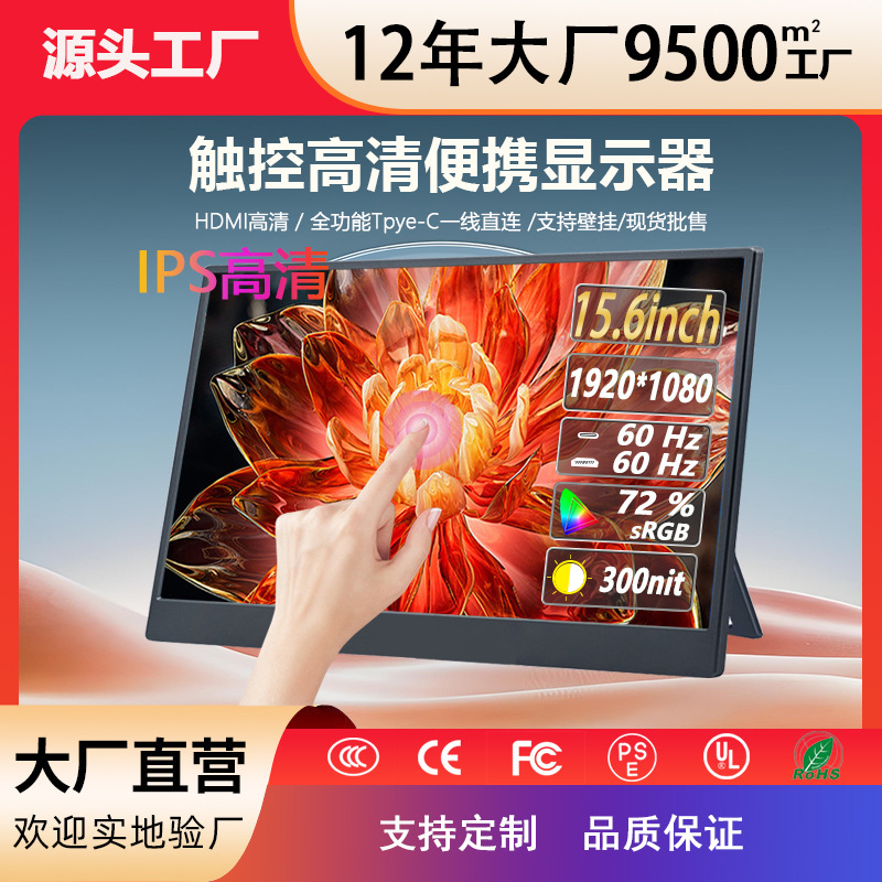 15.6inch 터치형 휴대용 모니터 IPS 디스플레이는 휴대폰, 컴퓨터, 노트북의 터치스크린 확장 기능을 지원합니다.