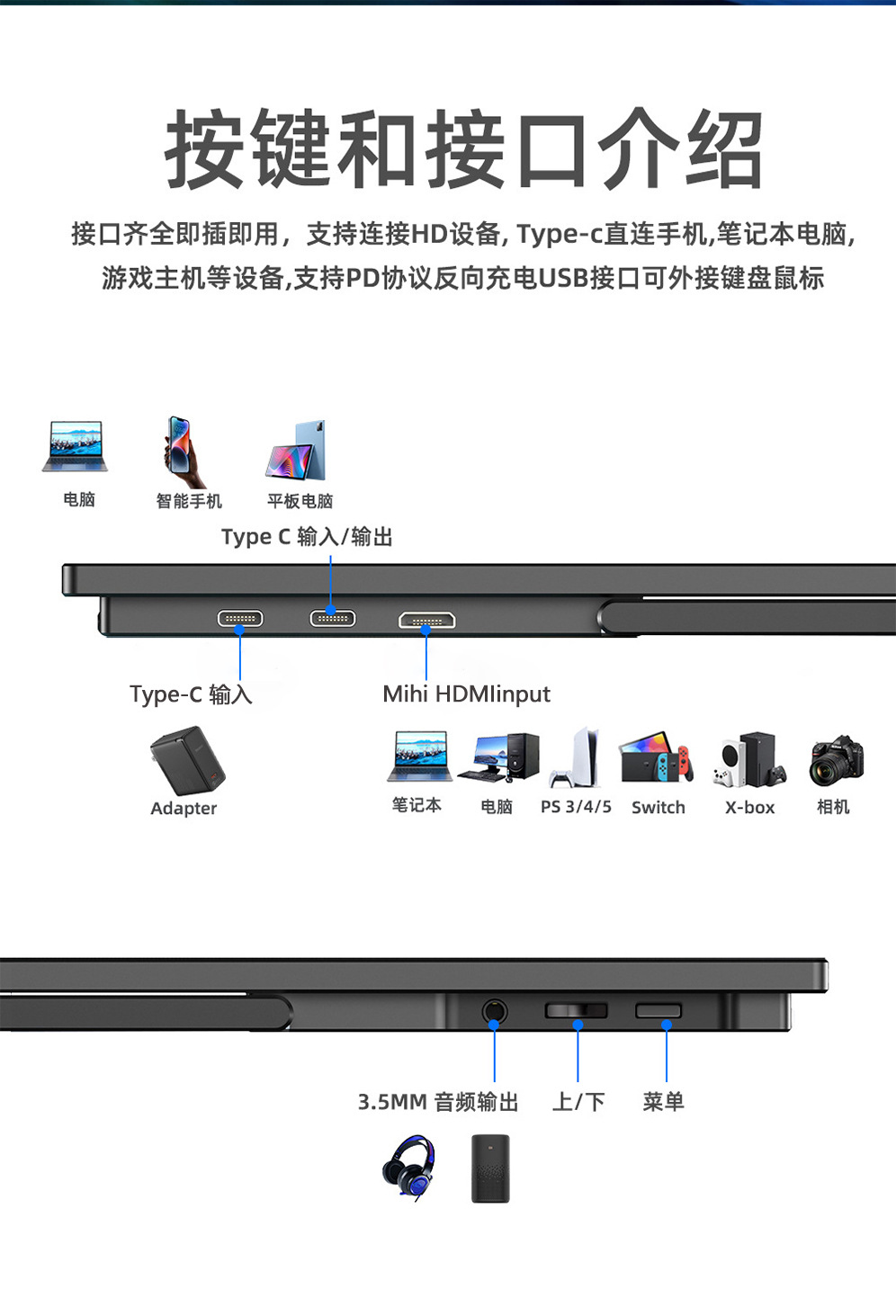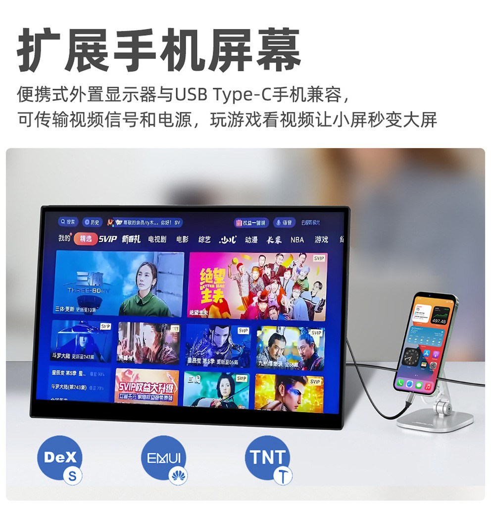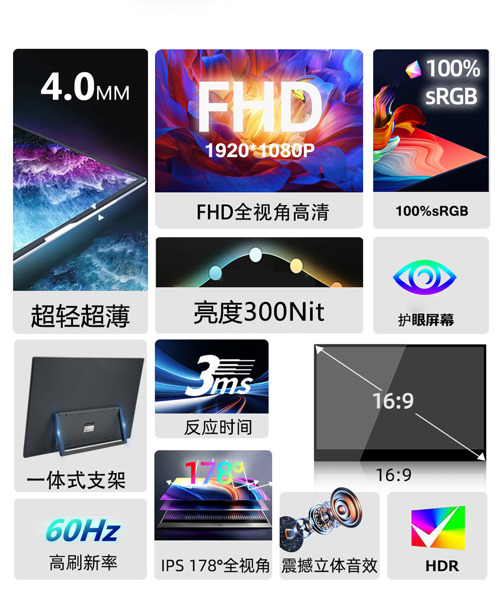 15.6inch 터치형 휴대용 모니터 IPS 디스플레이는 휴대폰, 컴퓨터, 노트북의 터치스크린 확장 기능을 지원합니다.