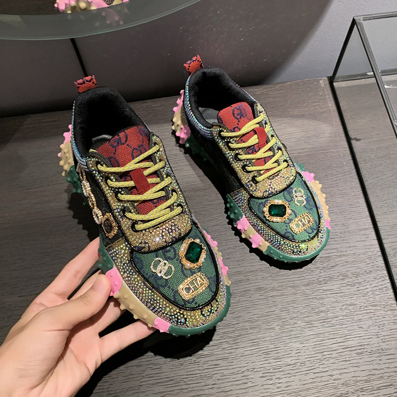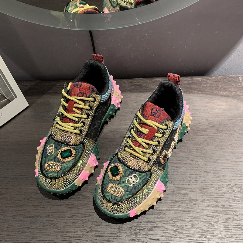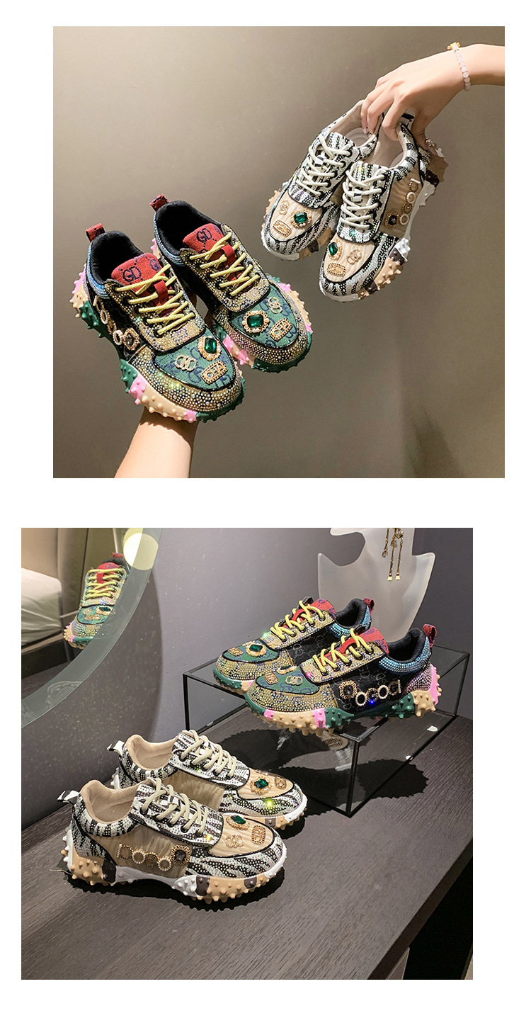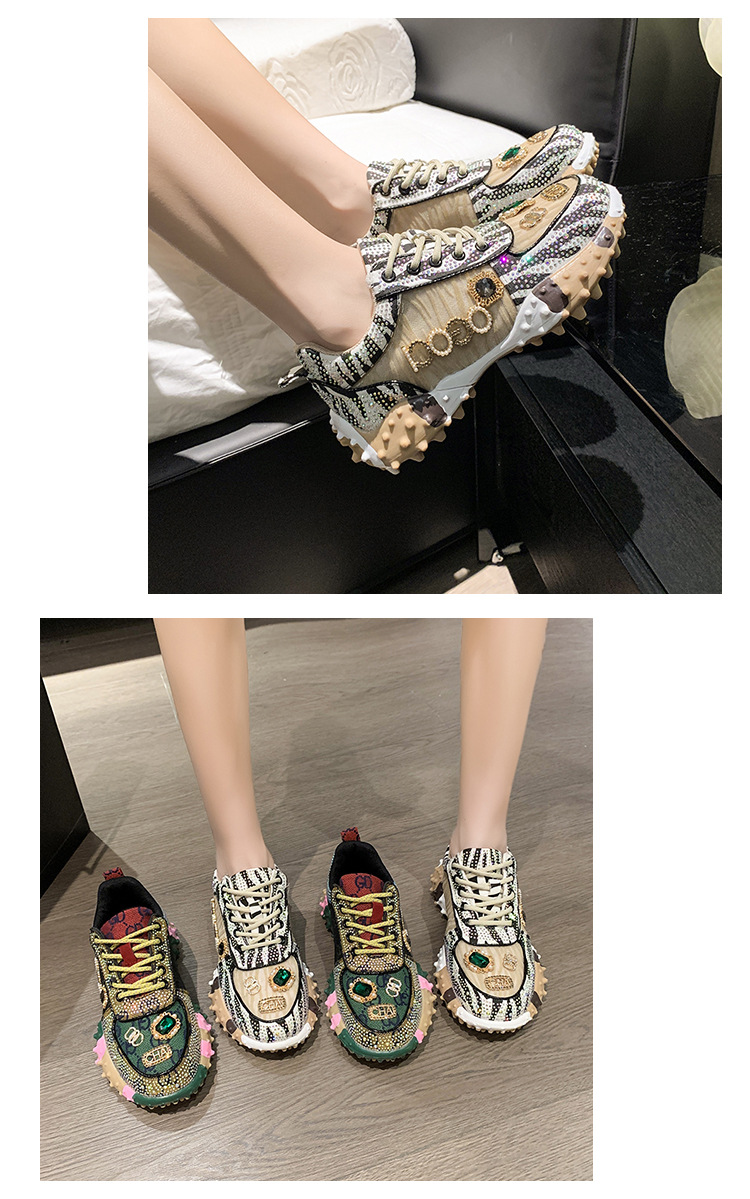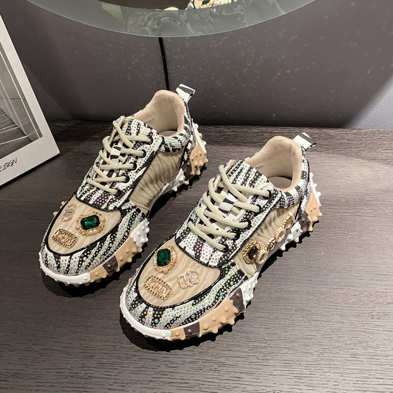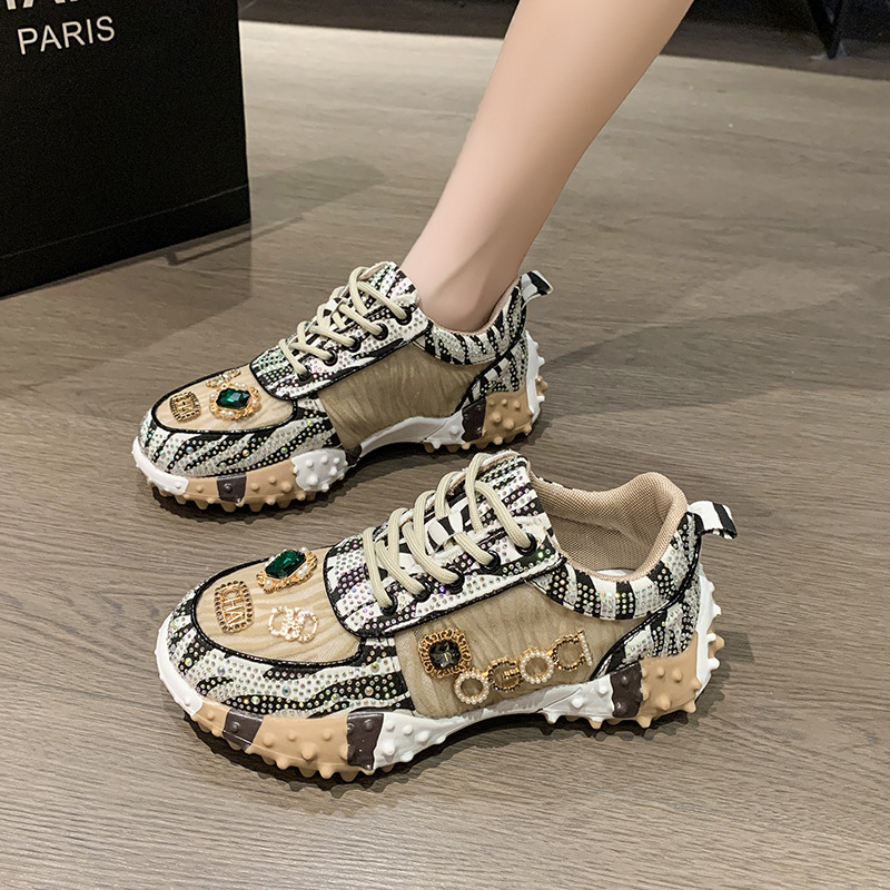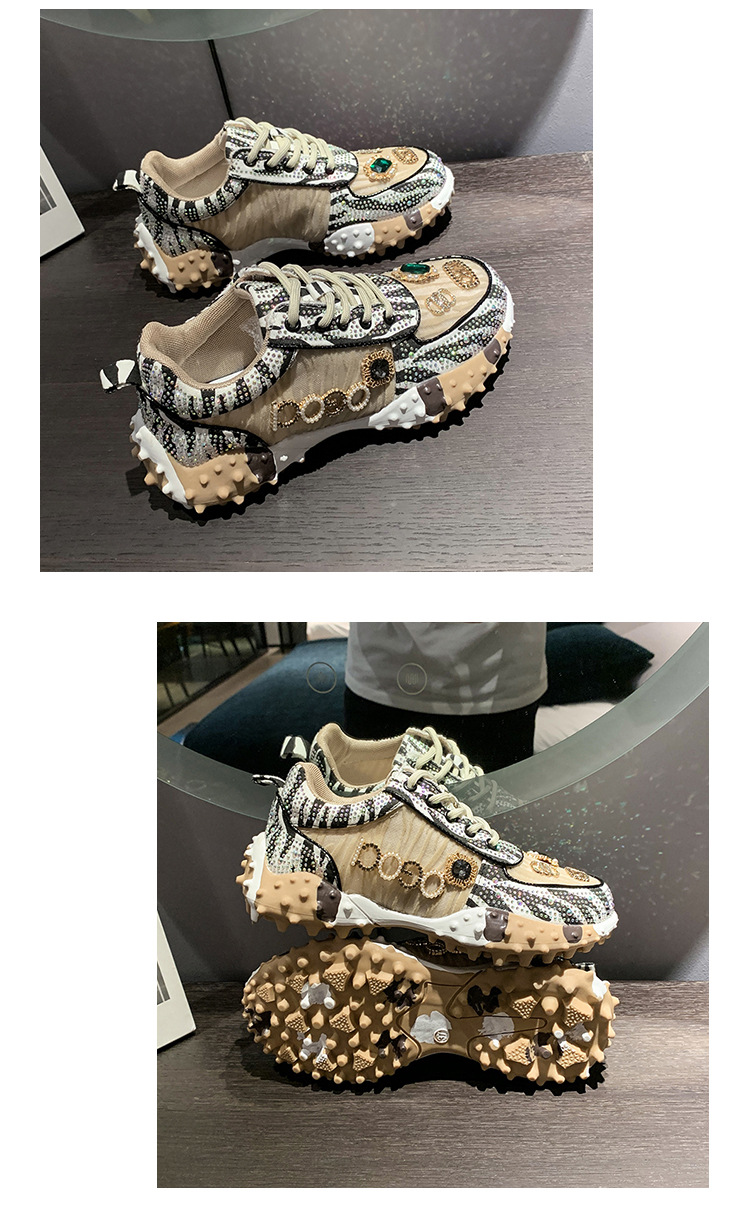 여성을위한 유럽 스테이션 두리안 바닥 아빠 신발 2025 봄 신작 라인 석 문자 레오파드 프린트 레이스 업 스포츠 캐주얼 신발