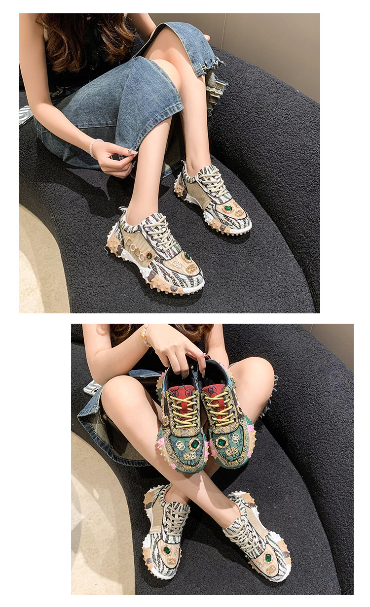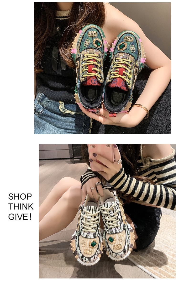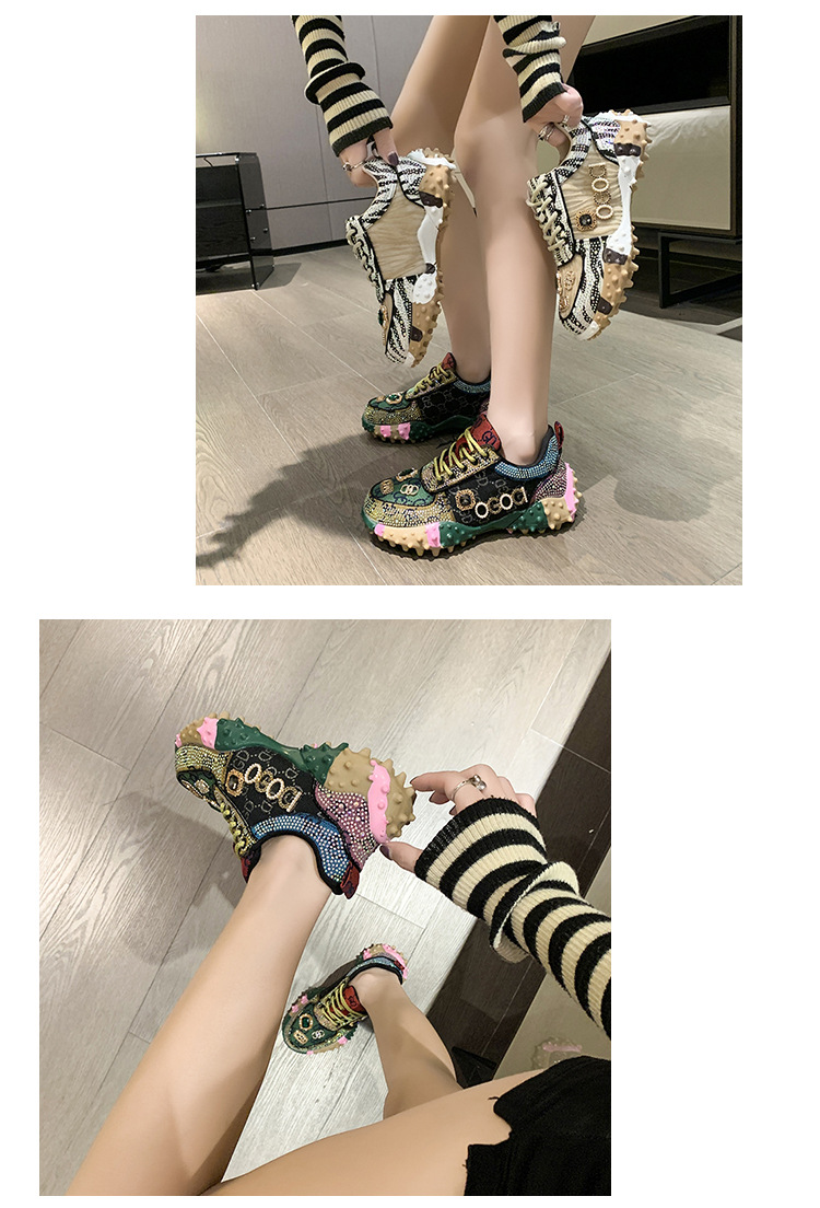 여성을위한 유럽 스테이션 두리안 바닥 아빠 신발 2025 봄 신작 라인 석 문자 레오파드 프린트 레이스 업 스포츠 캐주얼 신발스토어 가기