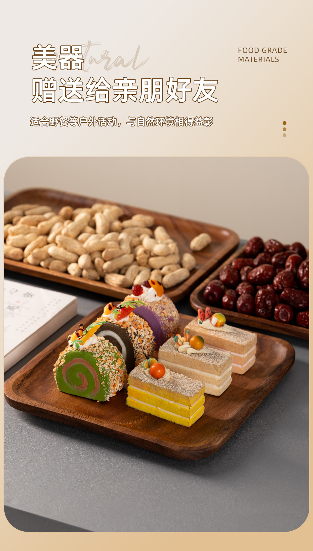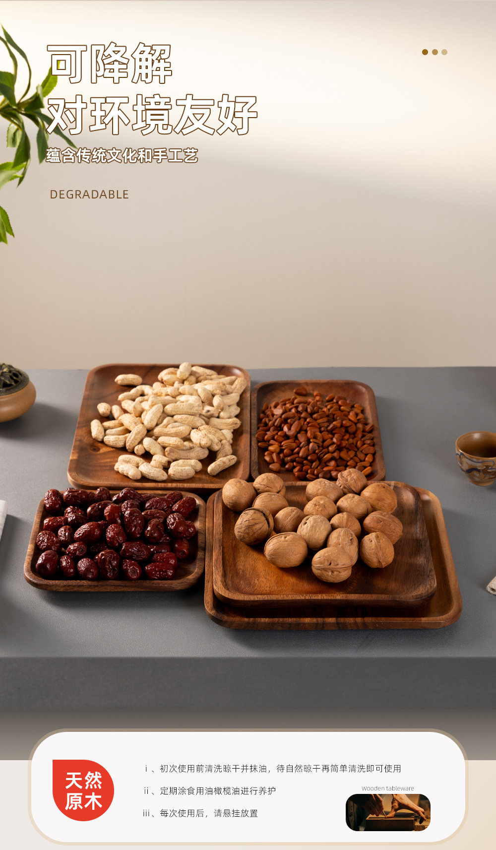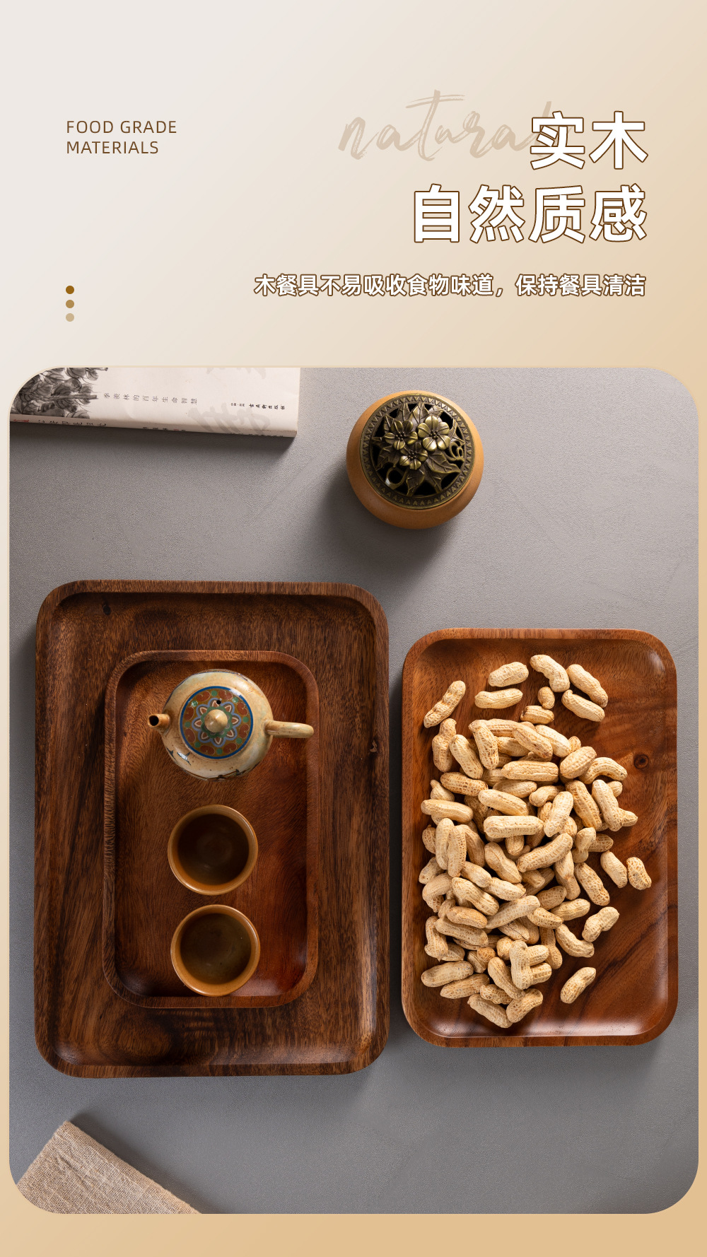 호텔 플랫 플레이트 아카시아 우드 직사각형 나무 디너 플레이트 솔리드 우드 크리에이티브 딤섬 티 컵 나무 플레이트 커피 나무 트레이