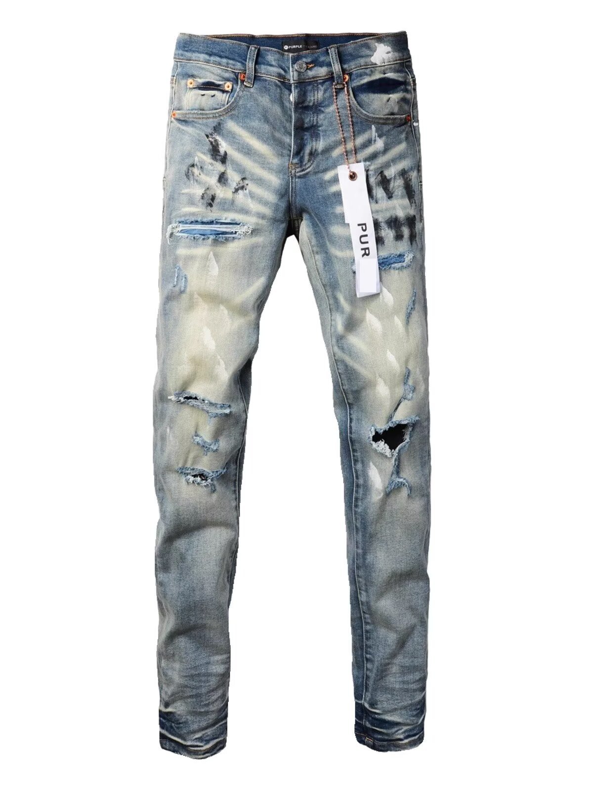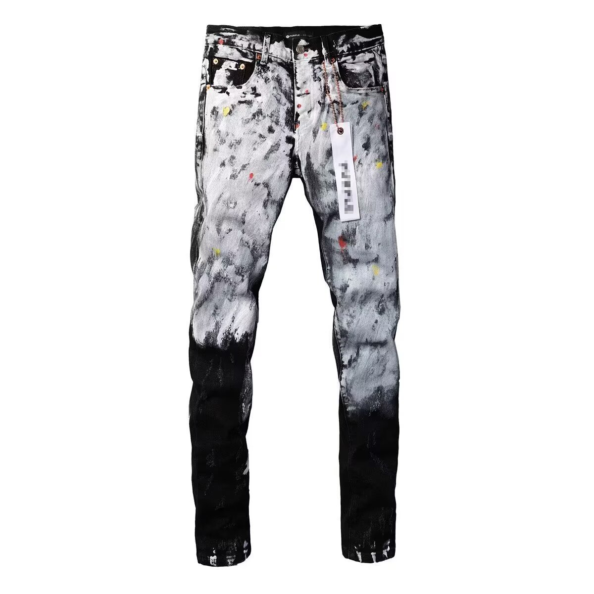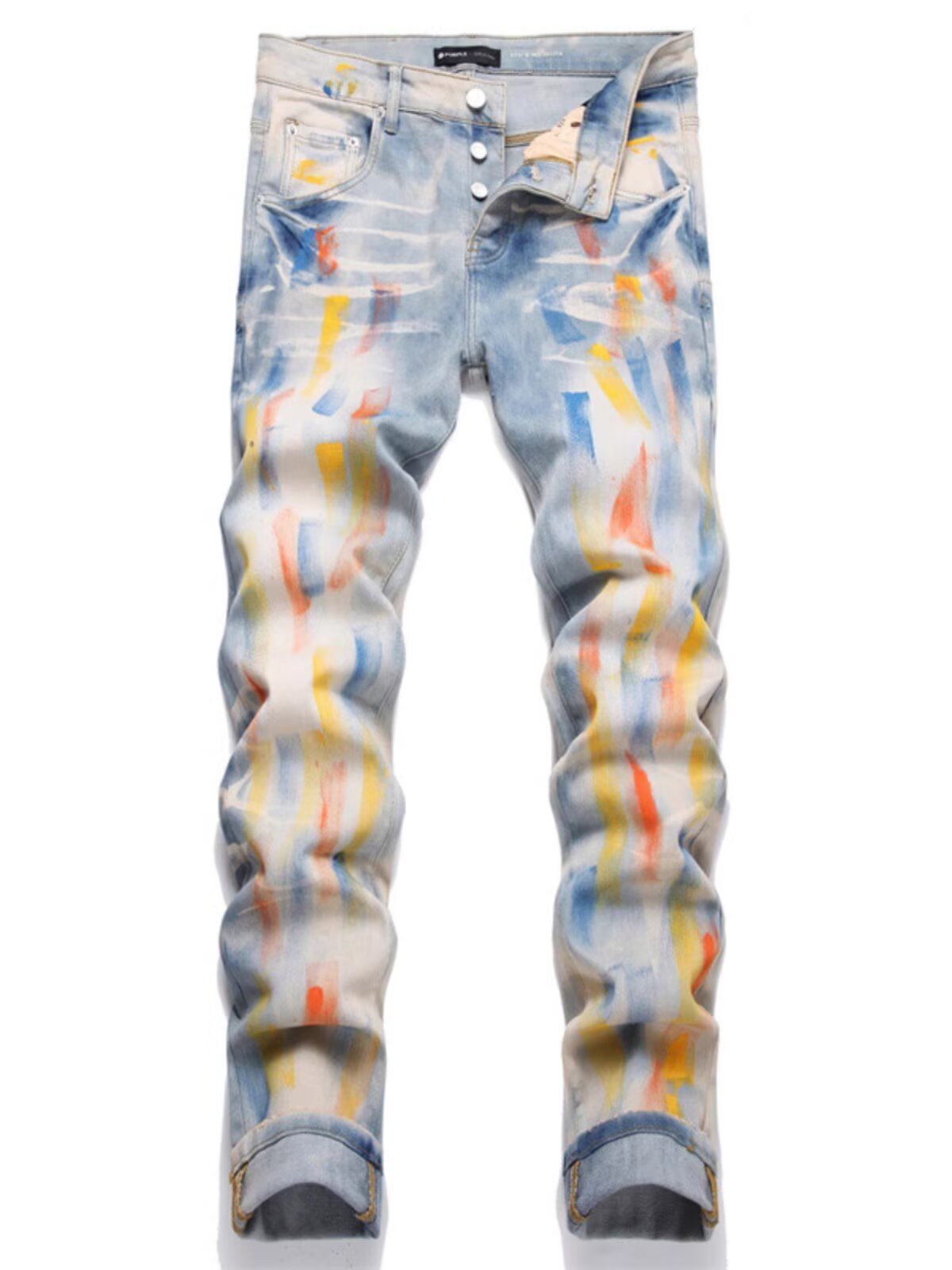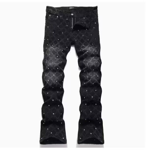 트렌디한 맞춤형 캐주얼 신상품, 패치워크, 트렌디한 브랜드 슬림핏 자수 청바지, 남성용 찢어진 트렌디 패치워크 코튼스토어 가기